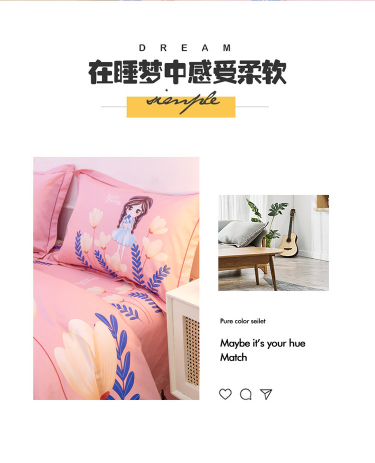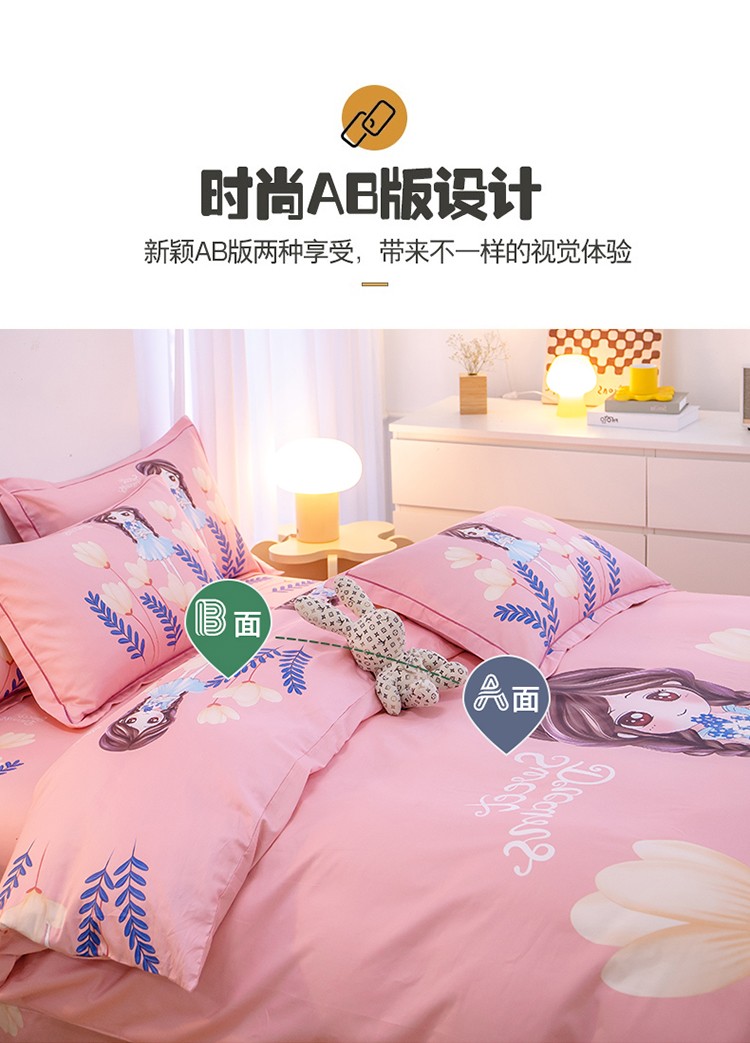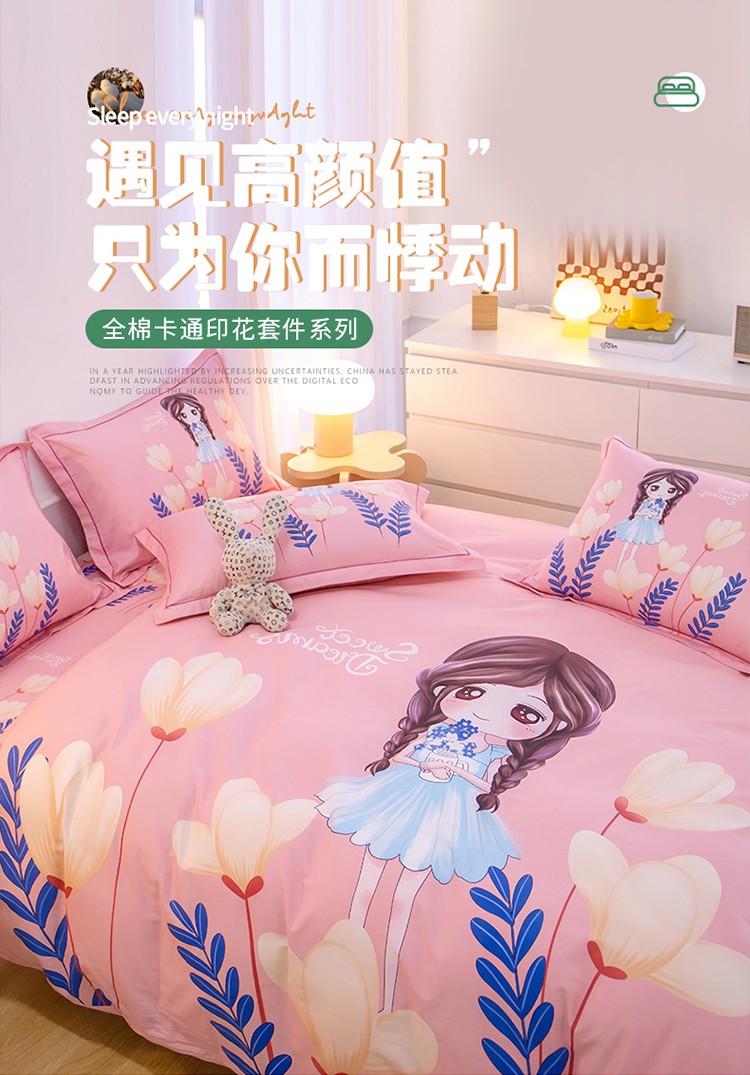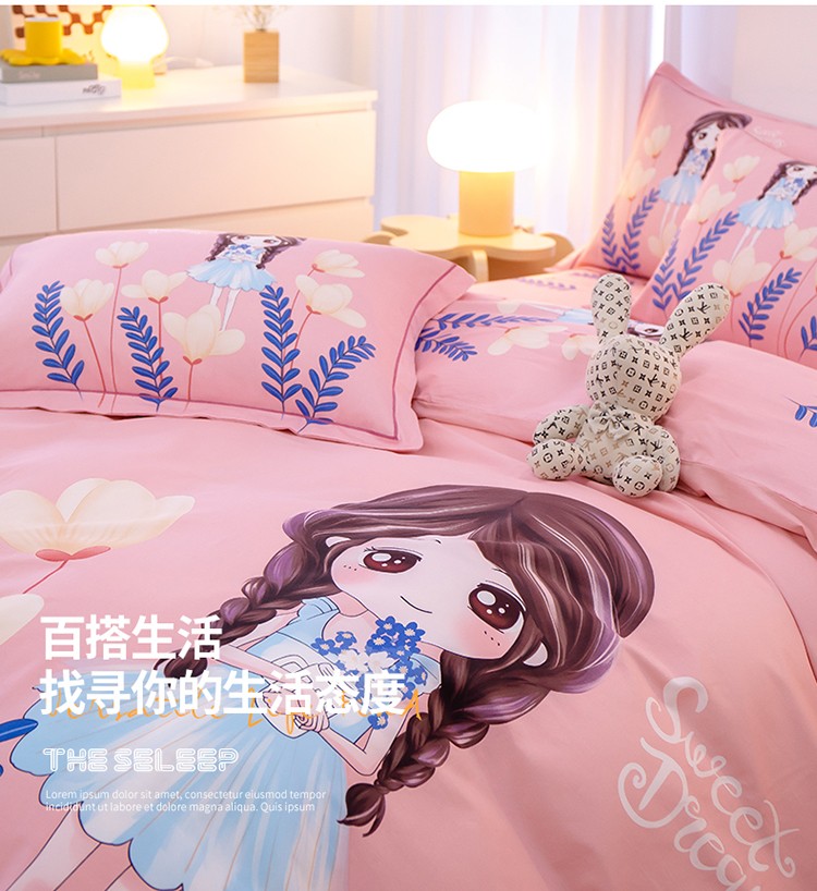 商品名称:雲归梦 2022新款全棉大版四件套 卡通花型 公主日记