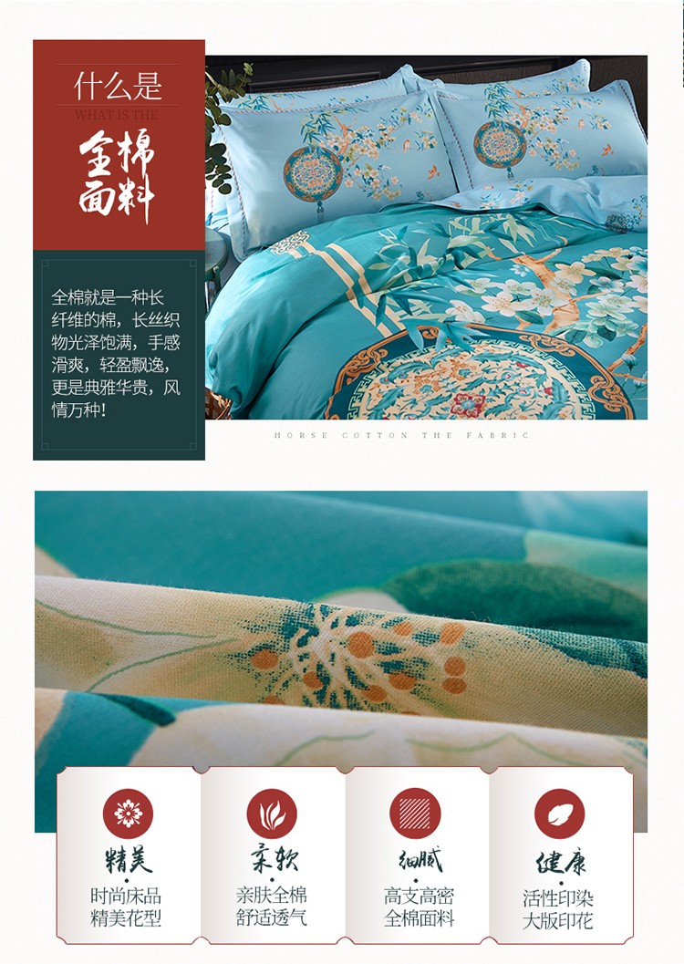 商品名称:雲归梦 2022新款全棉大版四件套 花卉花型 竹林风
