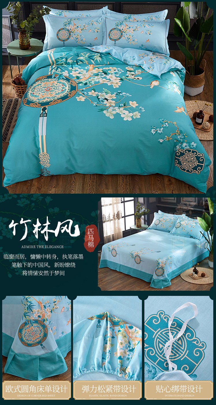 雲归梦 2022新款全棉大版四件套 花卉花型 竹林风