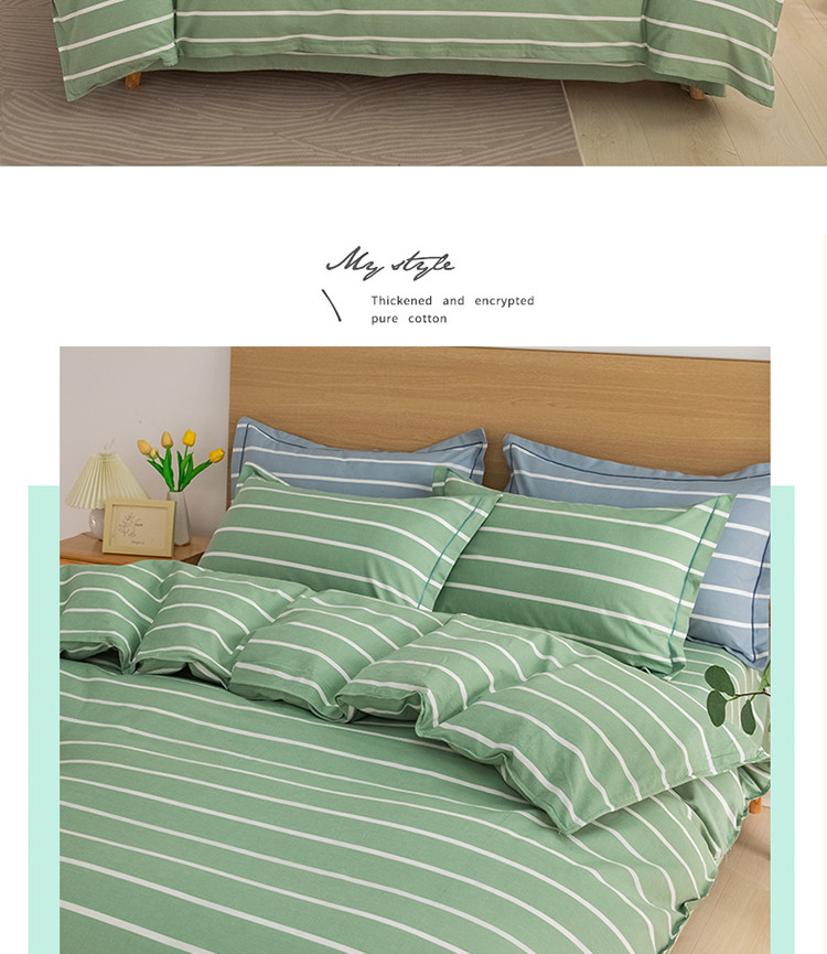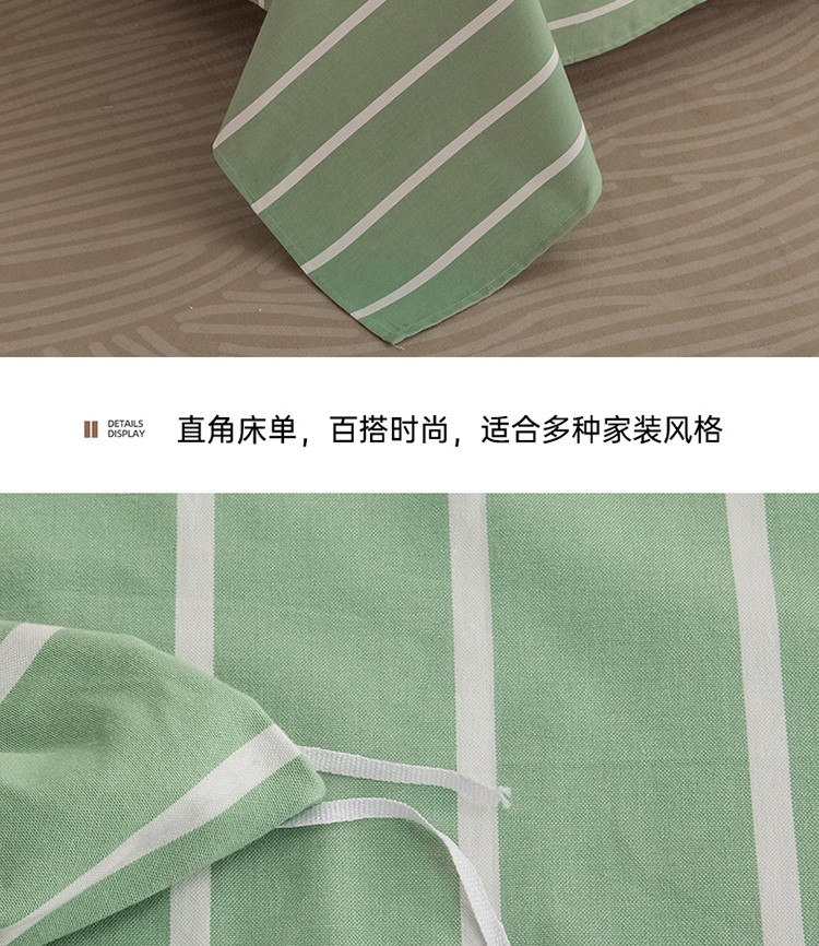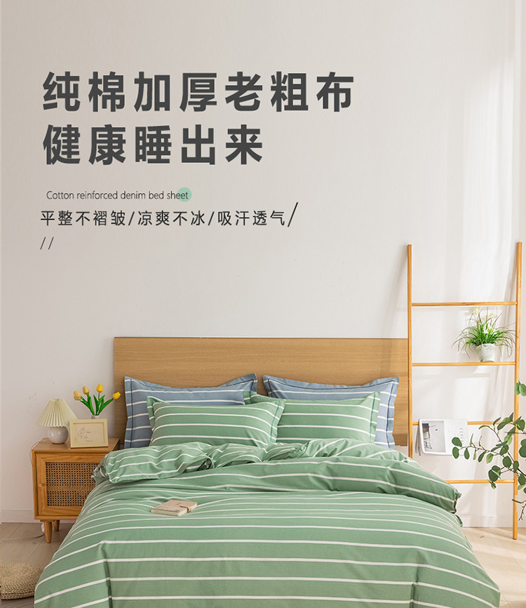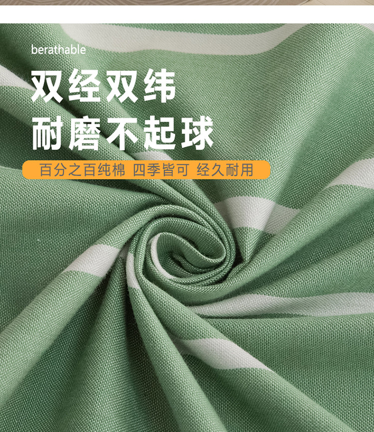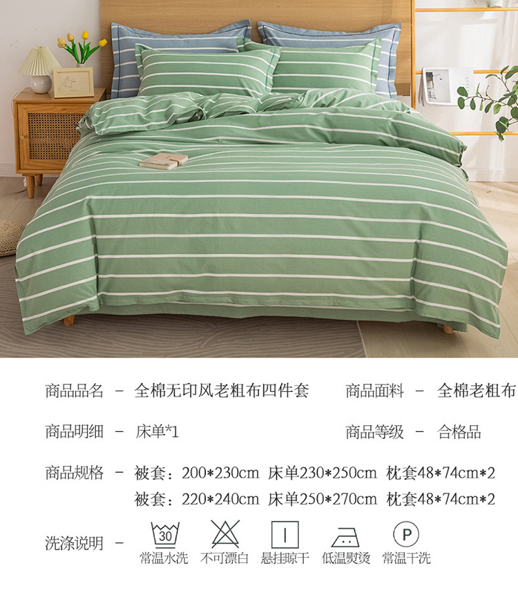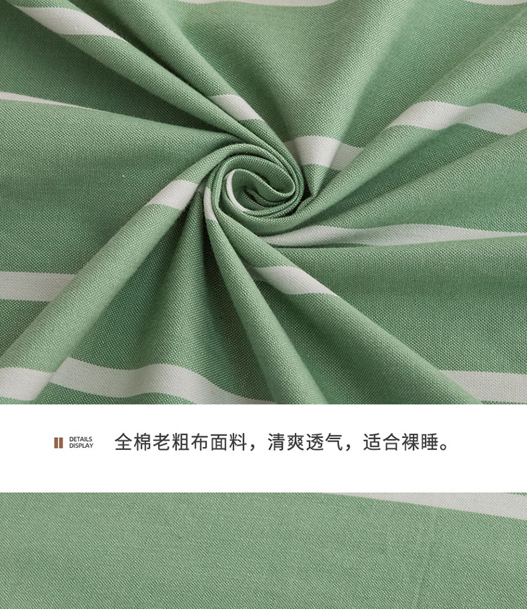 商品名称:杜先生 2023新款全棉无印风老粗布四件套直播爆款 无印风条纹-绿
