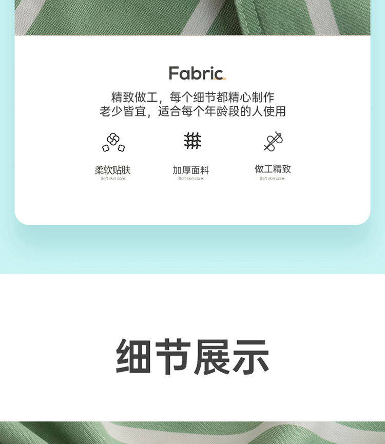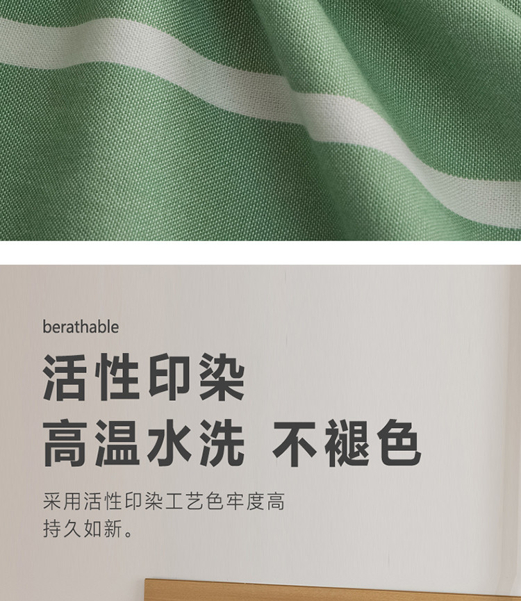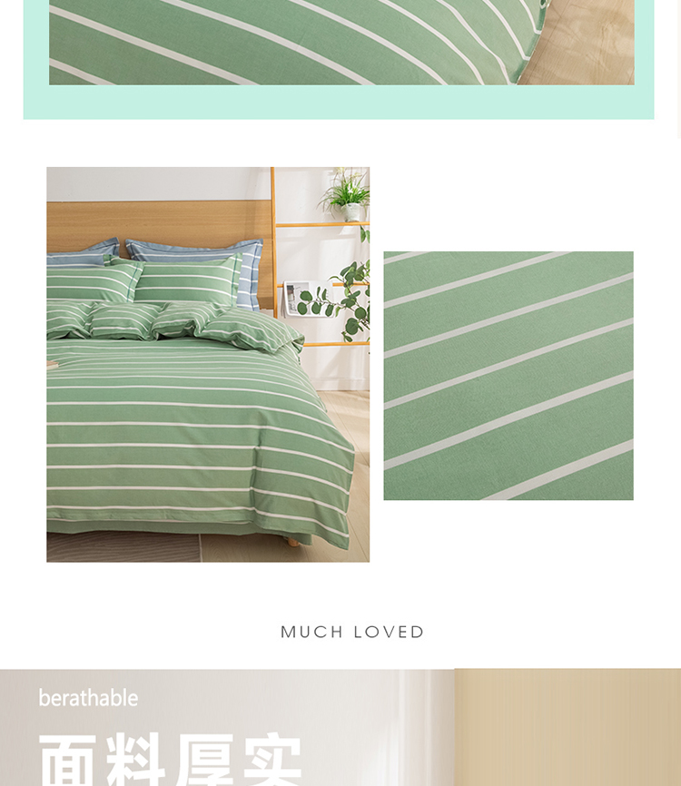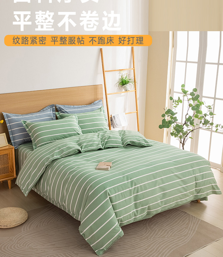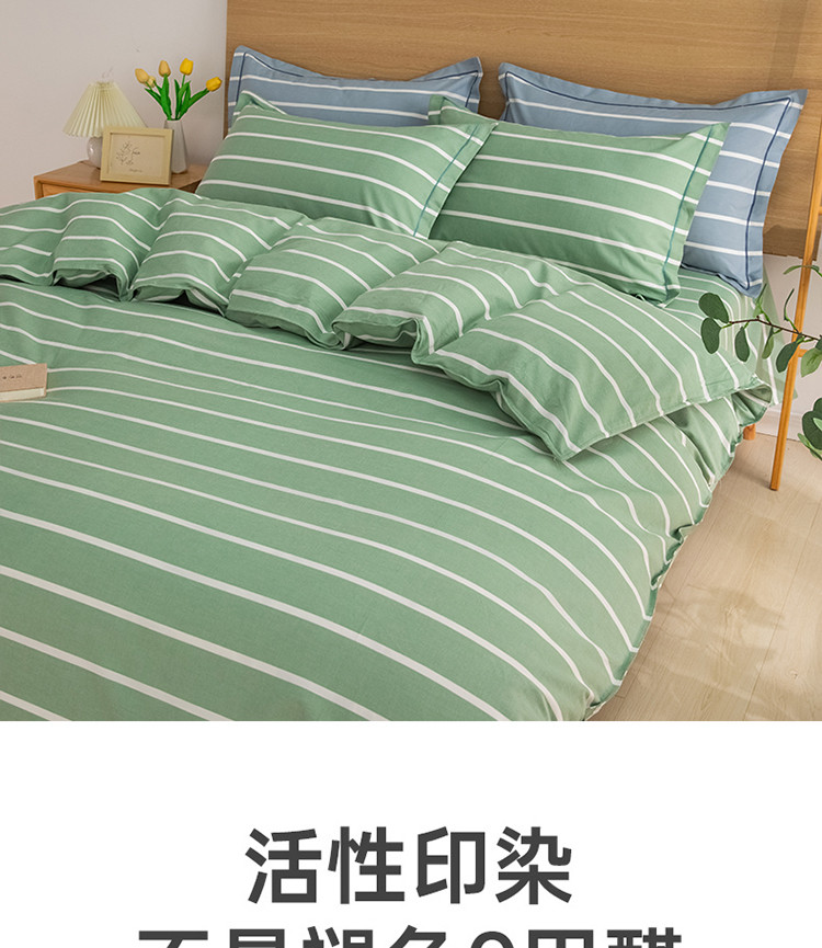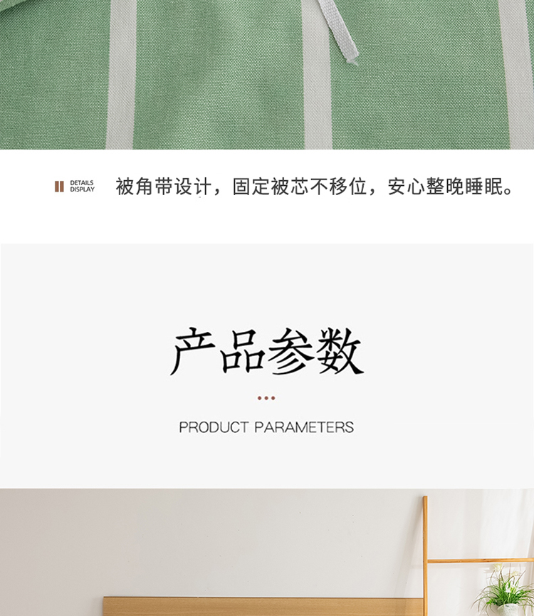商品名称:杜先生 2023新款全棉无印风老粗布四件套直播爆款 无印风条纹-绿
