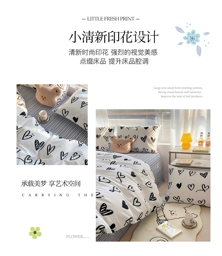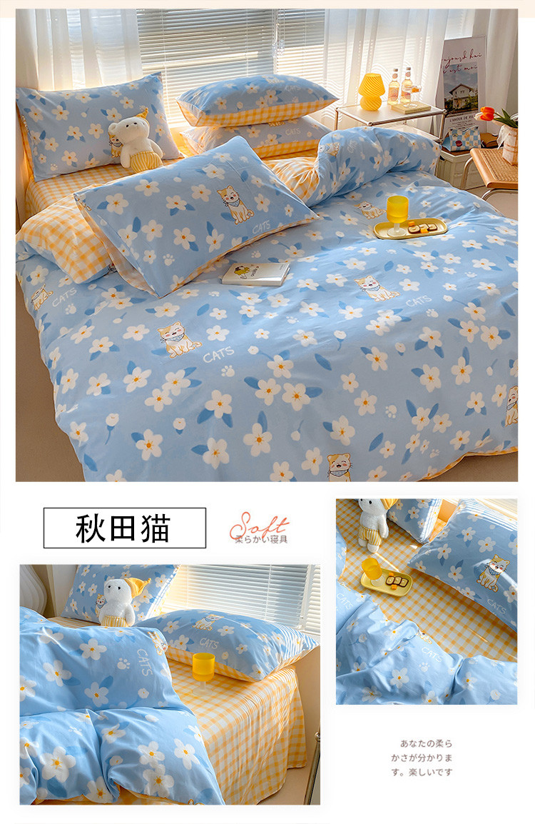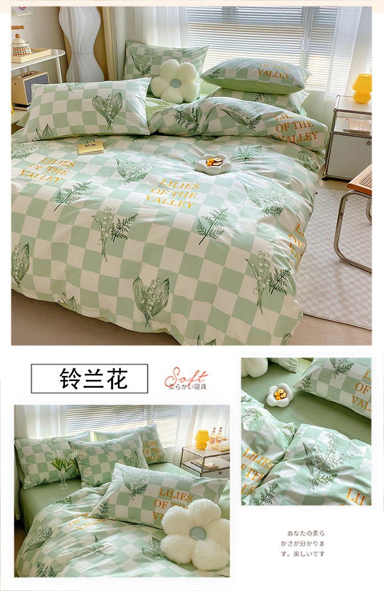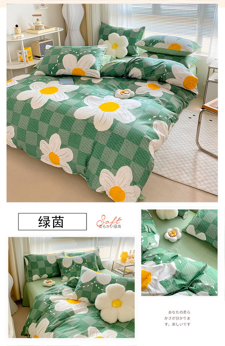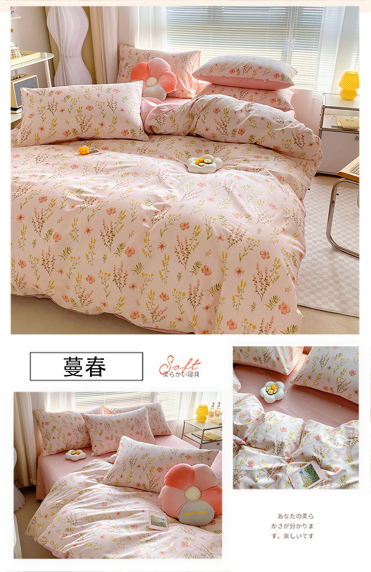 (总)田野 2022新13372全棉印花小清新四件套纯棉床笠