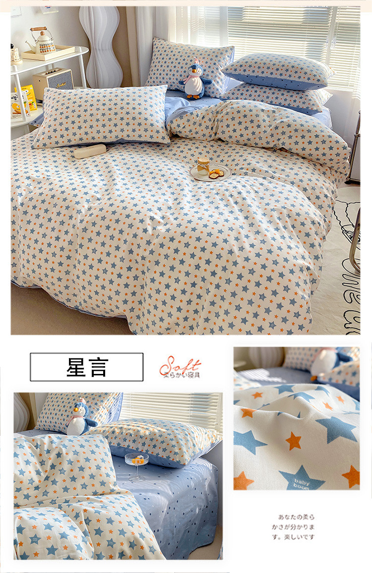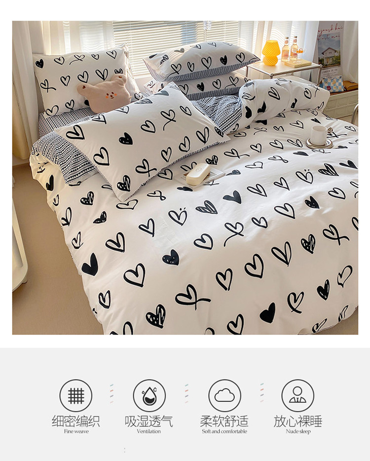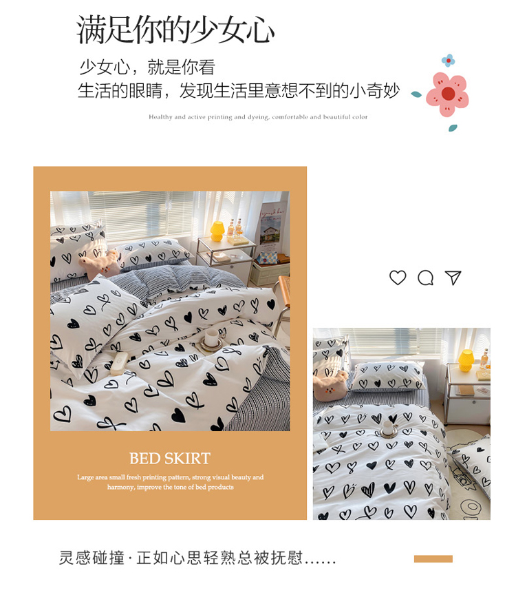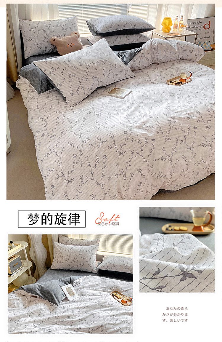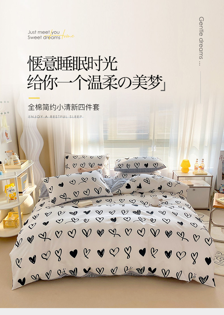 (总)田野 2022新13372全棉印花小清新四件套纯棉床笠