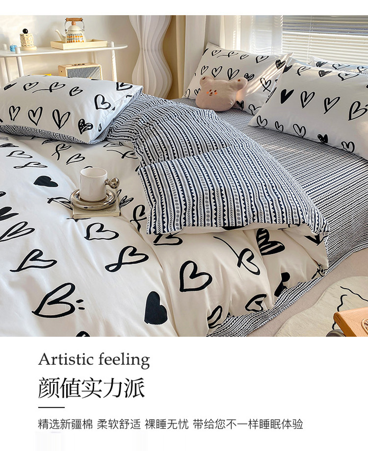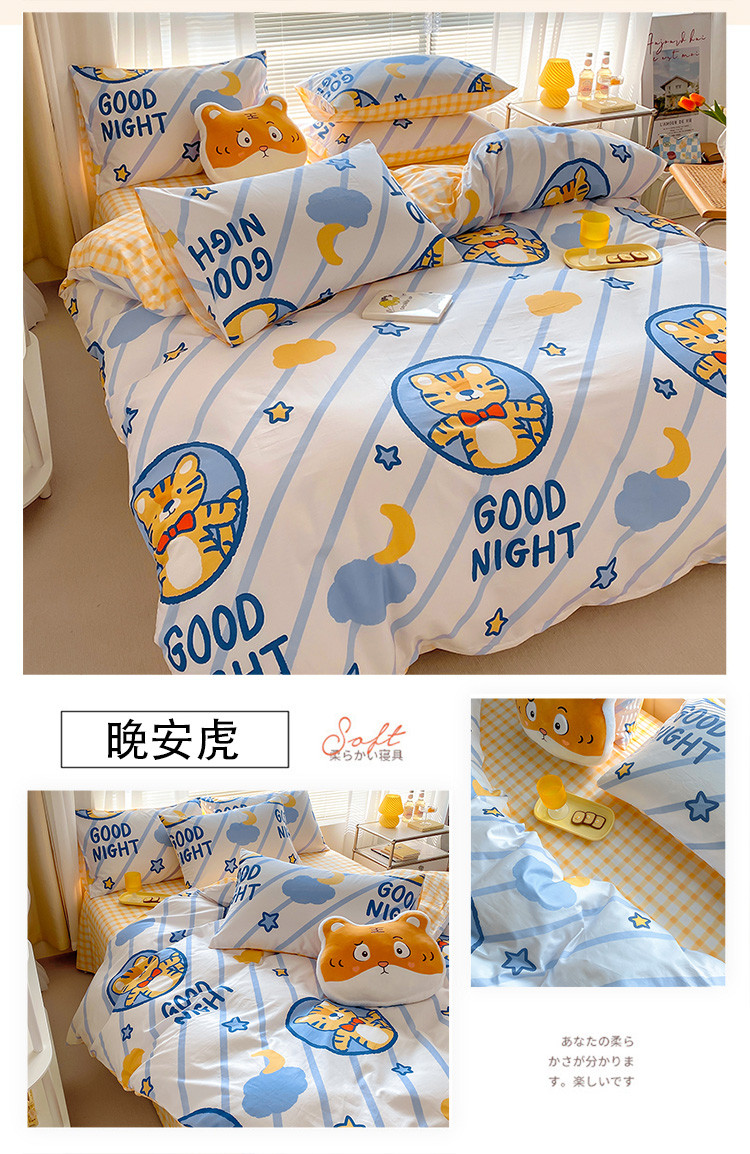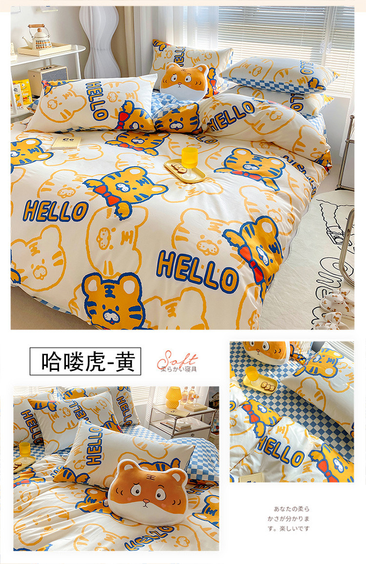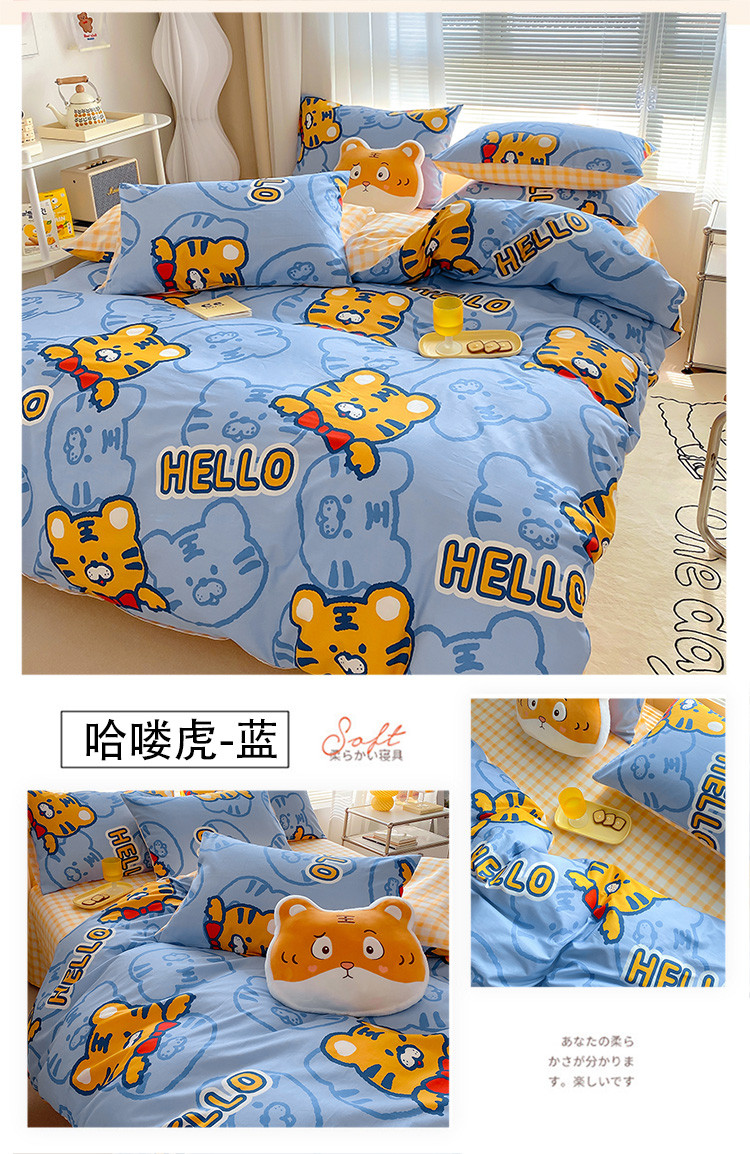 (总)田野 2022新13372全棉印花小清新四件套纯棉床笠,比心,哈喽虎-黄,哈喽虎-蓝,铃兰花,绿茵,梦的旋律,墨璃,晚安虎,印象