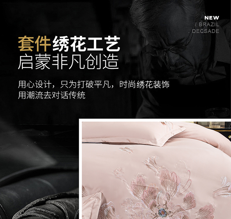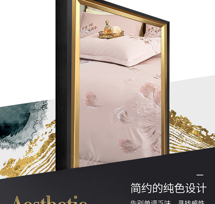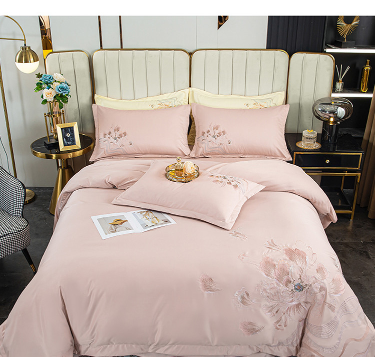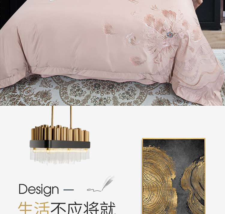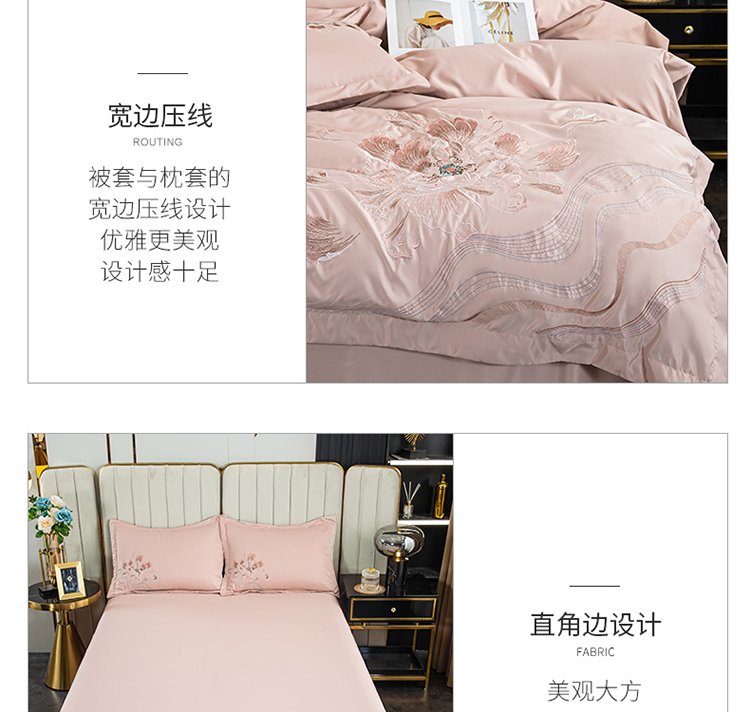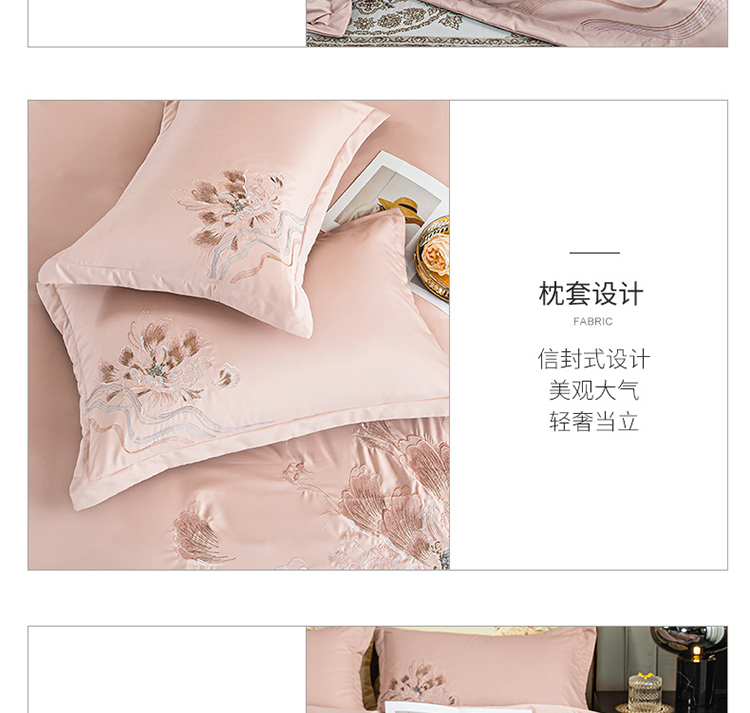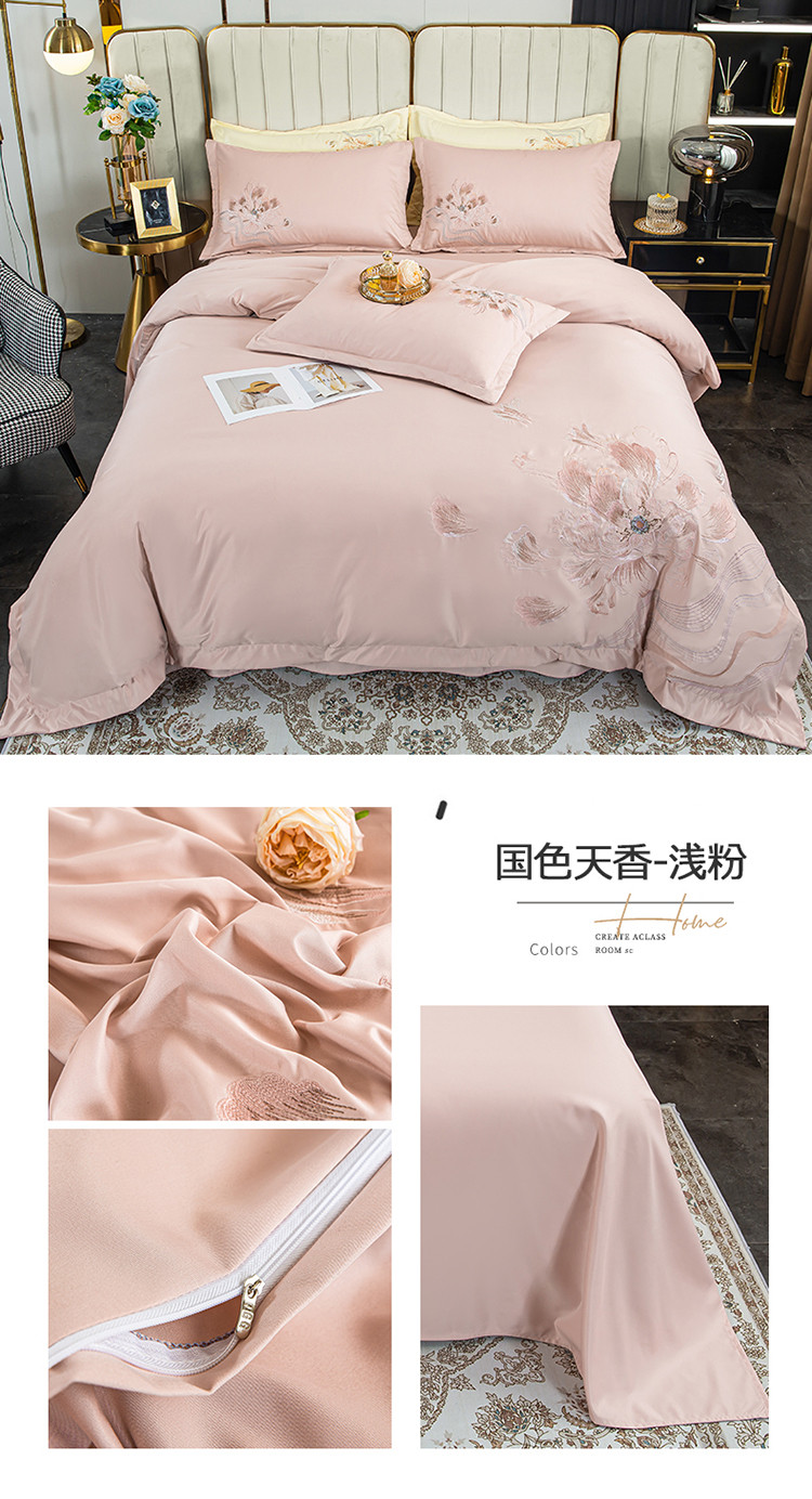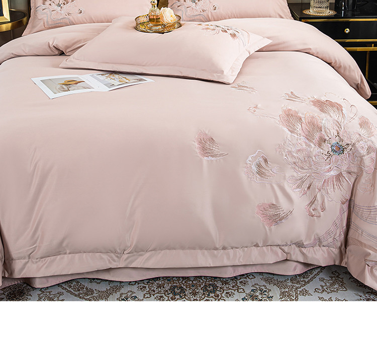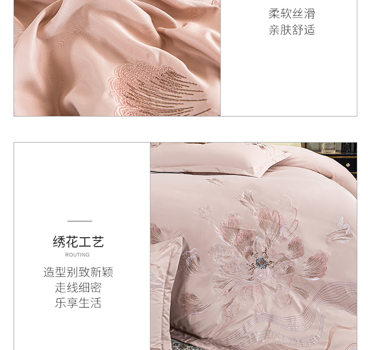 商品名称:琪格格 2022新款水洗真丝重工刺绣四件套 国色天香-浅粉