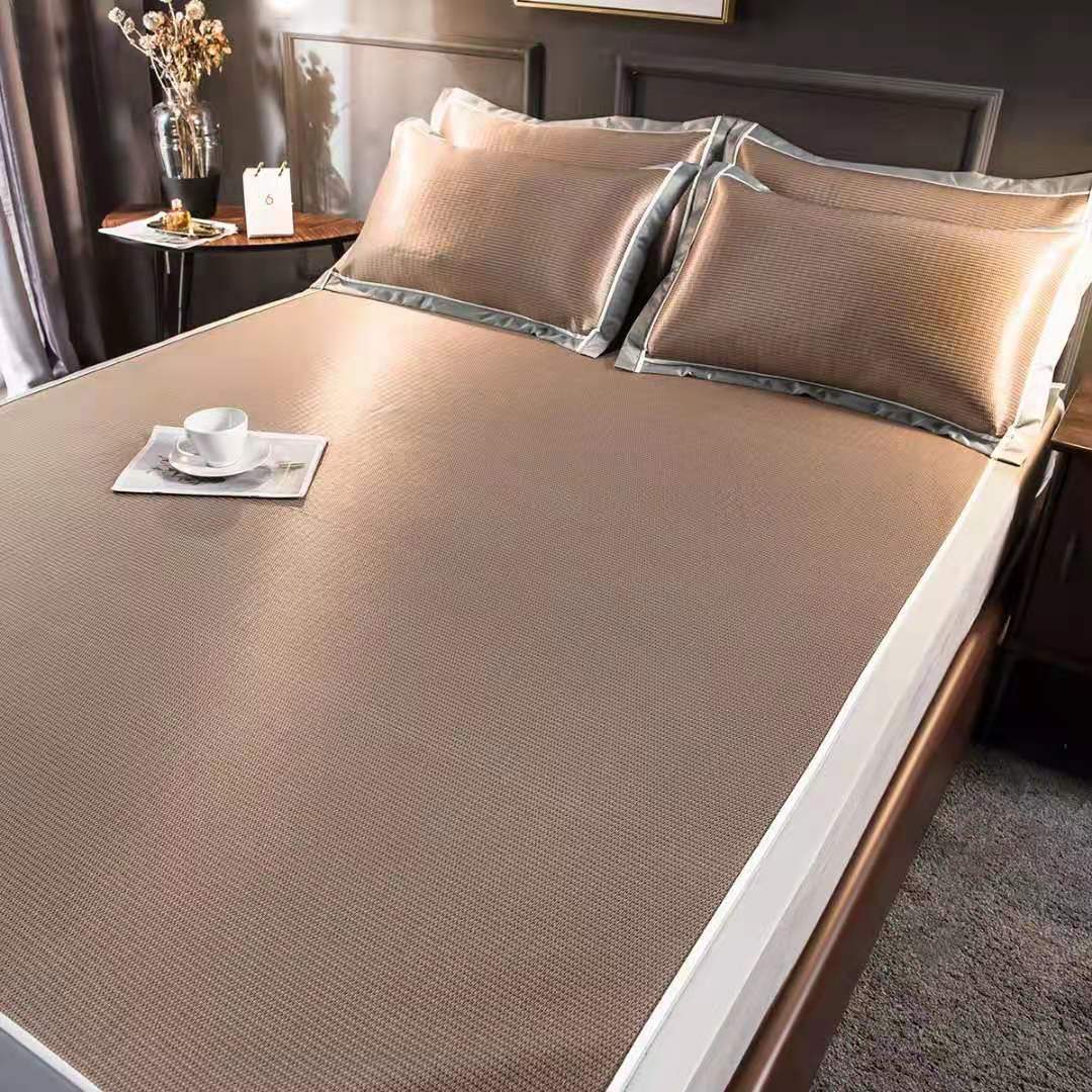 (总)席之家 2025新款高精密三纬可水洗冰提花丝凉席,莫奈-咖,莫奈-灰,莫奈-绿