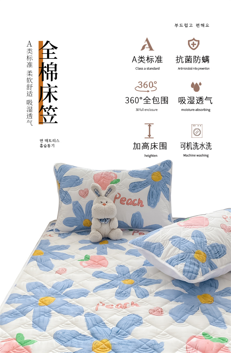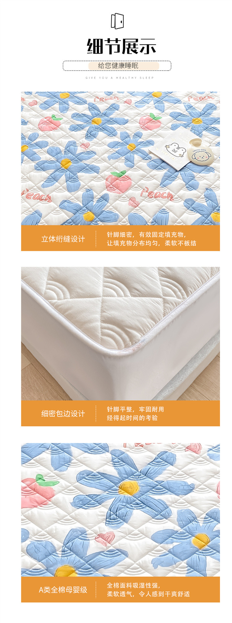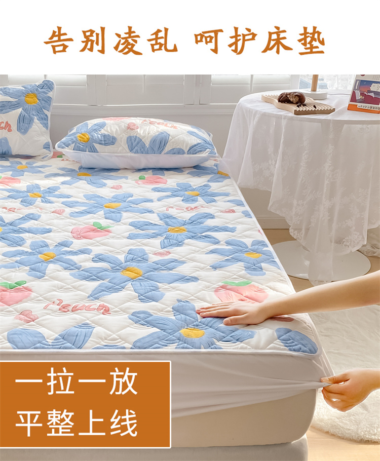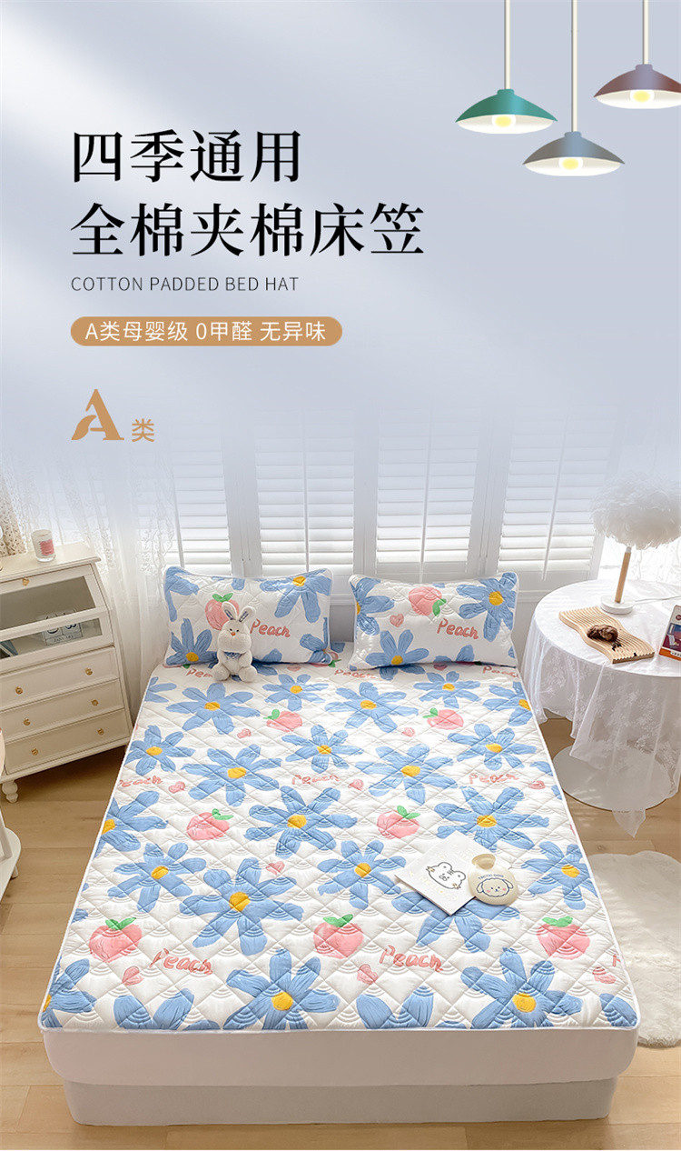 (总)鑫钰 2025新款A类纯棉夹棉床笠学生宿舍专用90x190-80x190-花漾山茶格,花漾山茶格-粉,花漾山茶格-蓝,花漾山茶格-灰