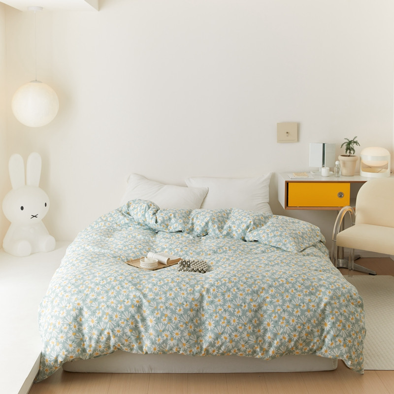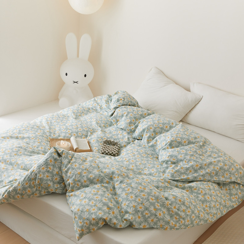 商品名称:8小时家纺 2022新款全棉双层纱单被套 快乐菊绿