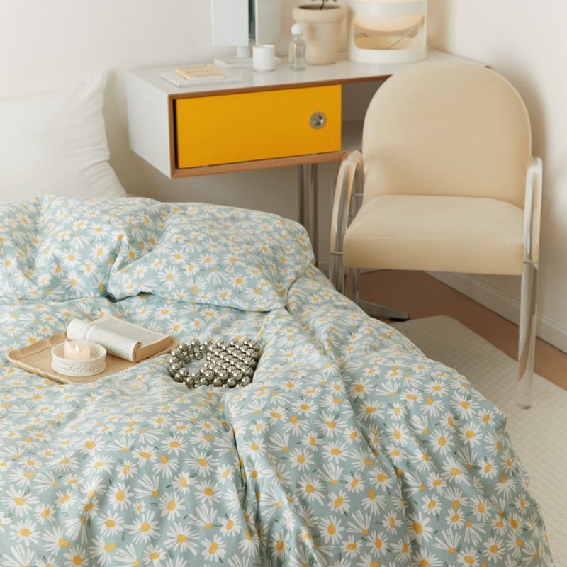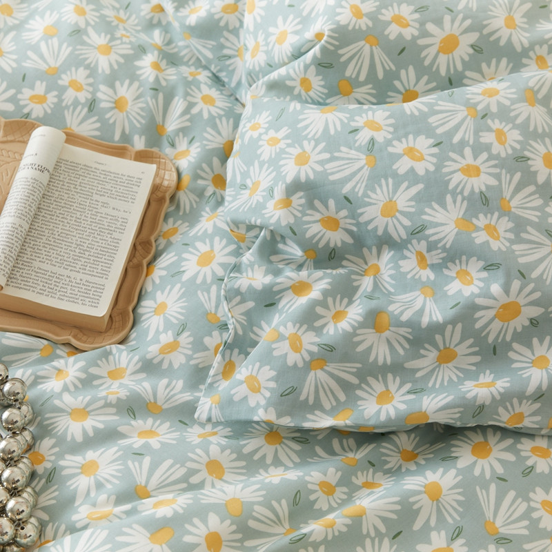 8小时家纺 2022新款全棉双层纱单被套 快乐菊绿