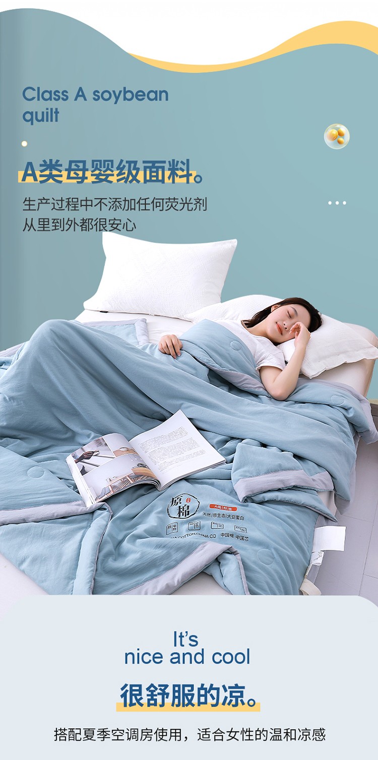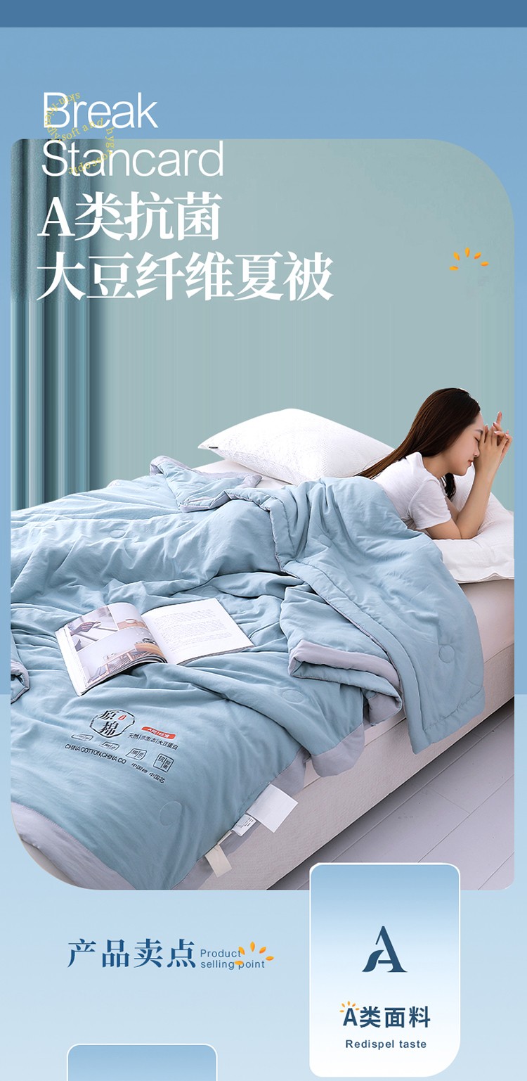 商品名称:梦镜 2025新款A类原棉大豆抗菌夏凉被 蓝
