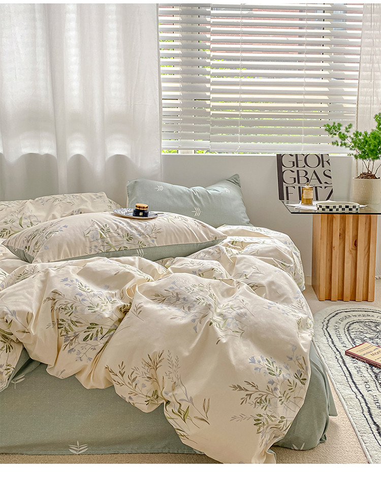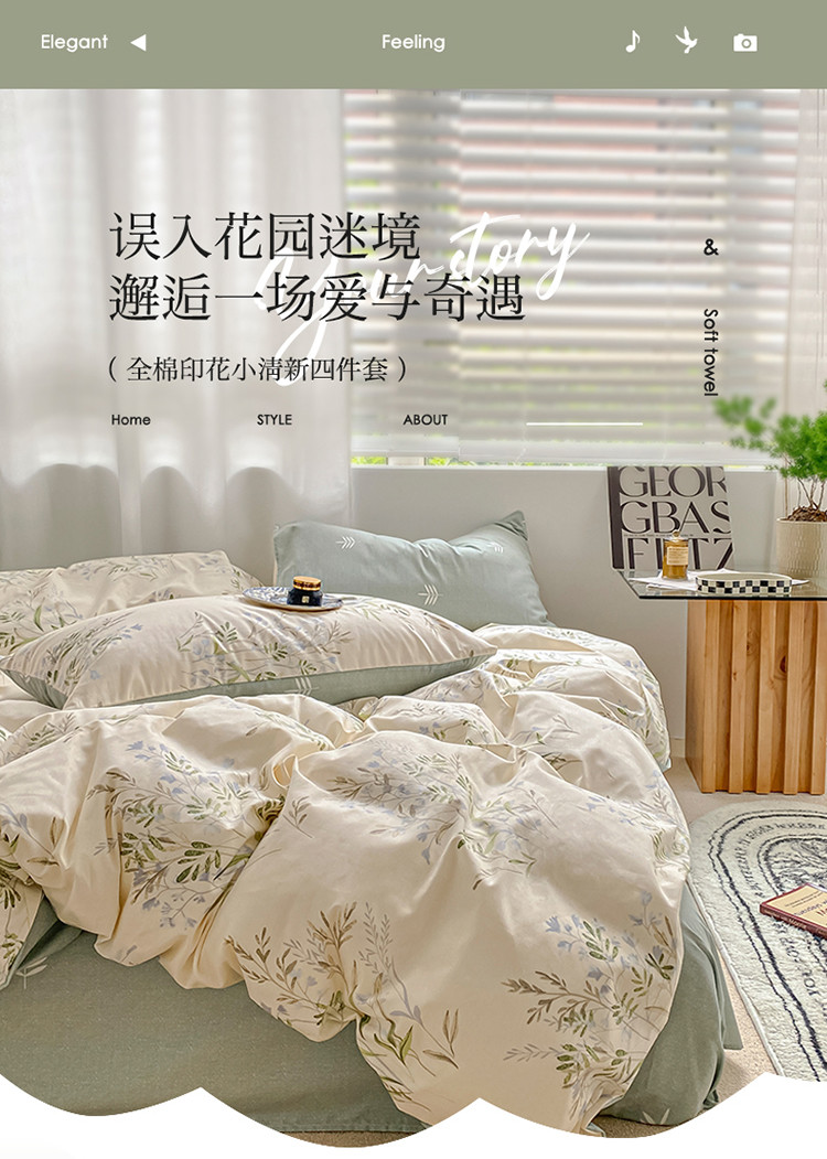 雅居纺 2022新款全棉13070印花小清新四件套 浅陌