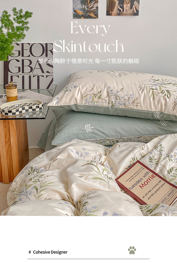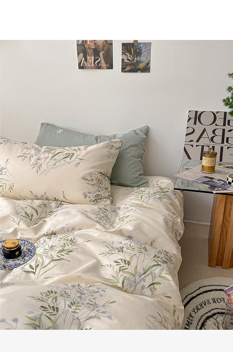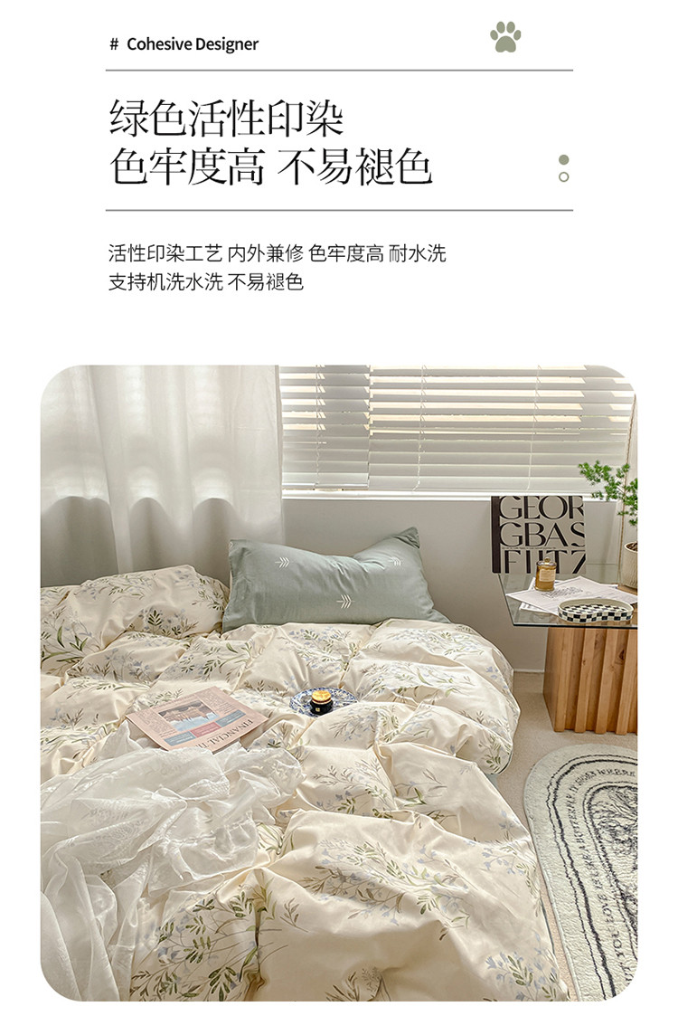 商品名称:雅居纺 2022新款全棉13070印花小清新四件套 浅陌