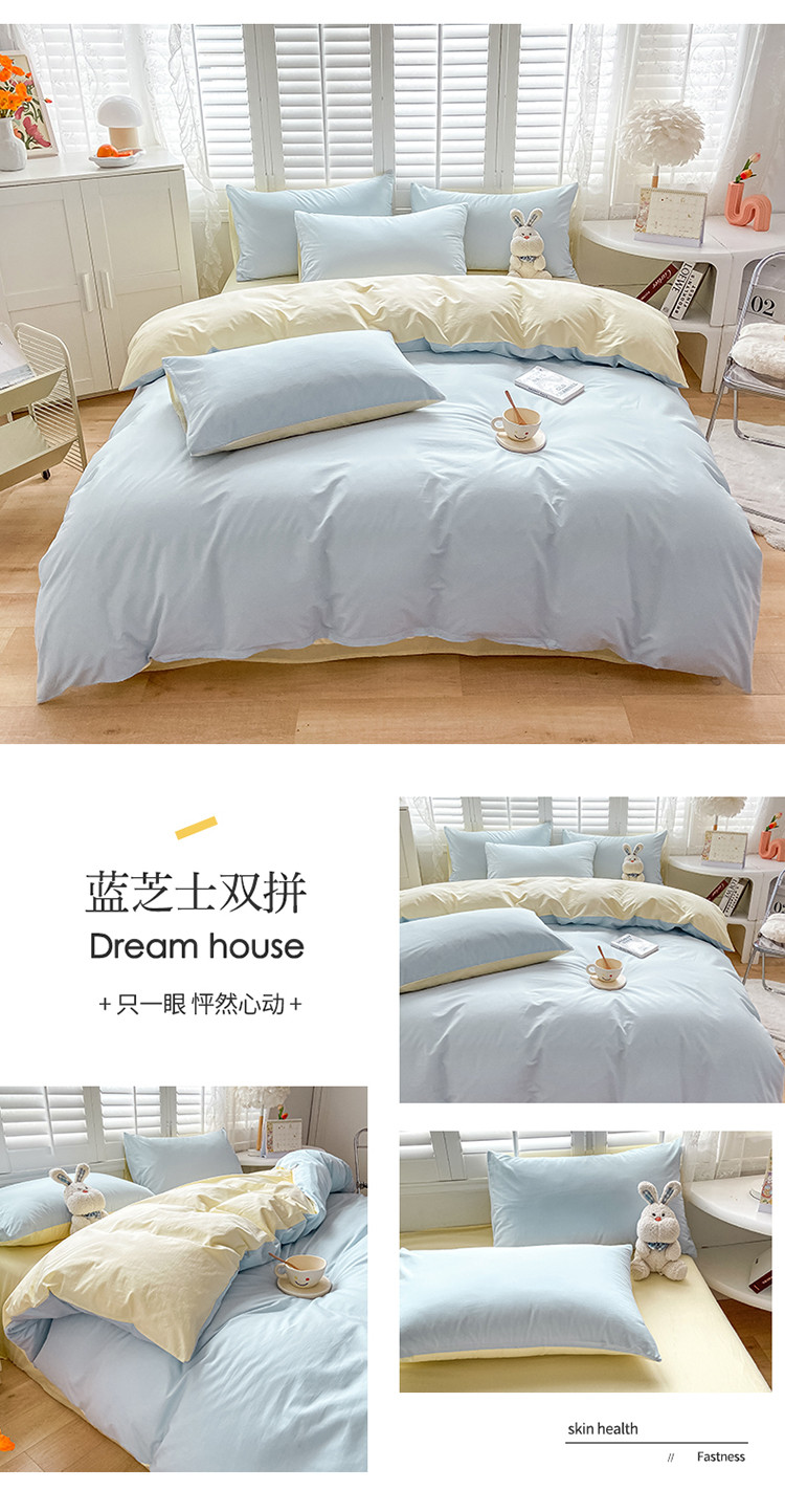 (总)雨帆家纺 2023新款ins风水洗棉磨毛四件套,白蓝双拼,白夜双拼,绅士双拼