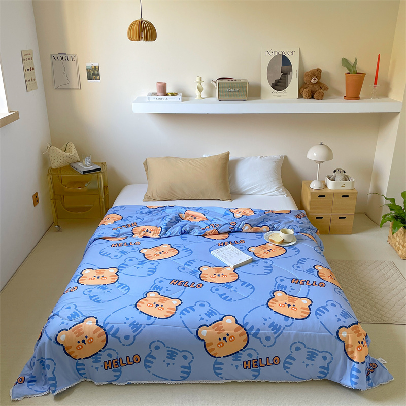 顾里家纺 2022新款牛奶针织棉夏被-韩式场景 可爱老虎蓝