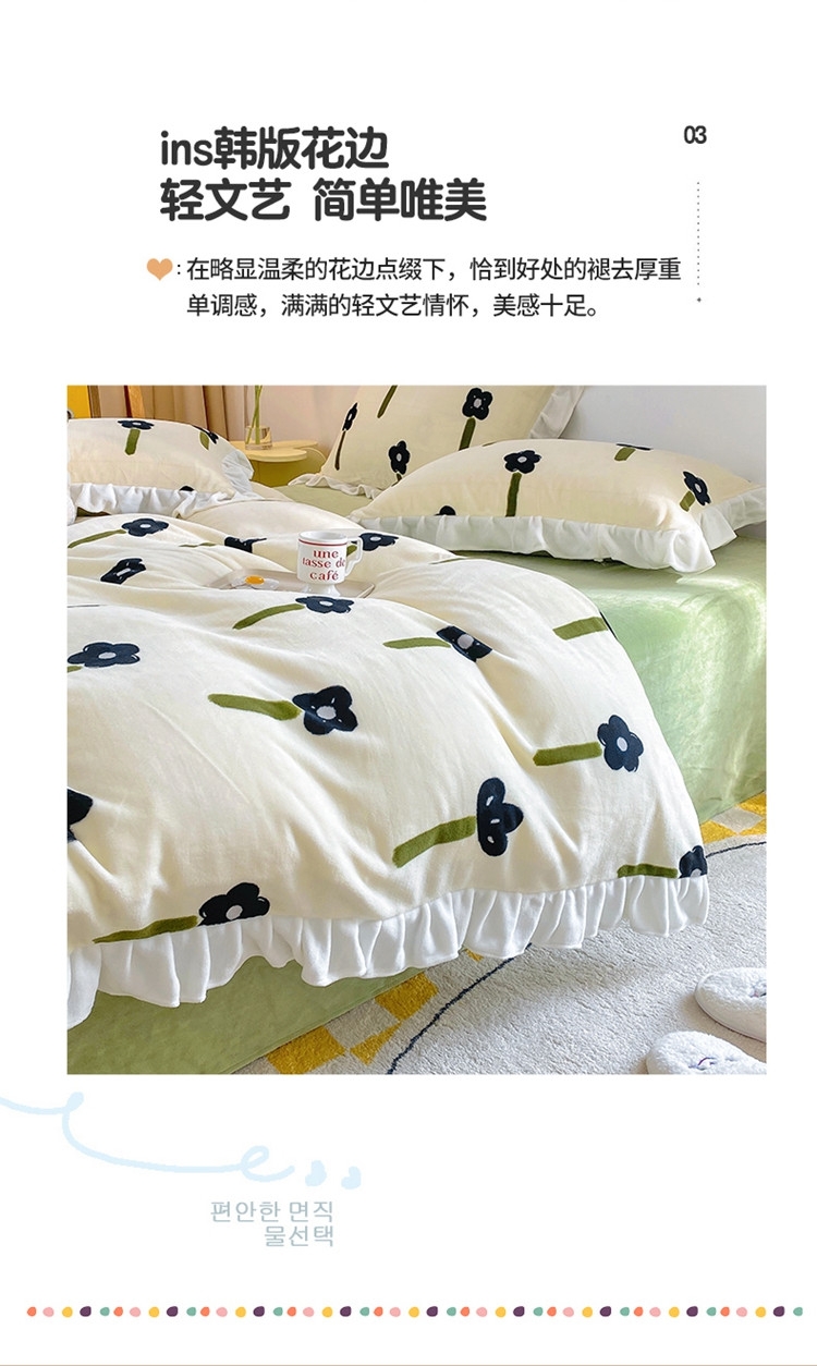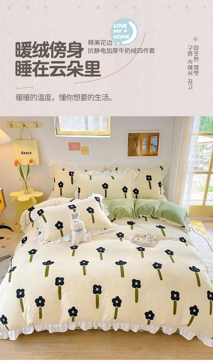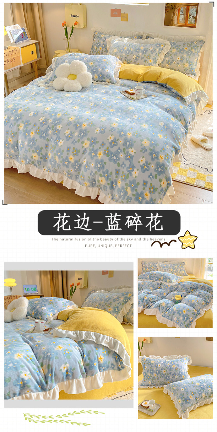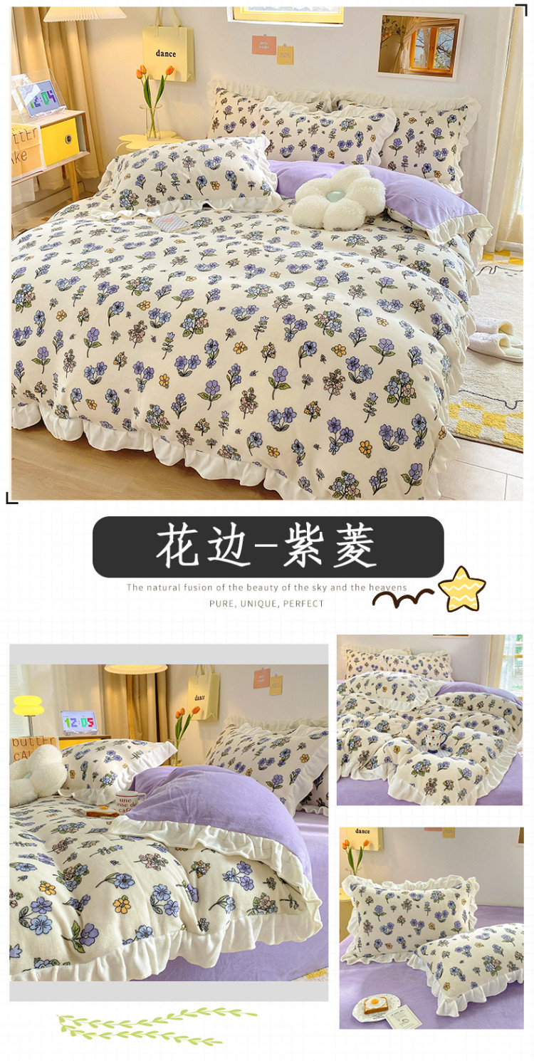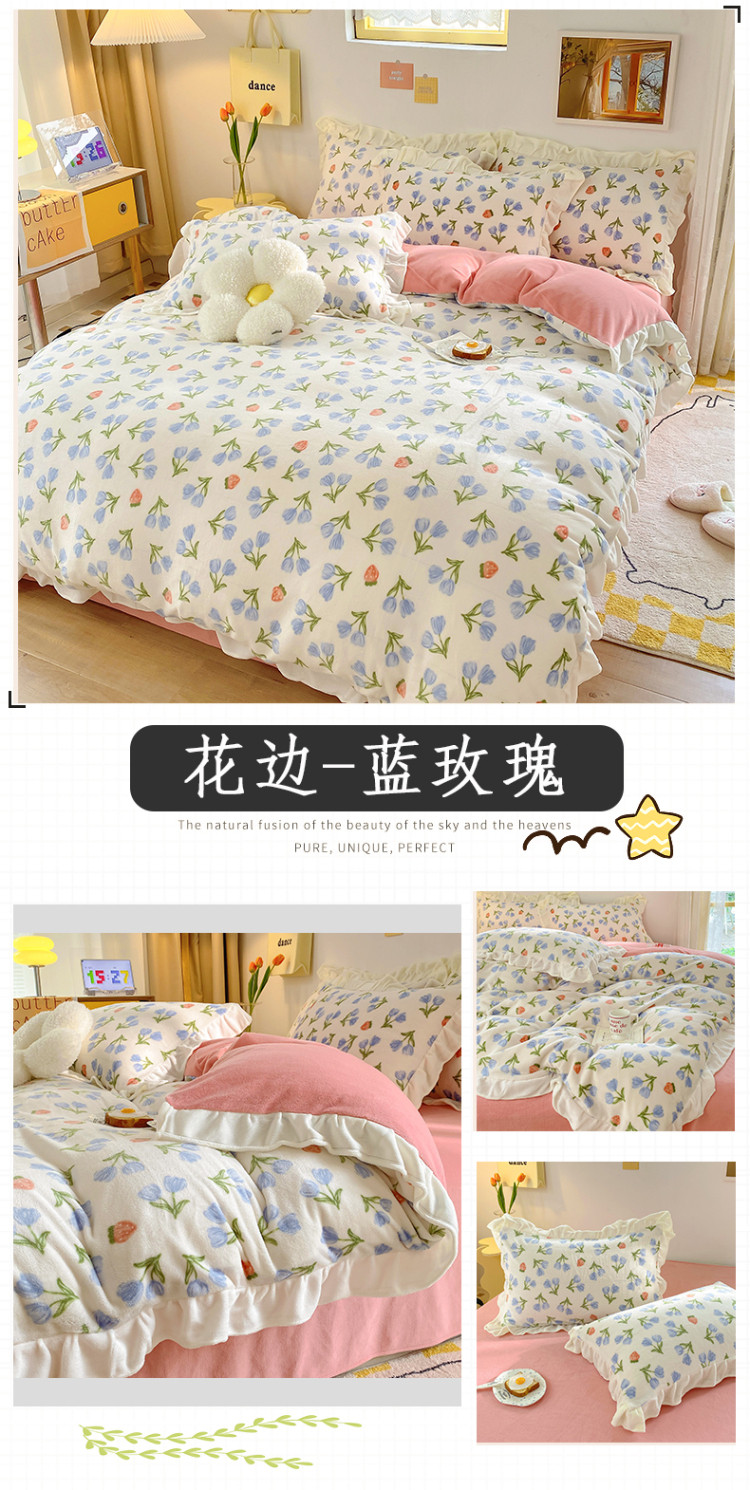 总百寐22韩版花边抗静电保暖牛奶绒床单床笠四件套8.5斤直播