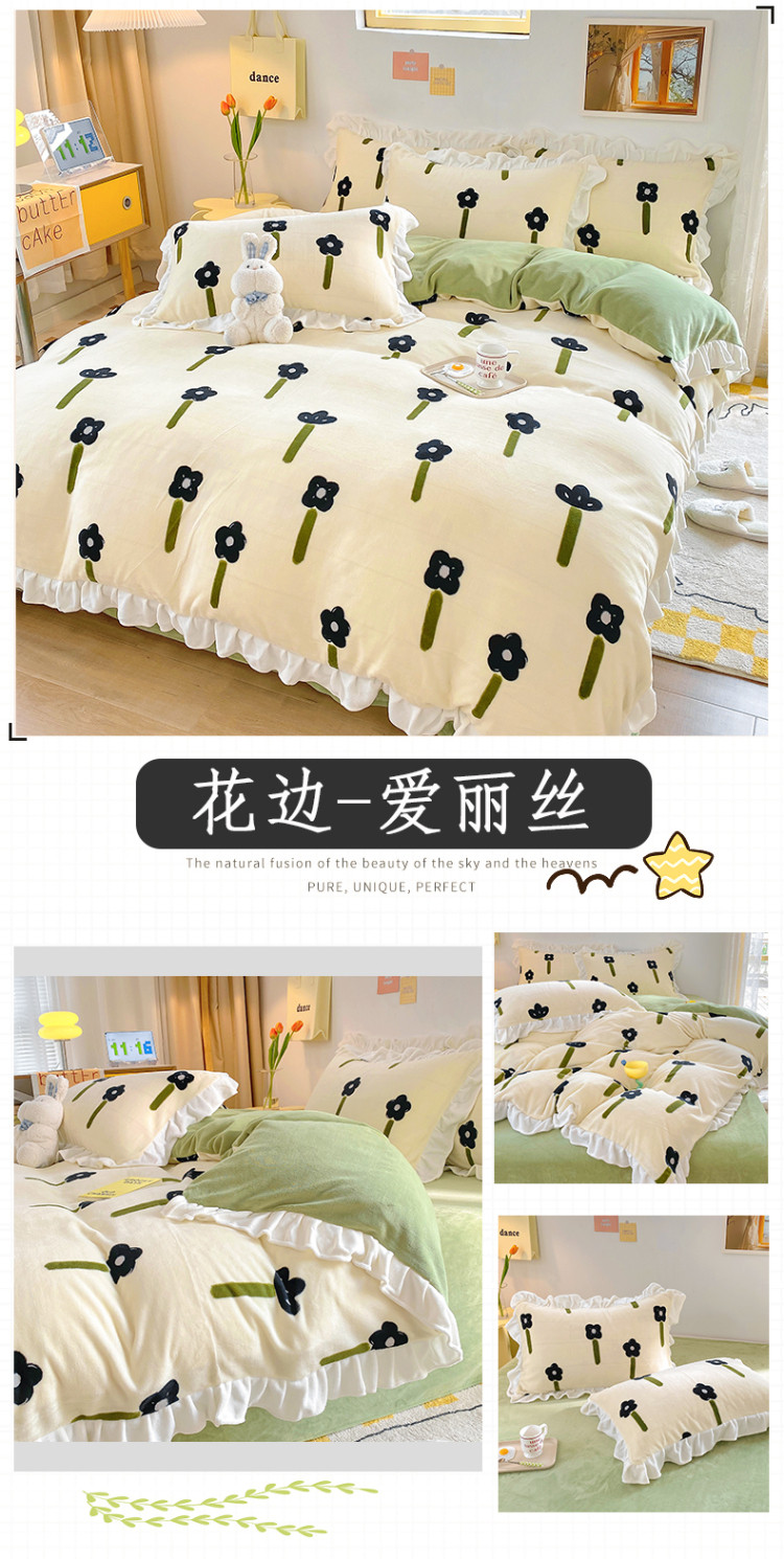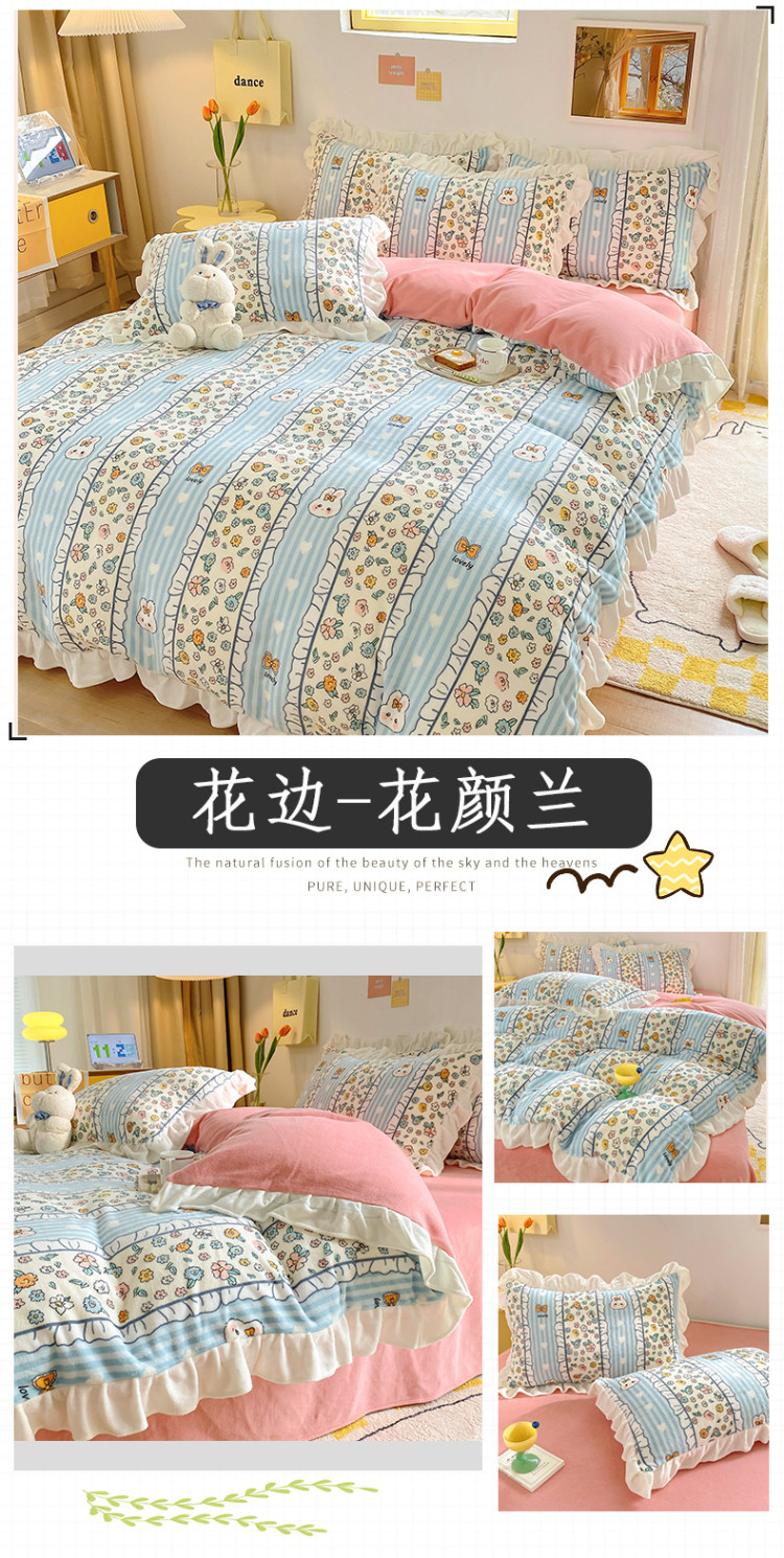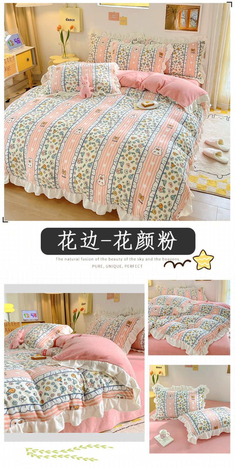 商品名称:总百寐22韩版花边抗静电保暖牛奶绒床单床笠四件套8.5斤直播