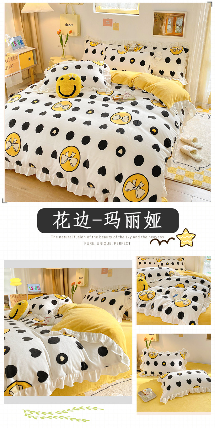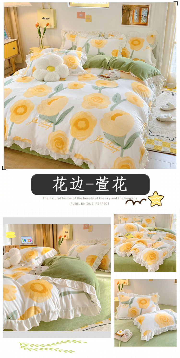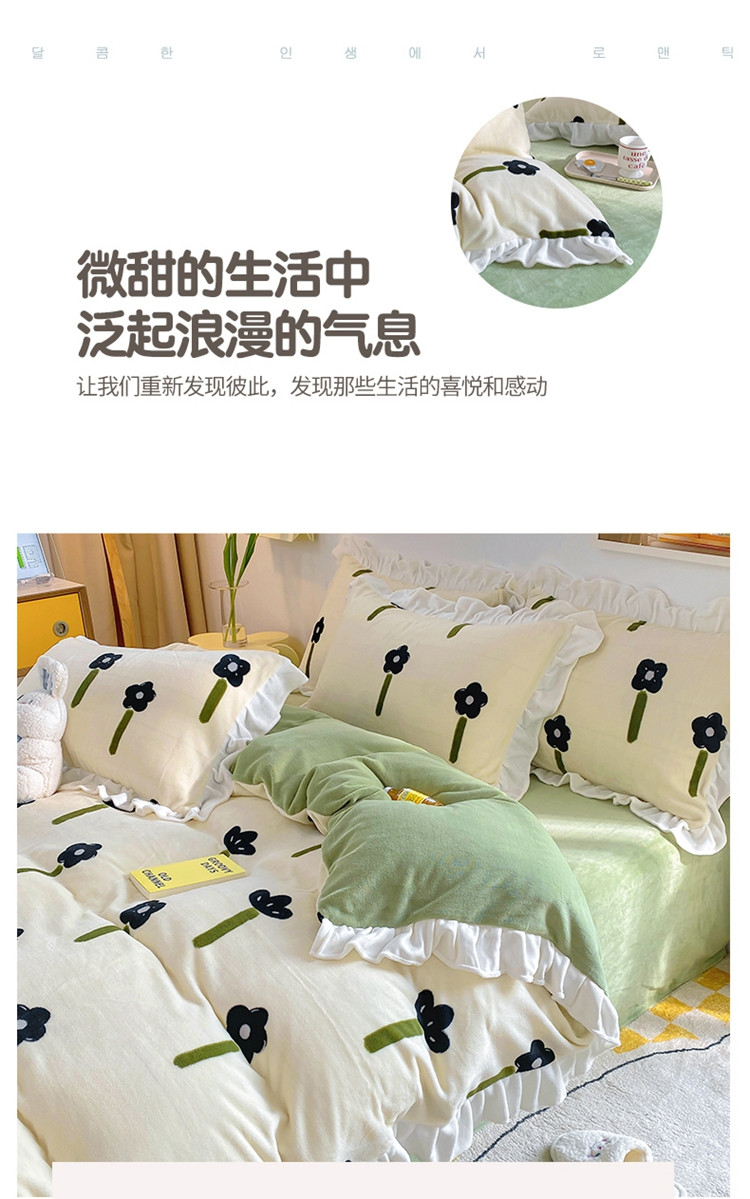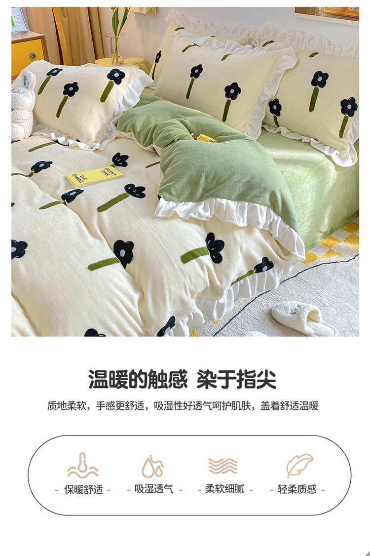 商品名称:总百寐22韩版花边抗静电保暖牛奶绒床单床笠四件套8.5斤直播