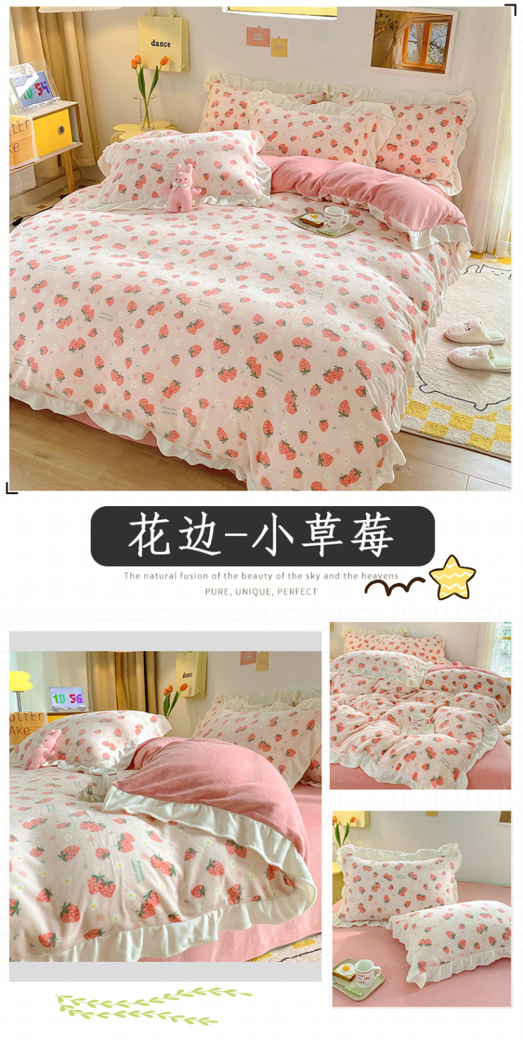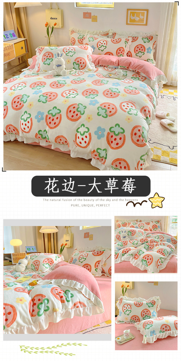 (总)百寐 2023新款加厚牛奶绒小清新可爱花卉卡通保暖学生三四件套,采薇,草莓园,大草莓,多多鸭,花颜兰,仙草,向阳花,小恐龙,小奶狗,草莓季,草莓派,乖乖熊,花漫,花仙子,花影,罗兰熊,美雅,梦里花,南瓜熊,浅夕,条纹兔,文艺风,夏末,向日葵,小红花,小美好,小胖龙,悠然