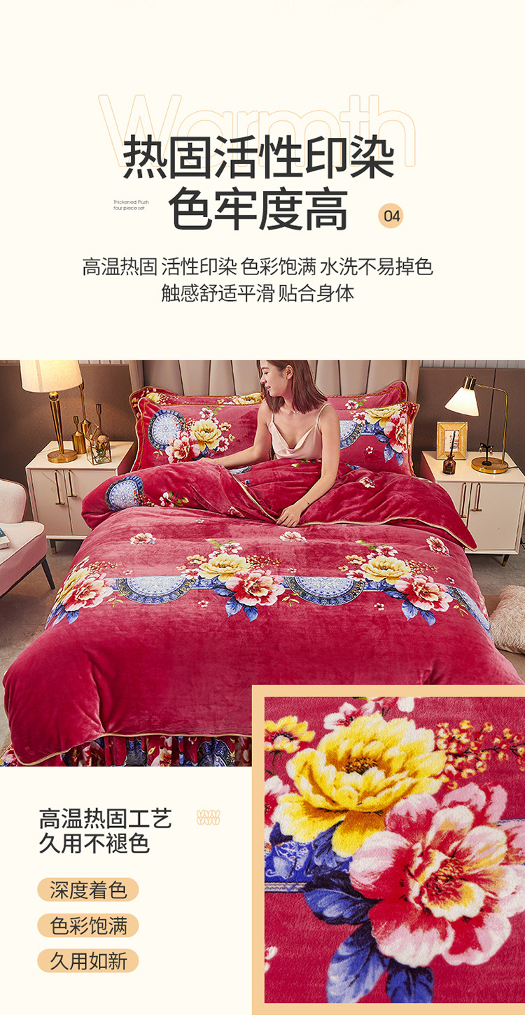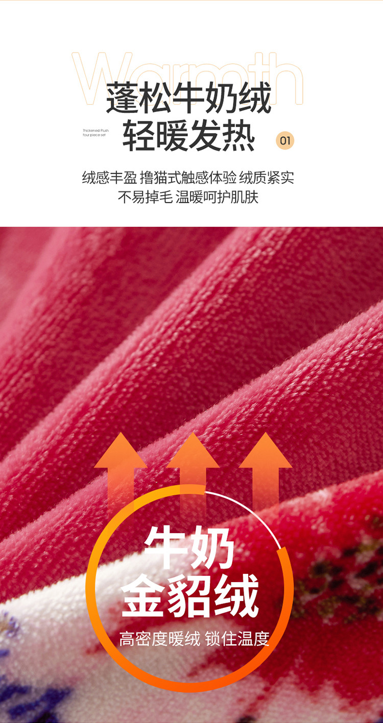 贝诗梦 2022新款加厚230克9斤牛奶绒金貂绒四件套浪漫花语,浪漫花语