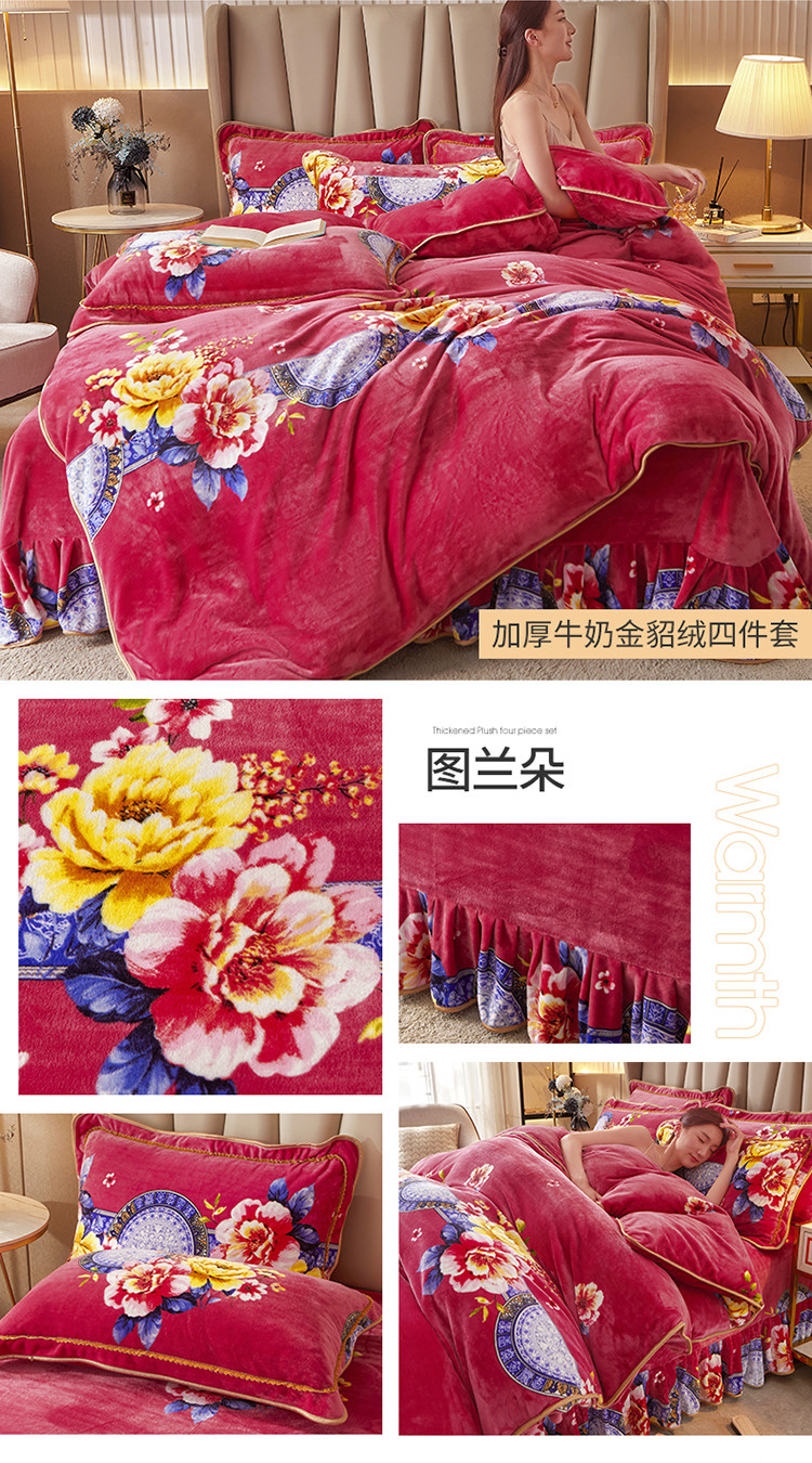 贝诗梦 2022新款加厚牛奶金貂绒四件套 图兰朵