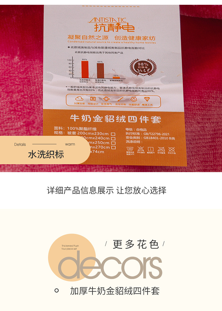 商品名称:贝诗梦 2022新款加厚牛奶金貂绒四件套 图兰朵