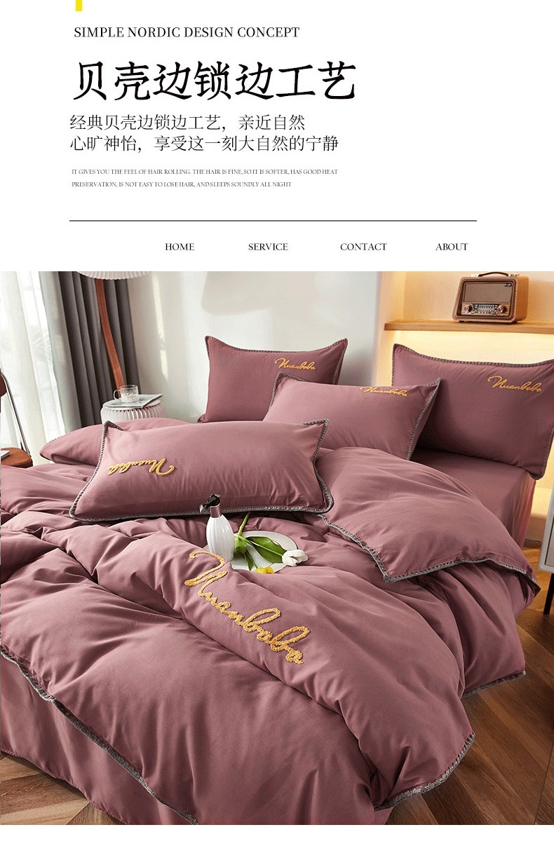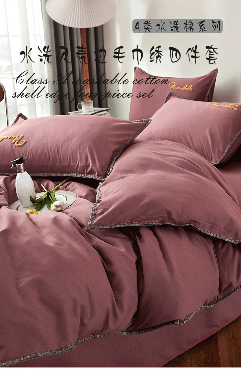 当前位置: 91家纺网 > 商品网购 > 床品套件 > 四件套 > 水洗棉四件套 > 啊雅家居 2025新款A类水洗棉贝壳边毛巾绣四件套 时尚酱