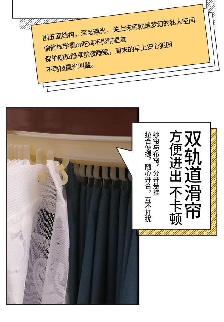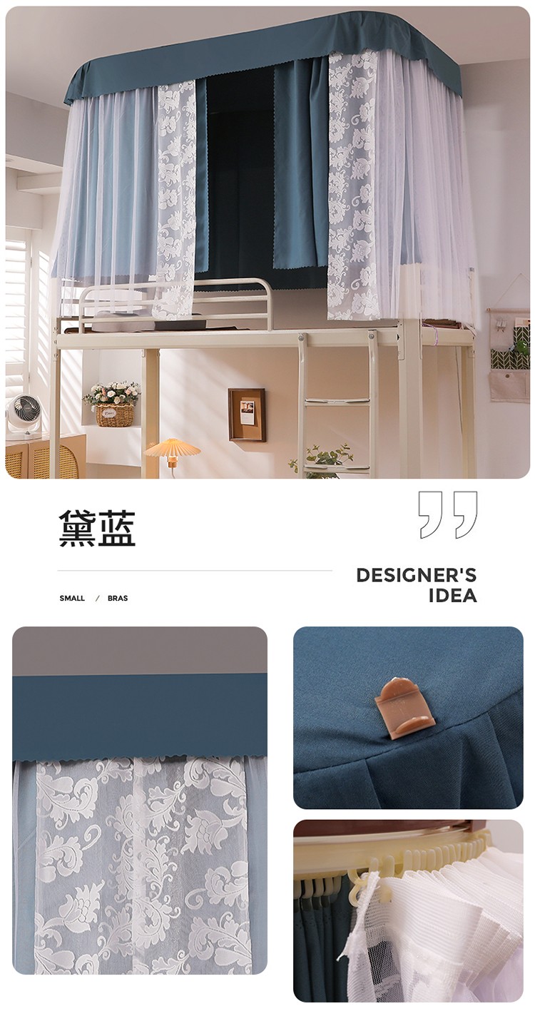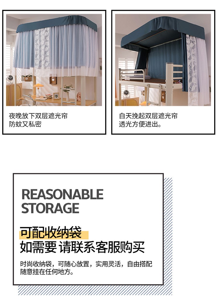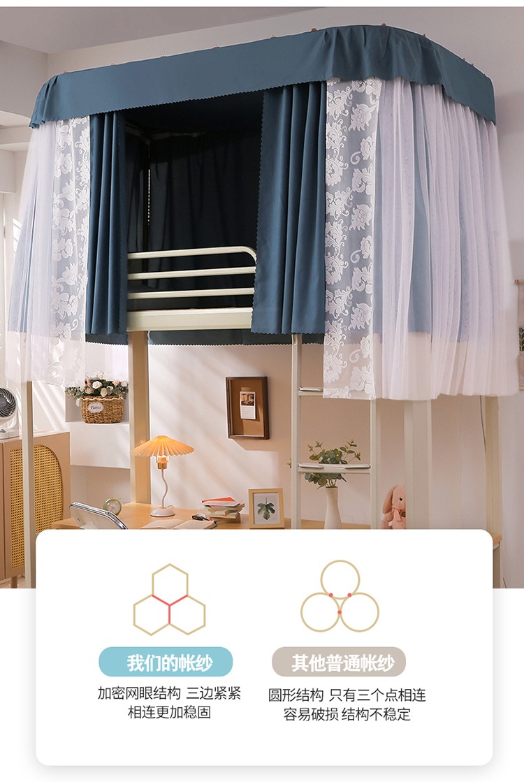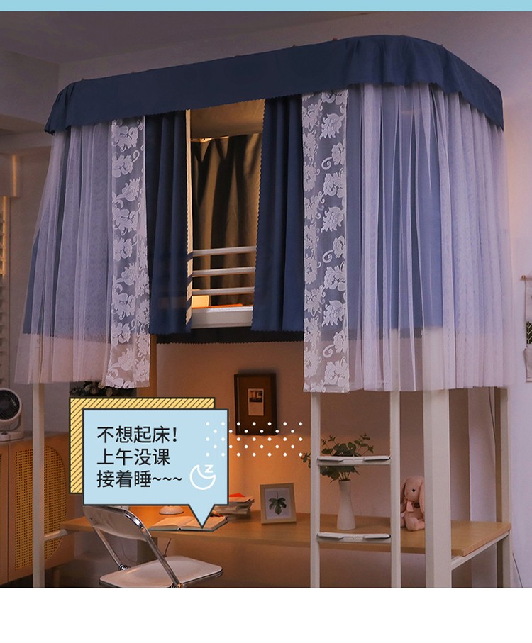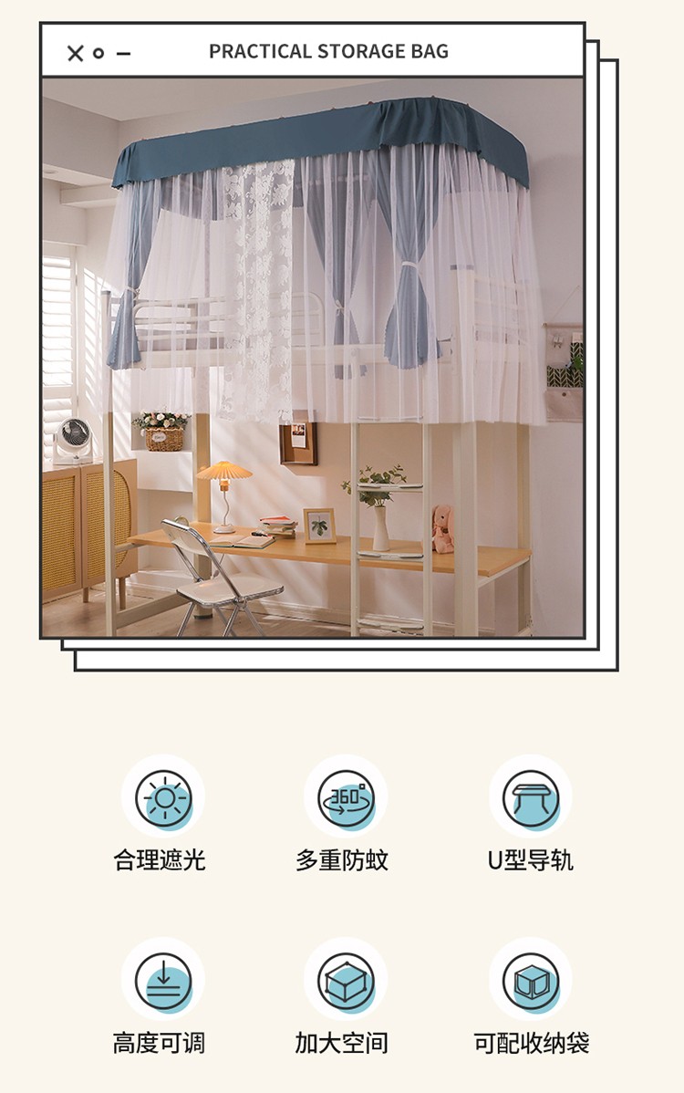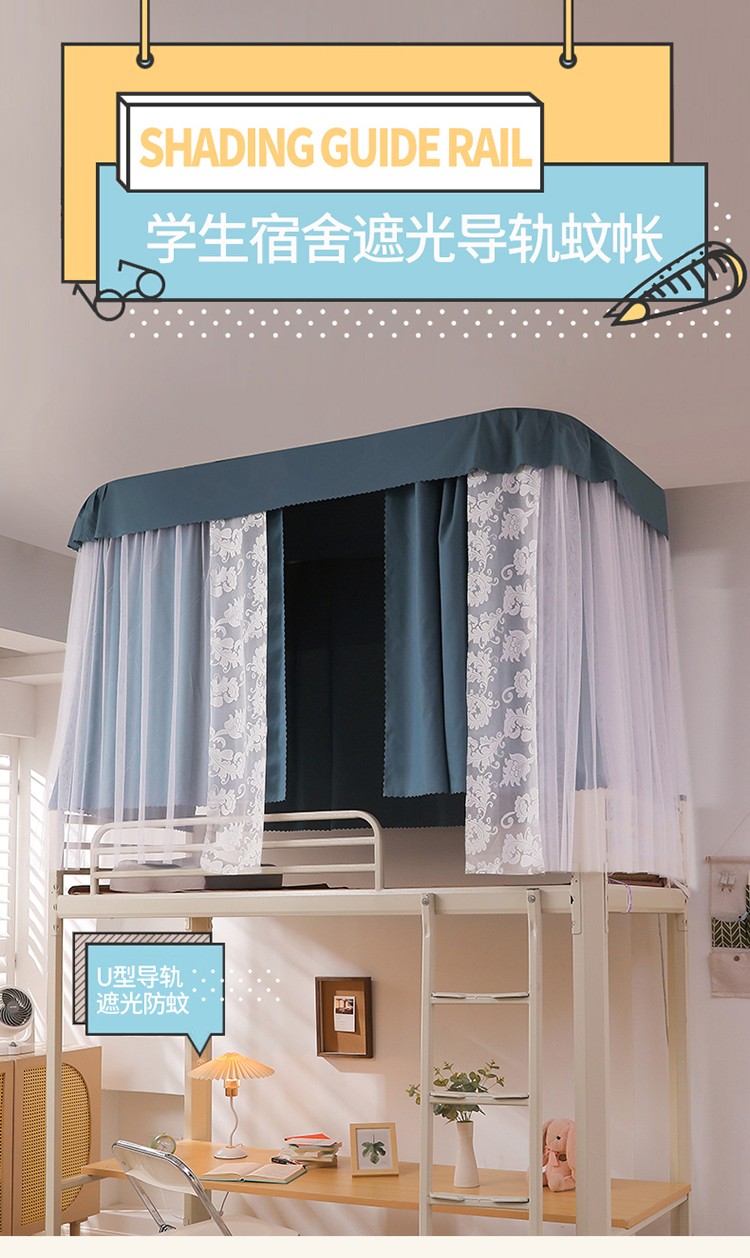 商品名称:飞轮海U型双轨道床帘学生蚊帐上下铺通用XD-1 黛蓝送风扇杆