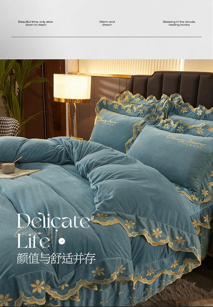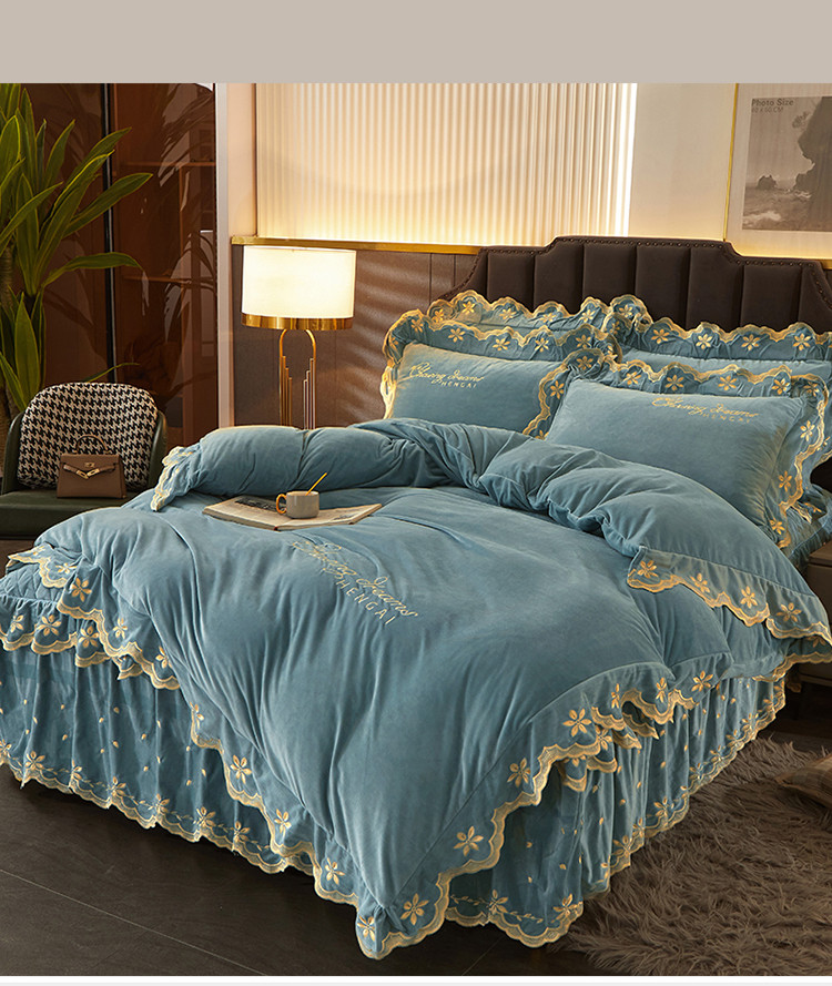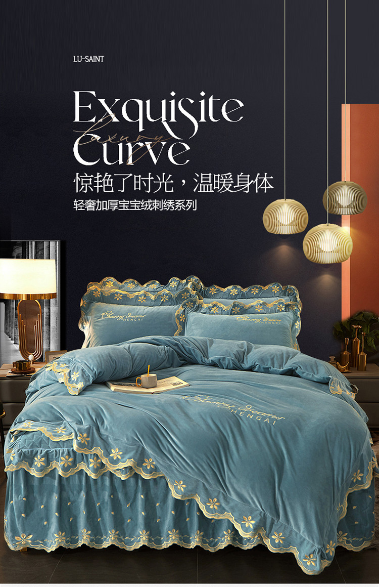 当前位置: 91家纺网 > 商品网购 > 床品套件 > 四件套 > 宝宝绒四件套 > 恒爱 2022新款秋冬轻奢宝宝绒刺绣床裙款四件套 浅灰蓝