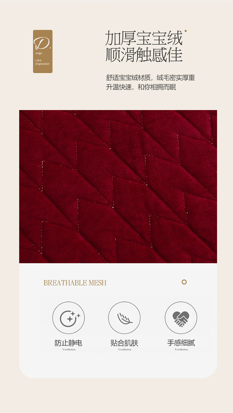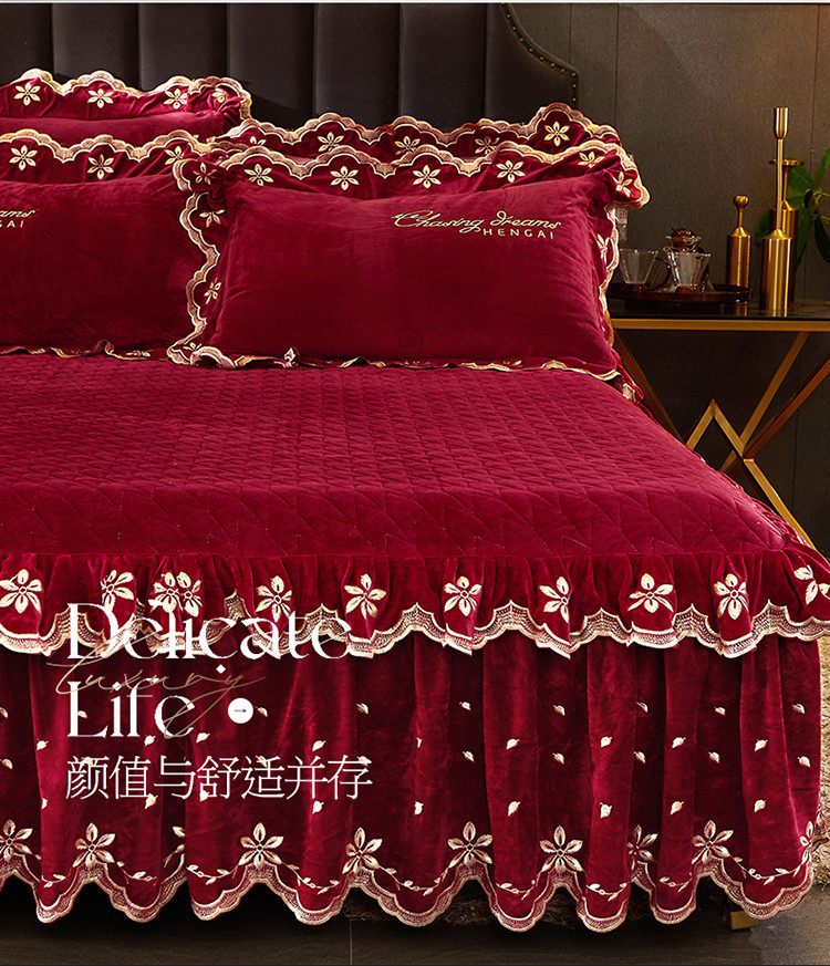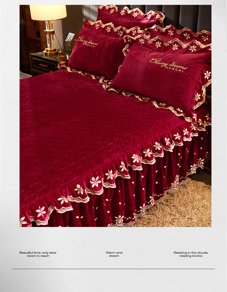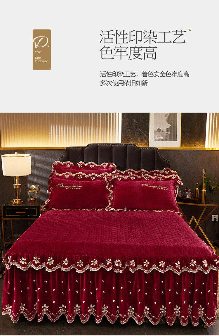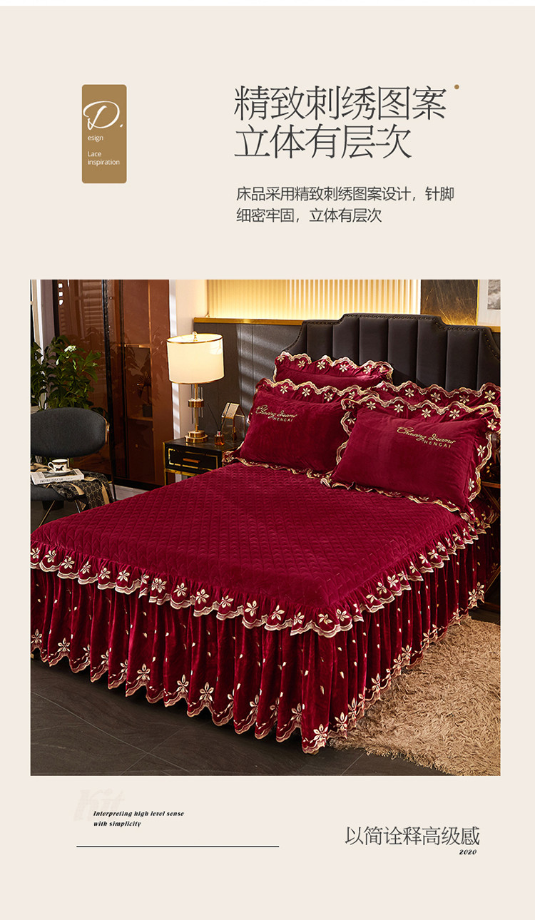• 91家纺网 家纺一手货源 找家纺 恒爱 2022新款秋冬轻奢宝宝绒刺绣单床裙 酒红