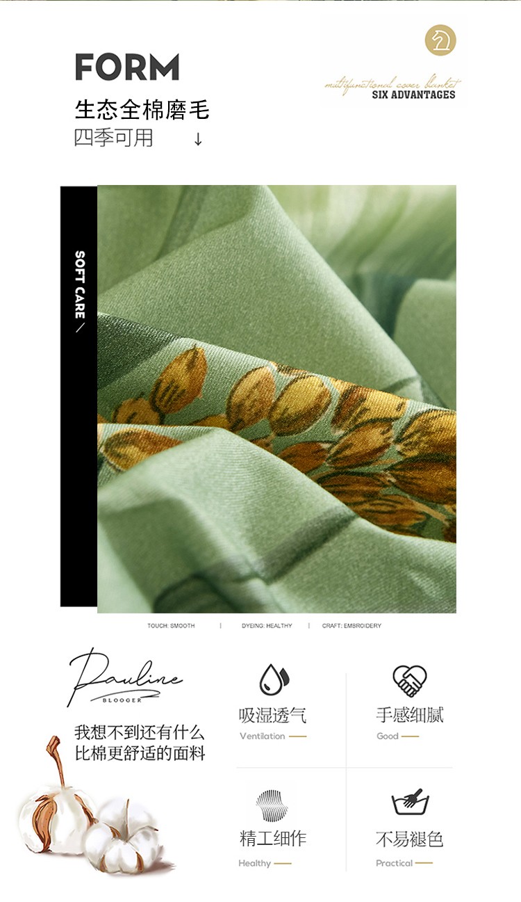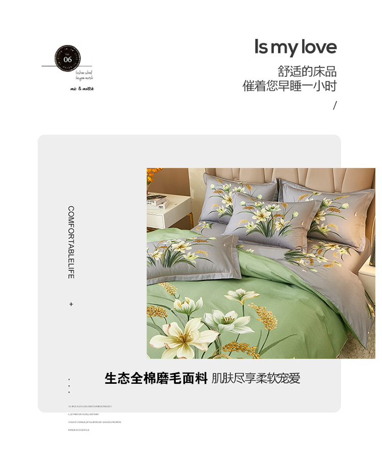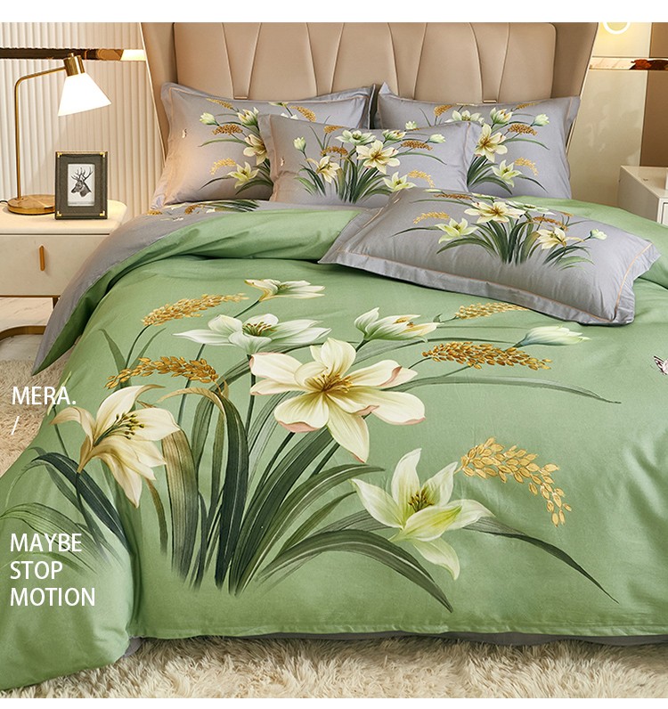 雲归梦 2022年新款加厚全棉大版四件套第二批-花卉 花容月貌-绿