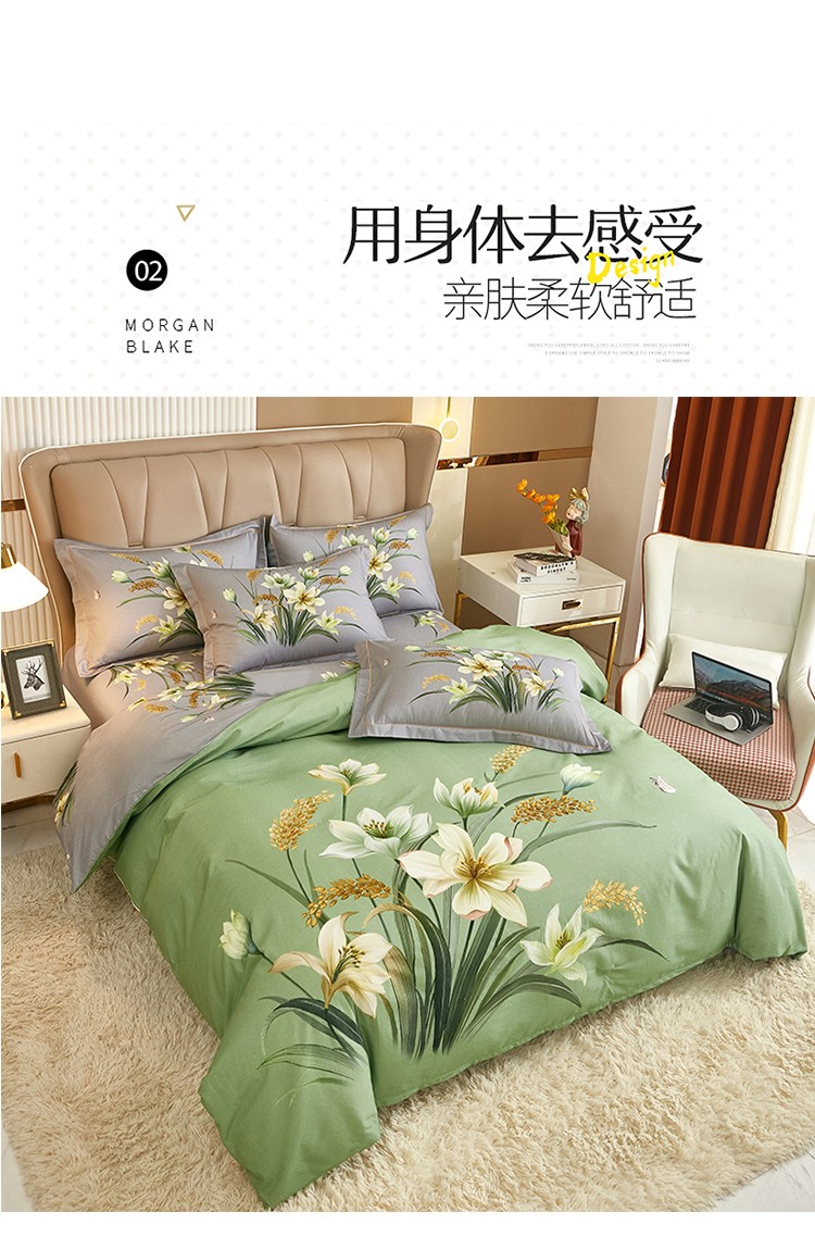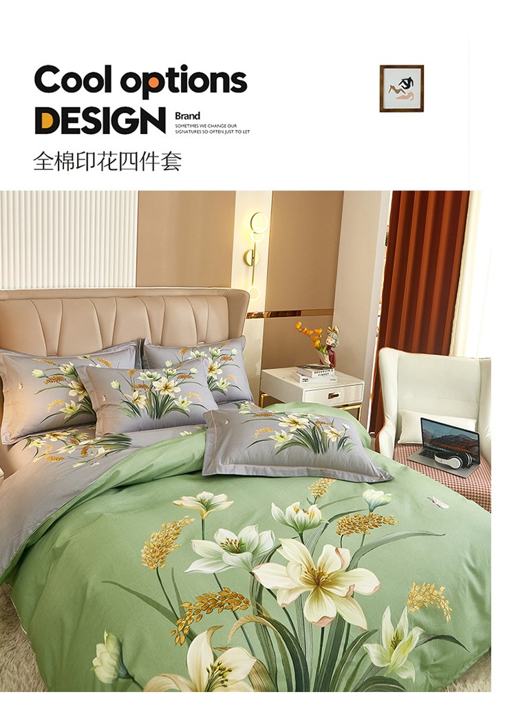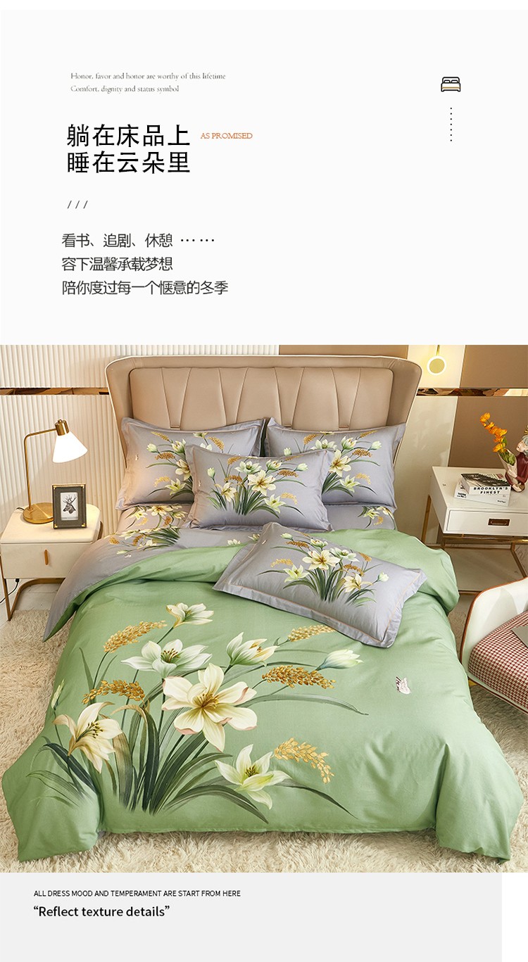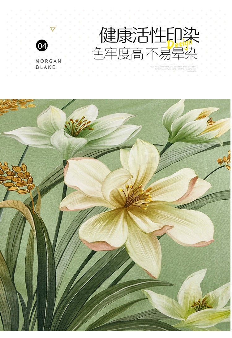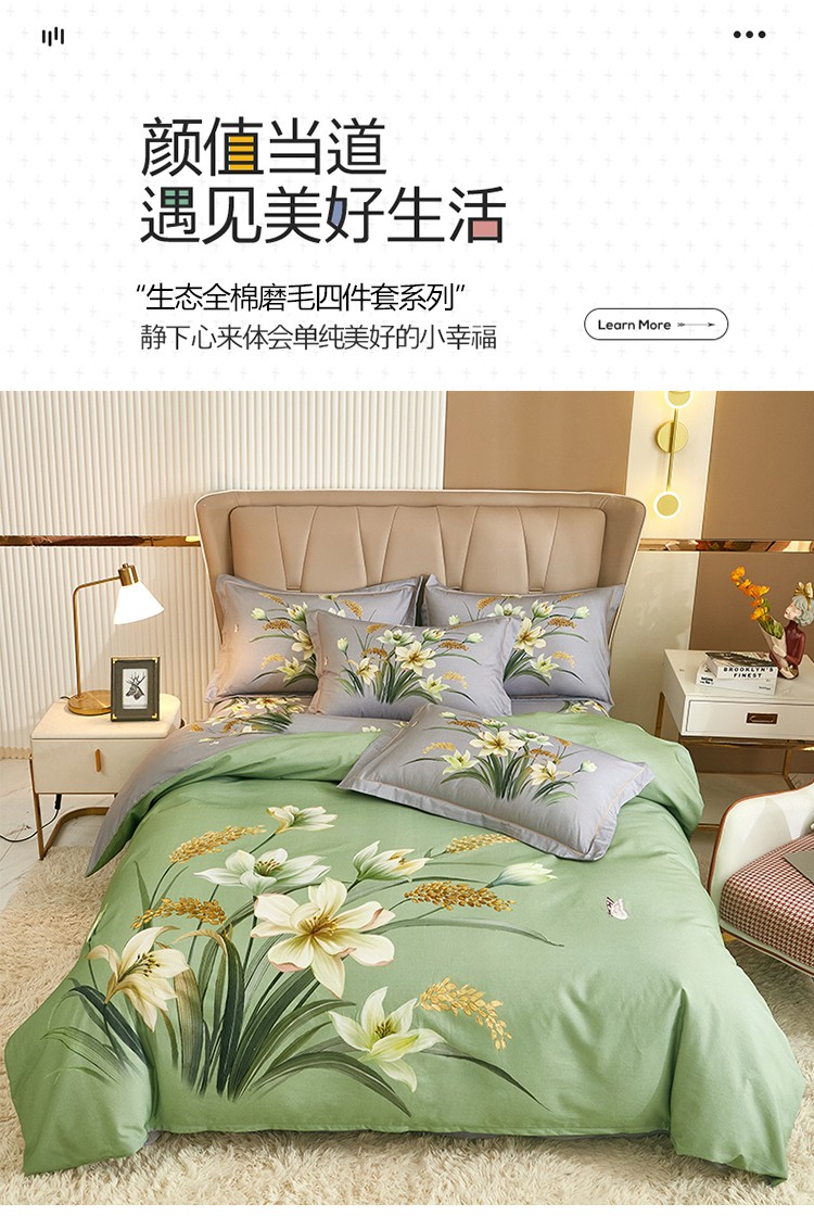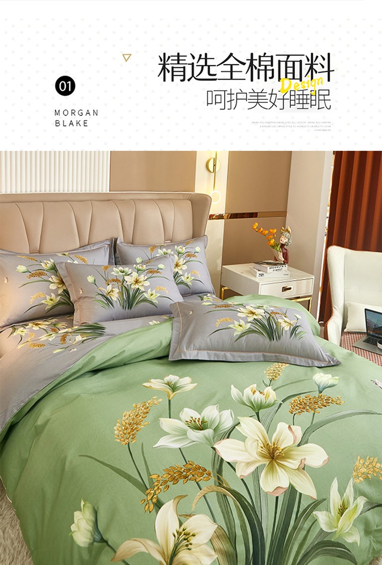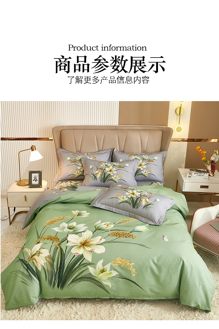 商品名称:雲归梦 2022年新款加厚全棉大版四件套第二批-花卉 花容月貌-绿