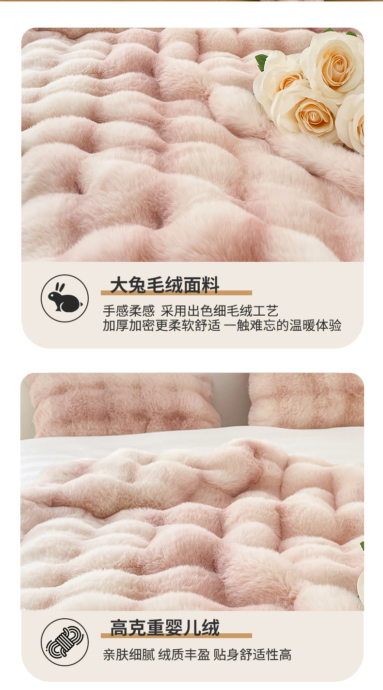 商品名称:(总)奥裕2025新款A类480克托斯卡纳大兔毛仿皮草兔兔绒午睡毛毯(含包装)