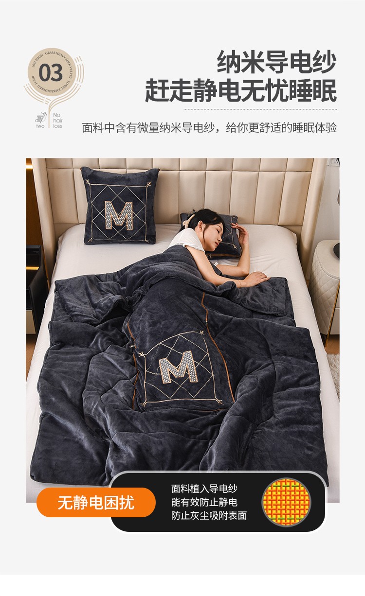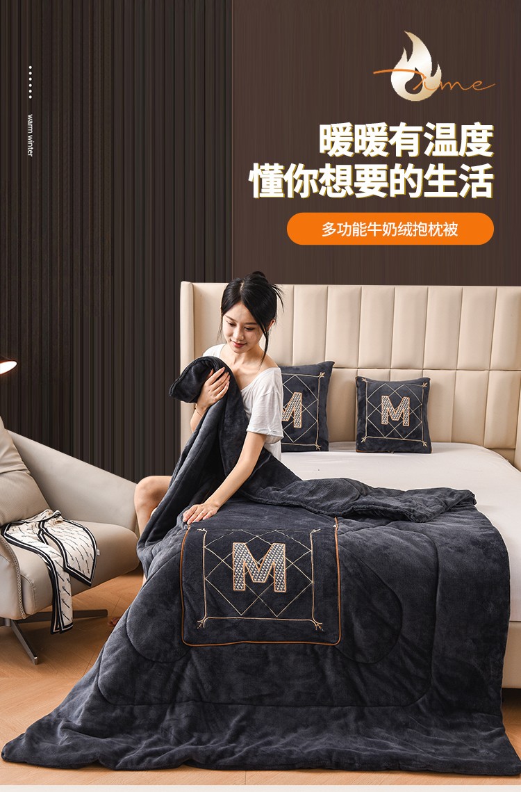 商品名称:(总)阳光依佰2022新款牛奶绒多功能抱枕被系列-字母M