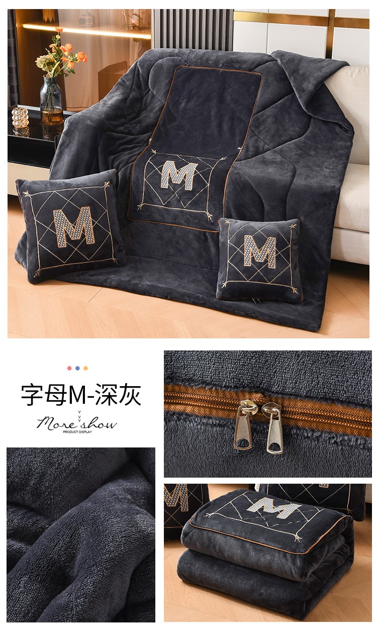 (总)阳光依佰2022新款牛奶绒多功能抱枕被系列-字母M