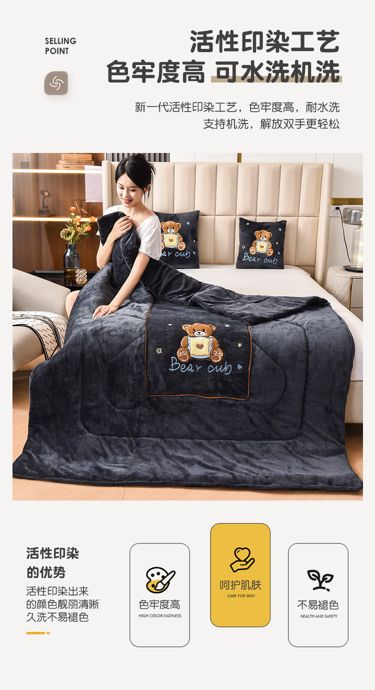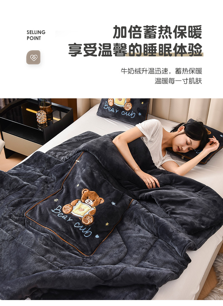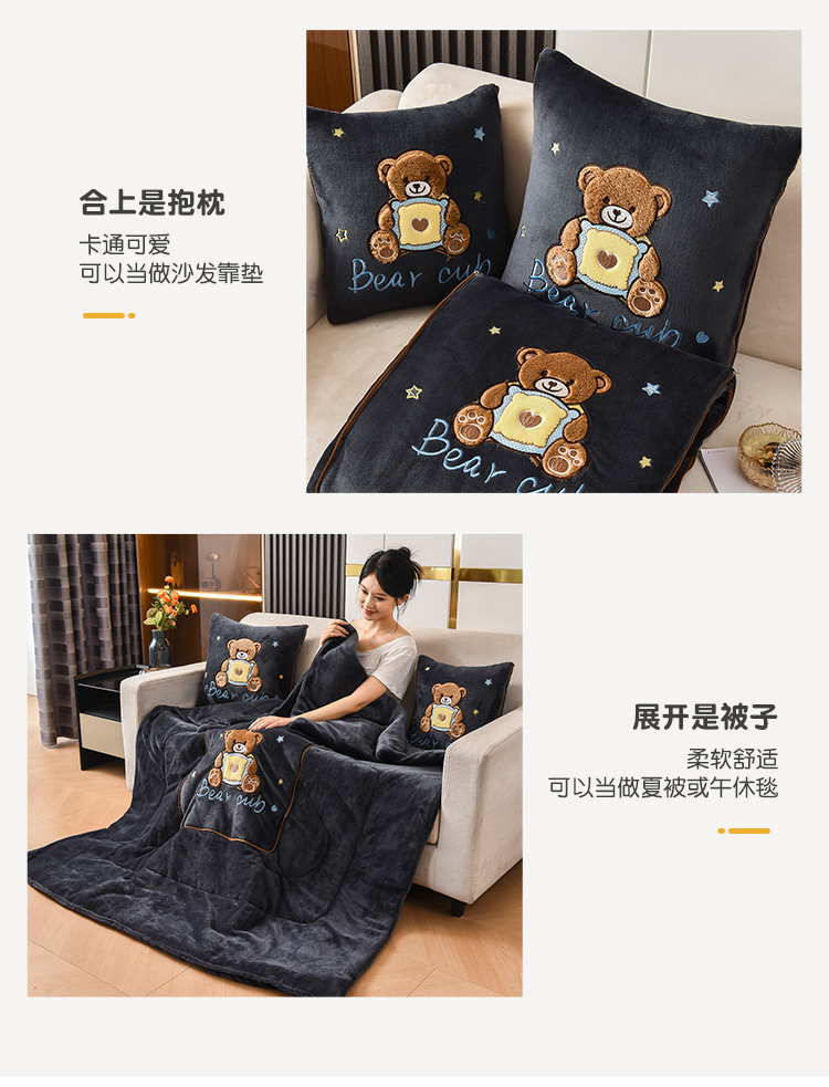 (总)阳光依佰2022新款牛奶绒多功能抱枕被系列-艾尼熊
