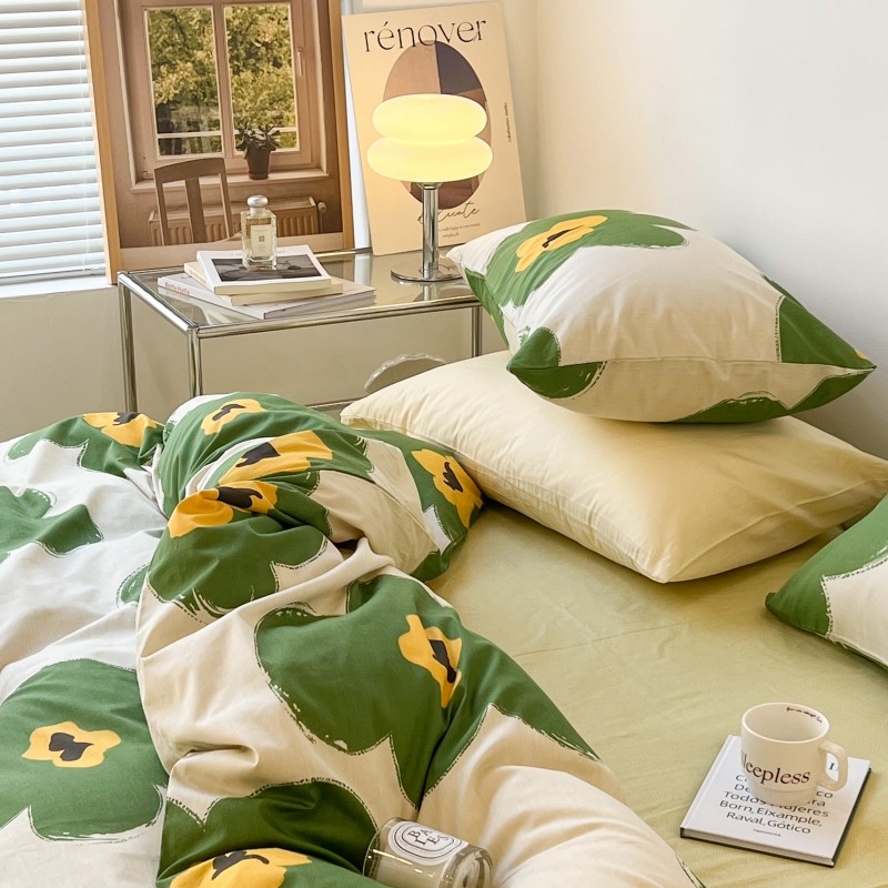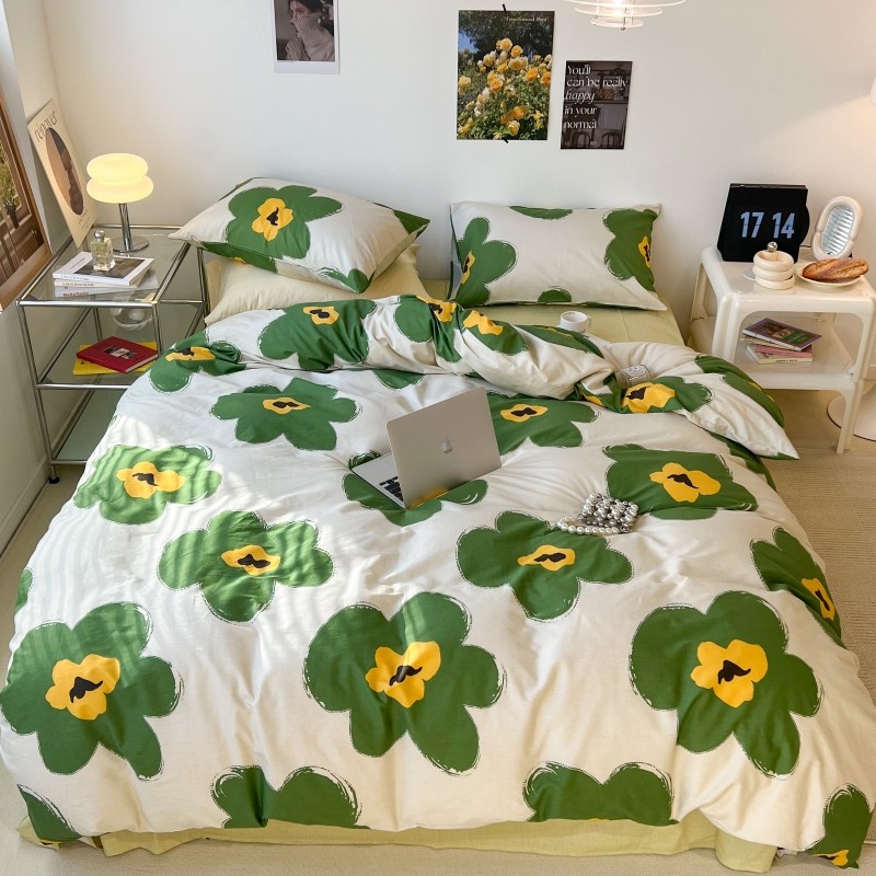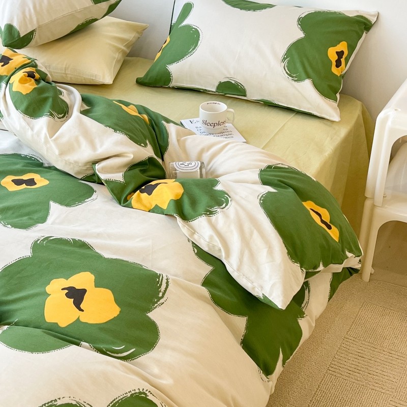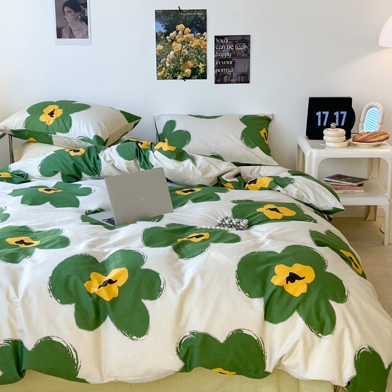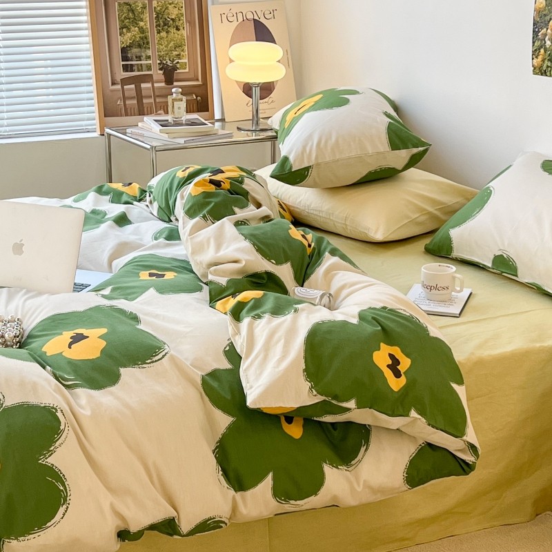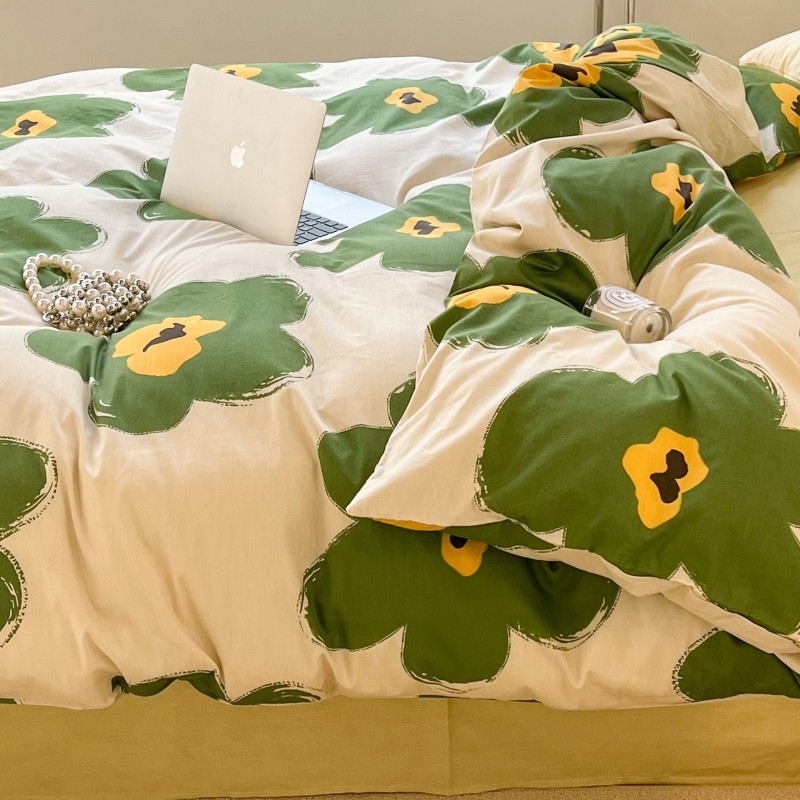 昔可家纺 2022新款法式田园花卉系列全棉四件套 半夏绿花