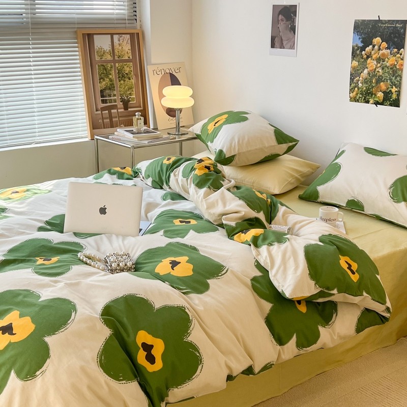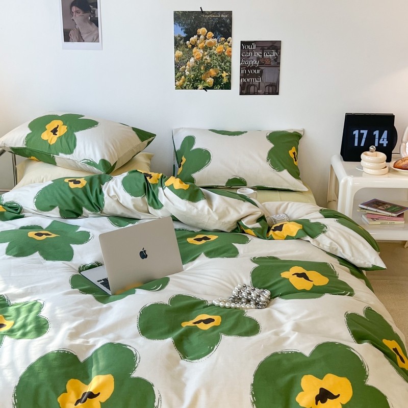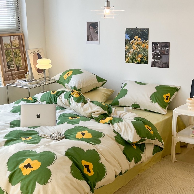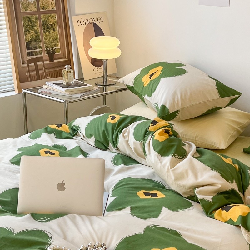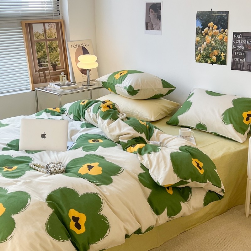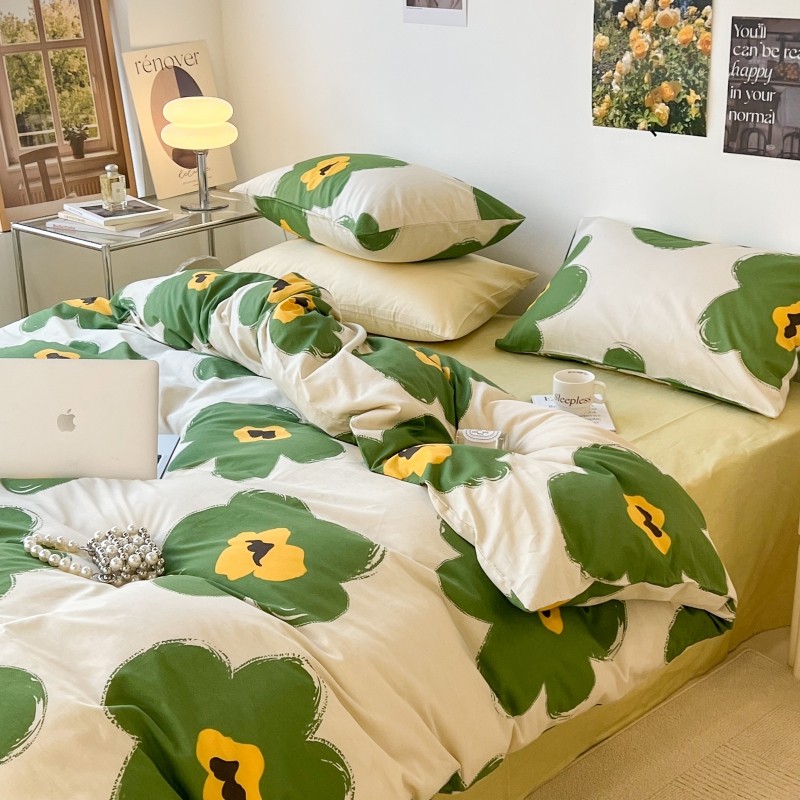 昔可家纺 2022新款法式田园花卉系列全棉四件套 半夏绿花