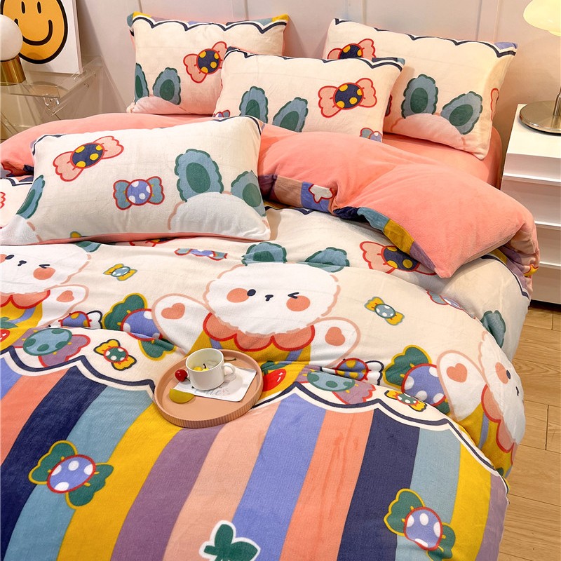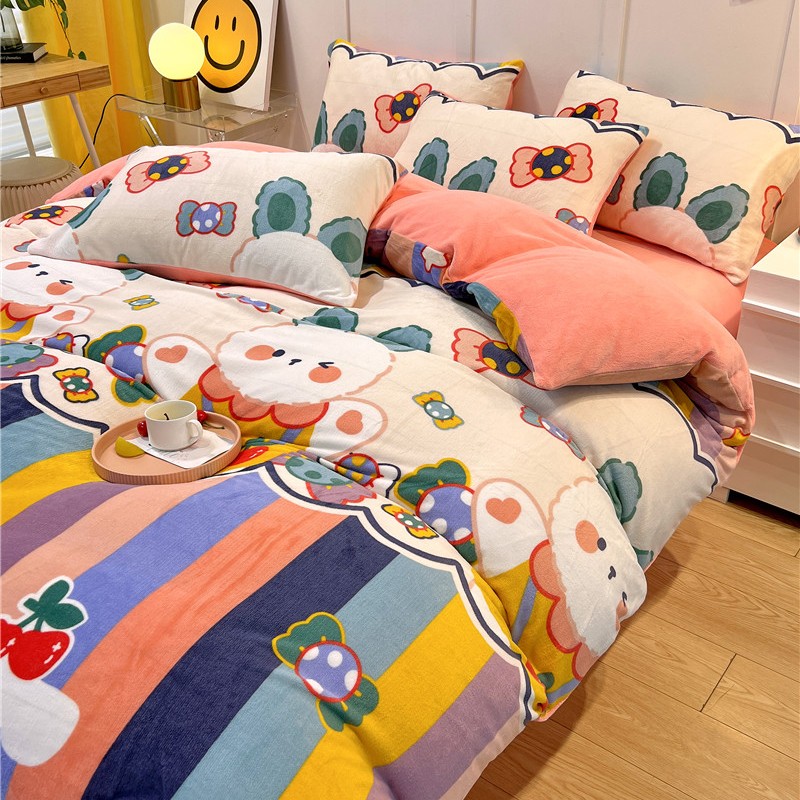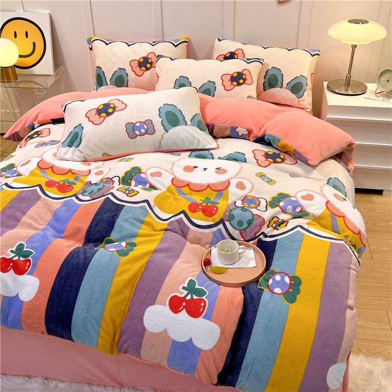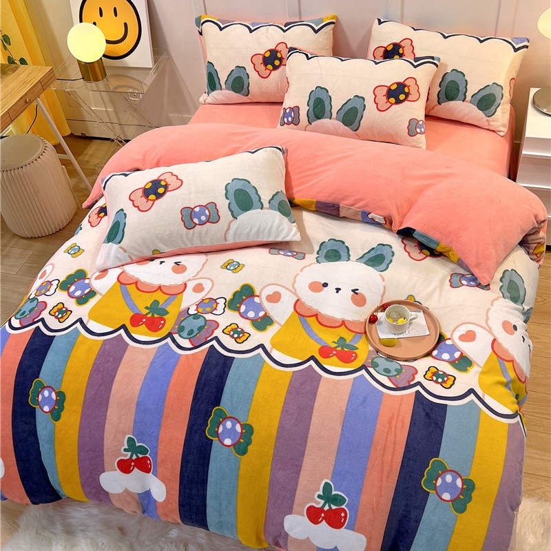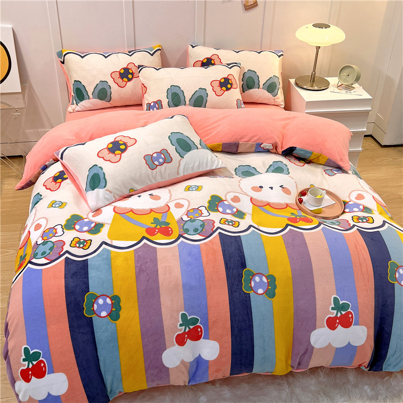 商品名称:孩子王2023冬季加厚牛奶绒水晶绒珊瑚绒印花系列单被套 彩虹小兔
