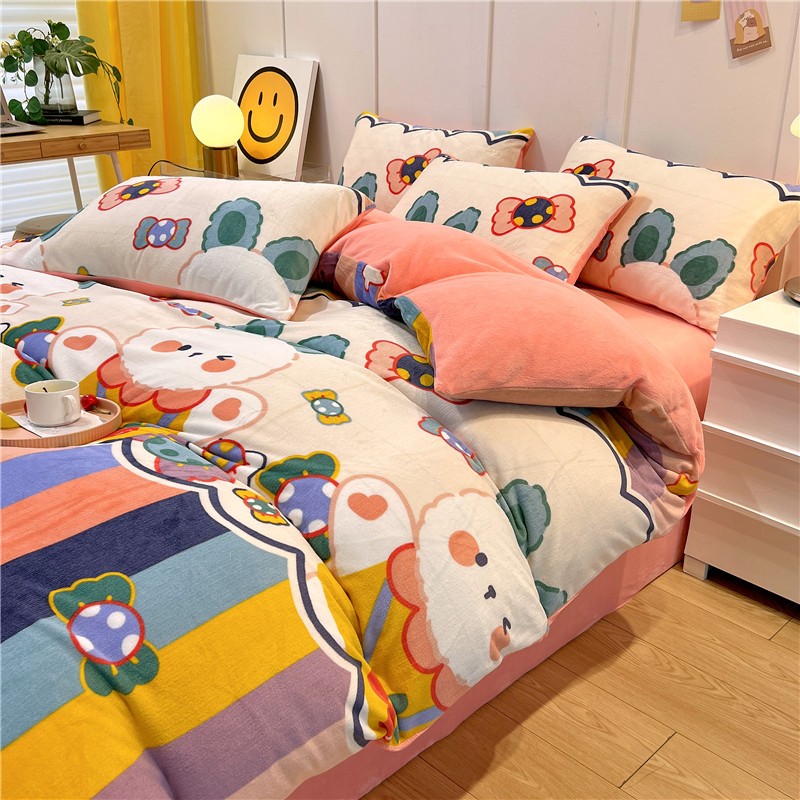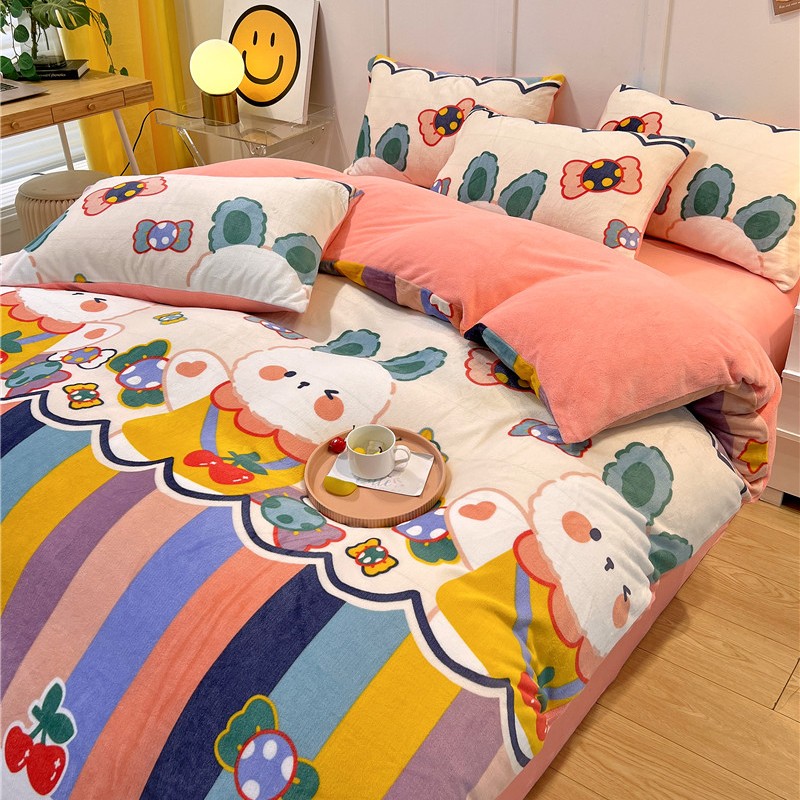 孩子王2023冬季加厚牛奶绒水晶绒珊瑚绒印花系列单被套 彩虹小兔