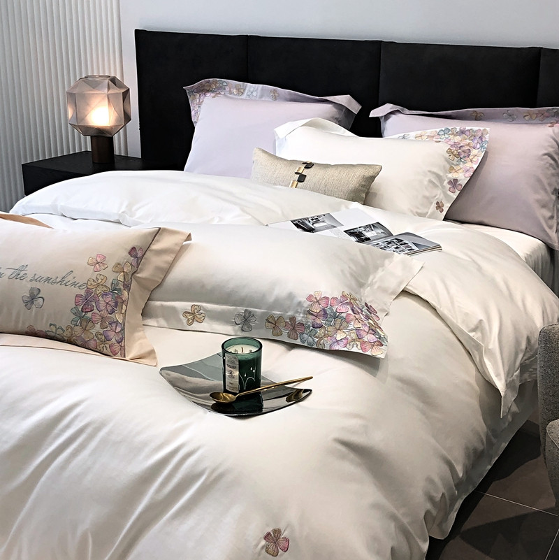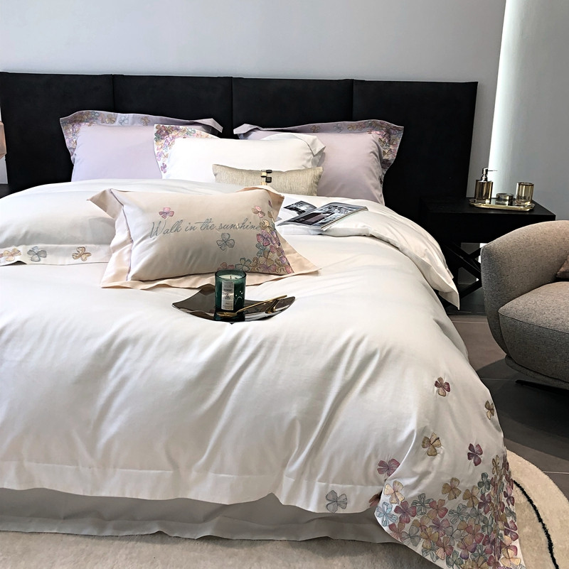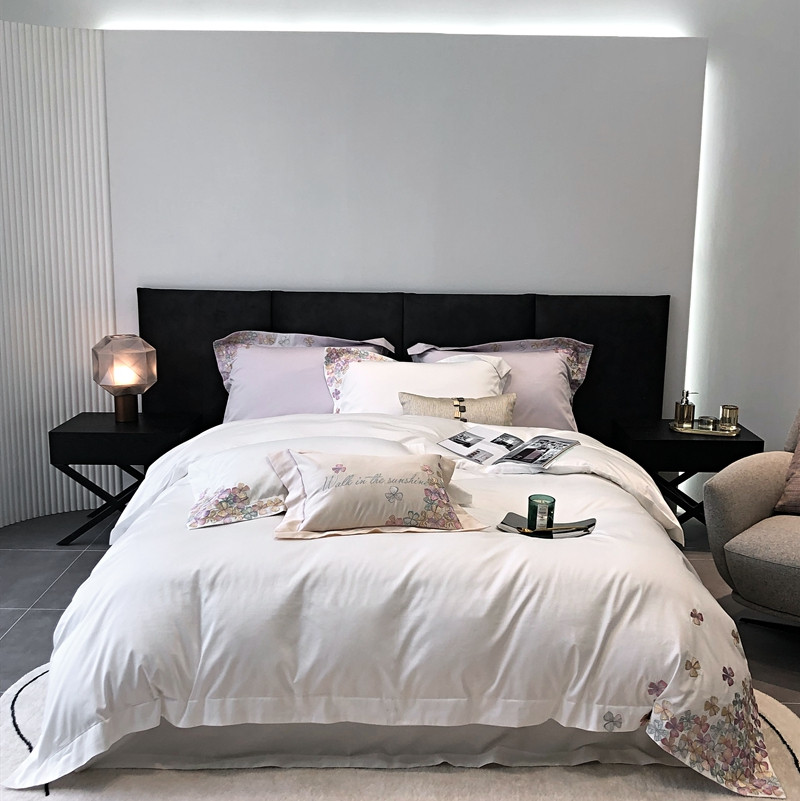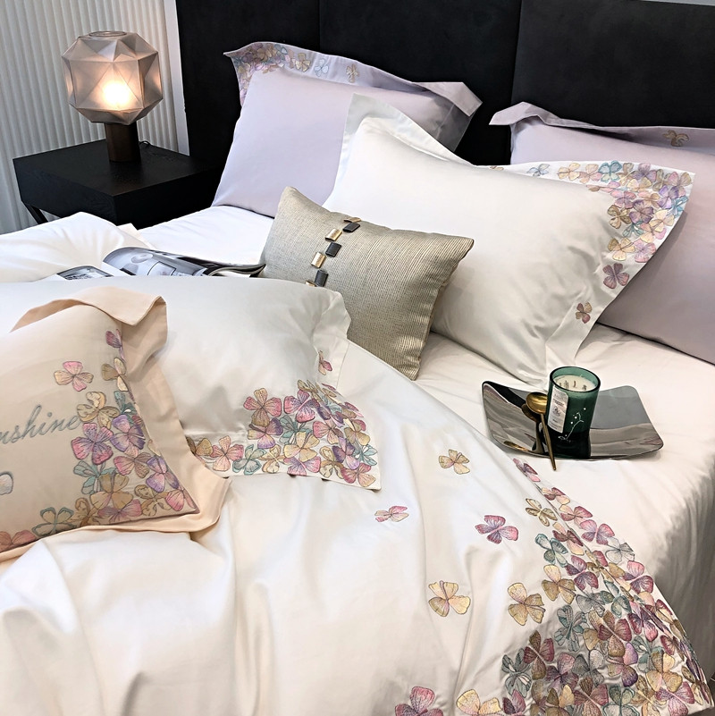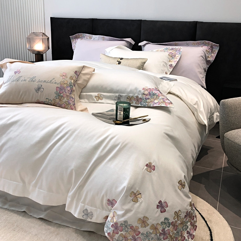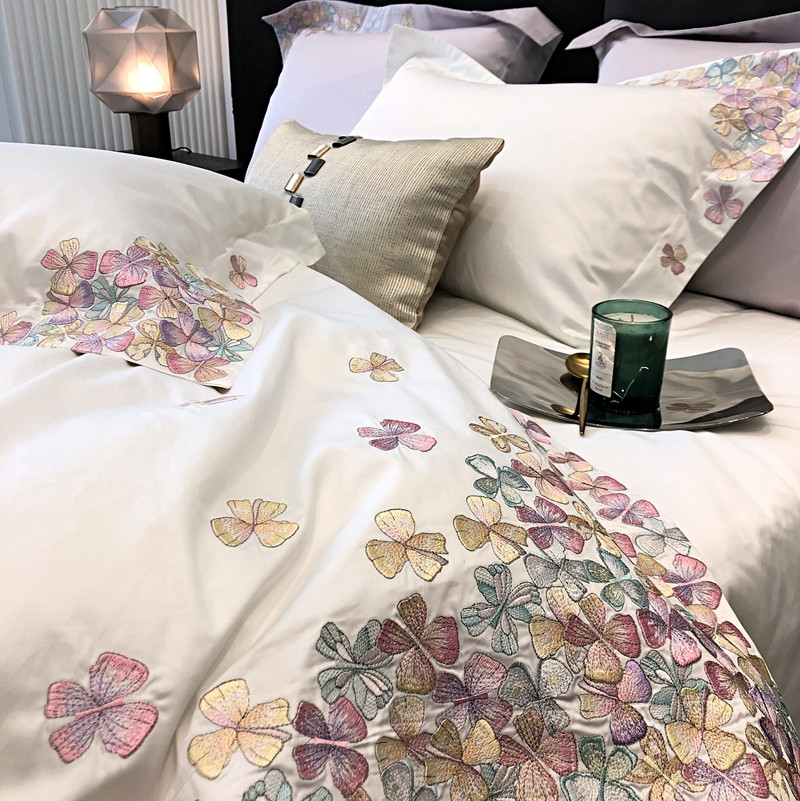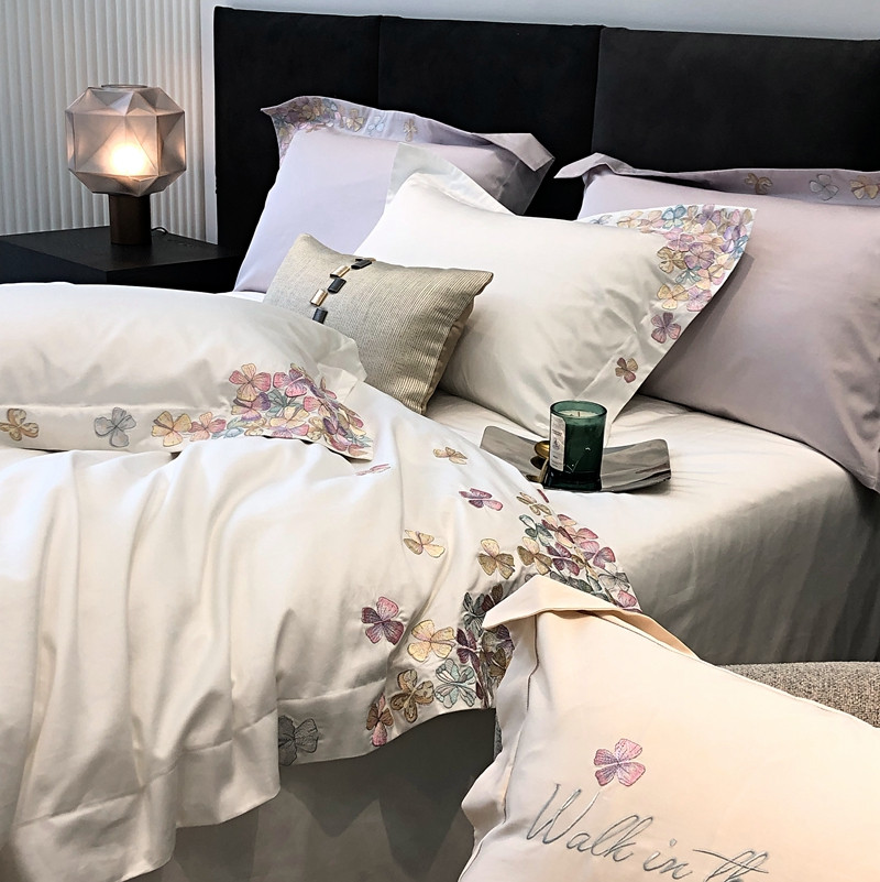 (总)鹿班家居 2026新款100S长绒棉纯棉精密刺绣系列四件套-花影摇曳(标准会员-20元),花影摇曳-粉色,花影摇曳-紫色
