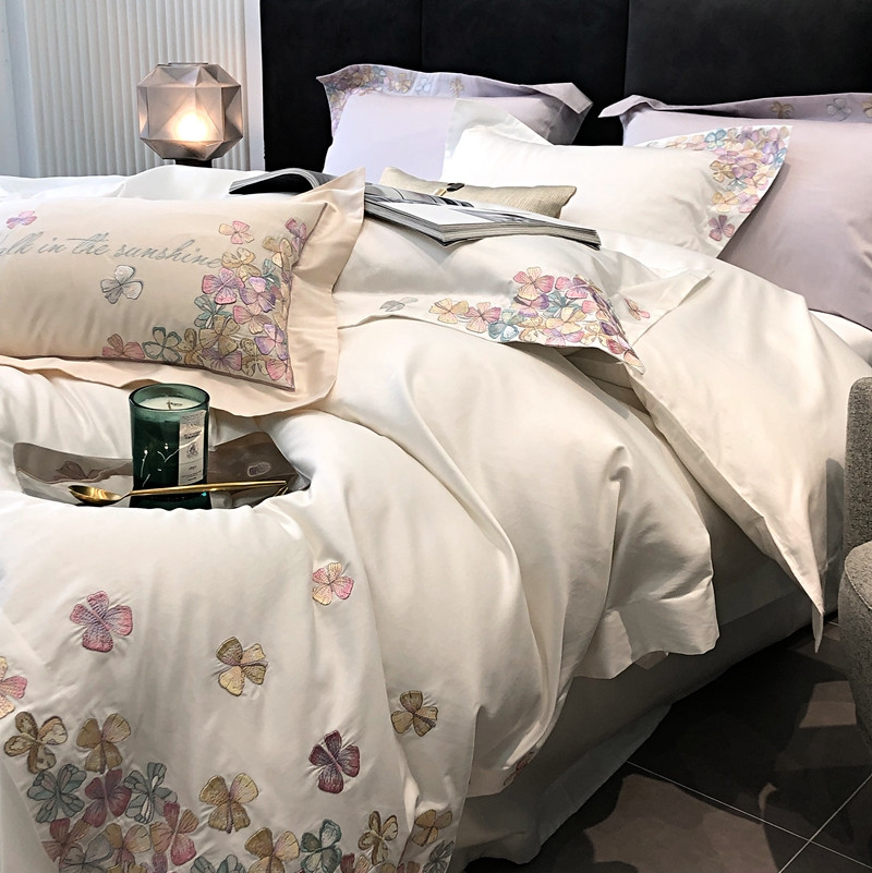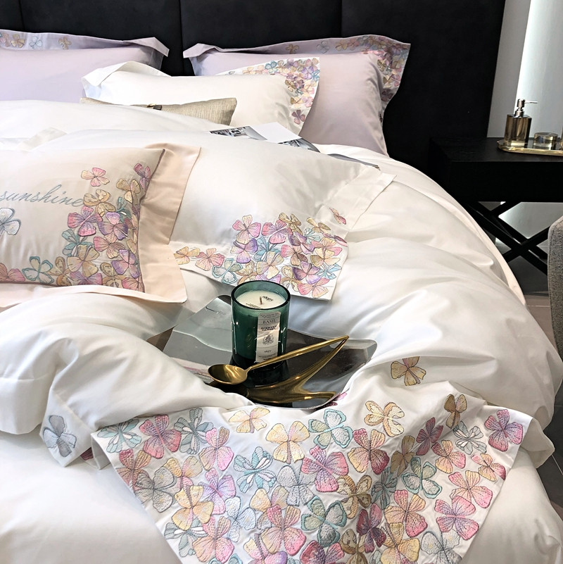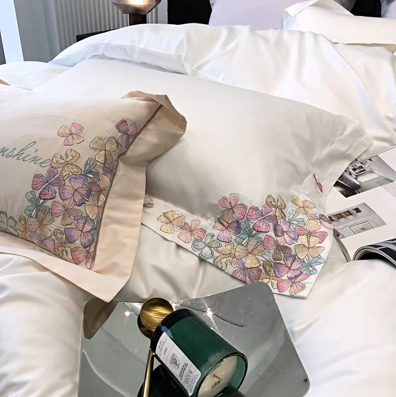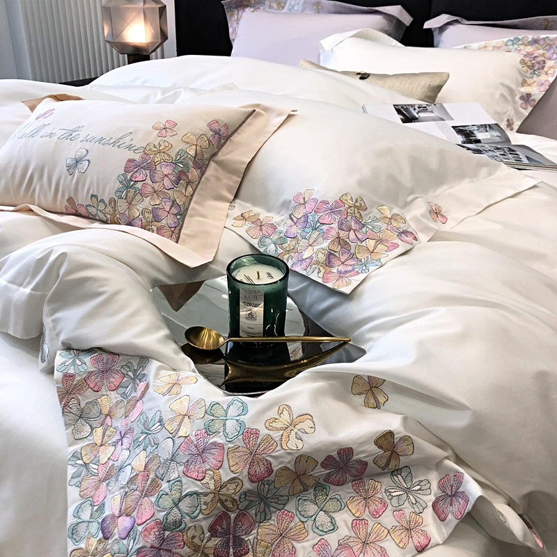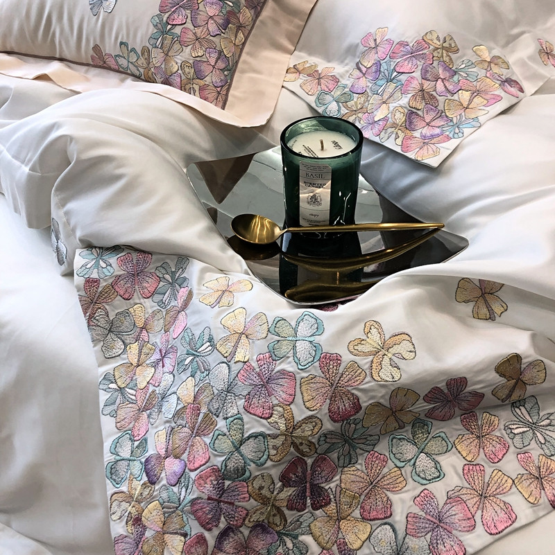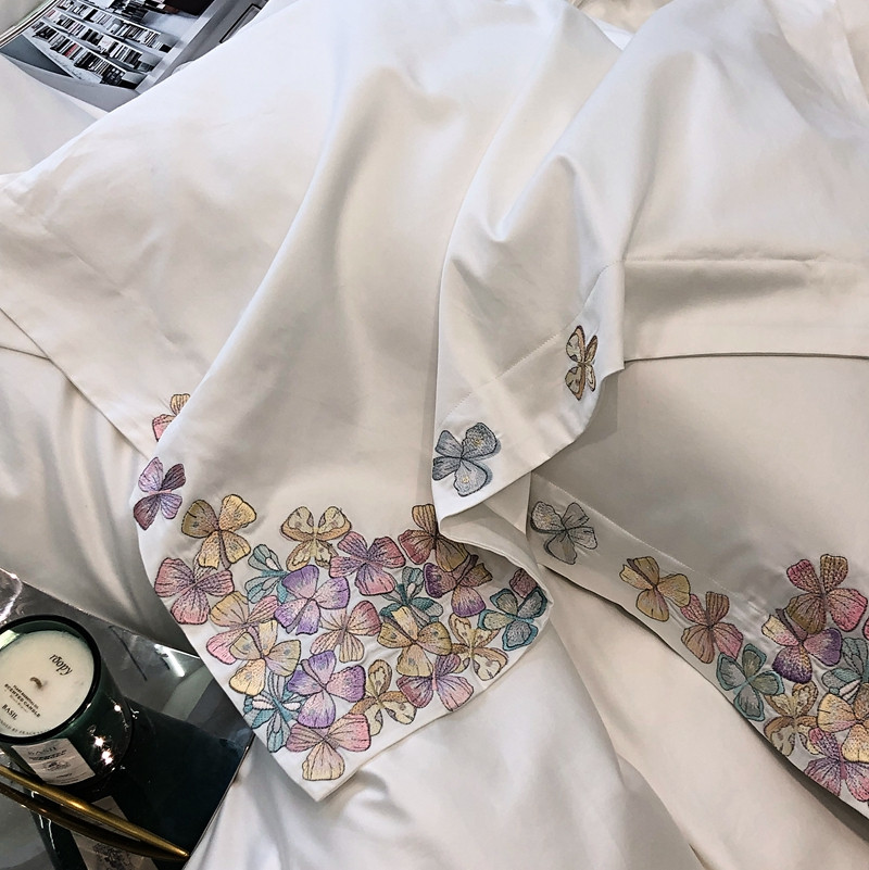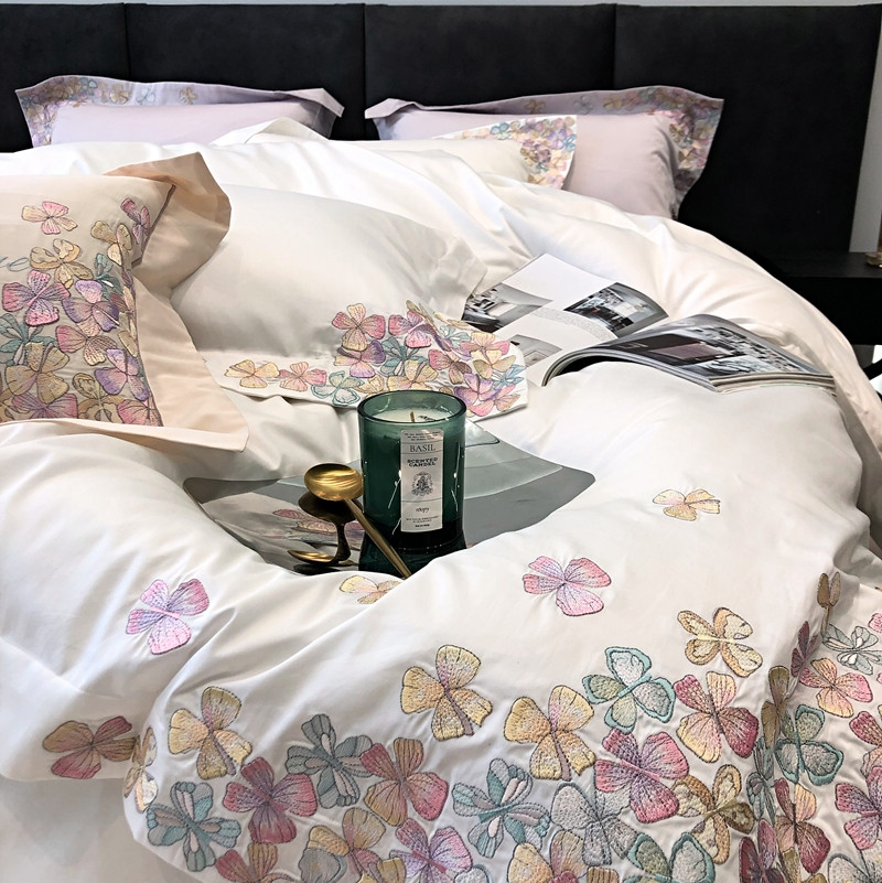 (总)鹿班家居 2026新款100S长绒棉纯棉精密刺绣系列四件套-花影摇曳(标准会员-20元),花影摇曳-粉色,花影摇曳-紫色
