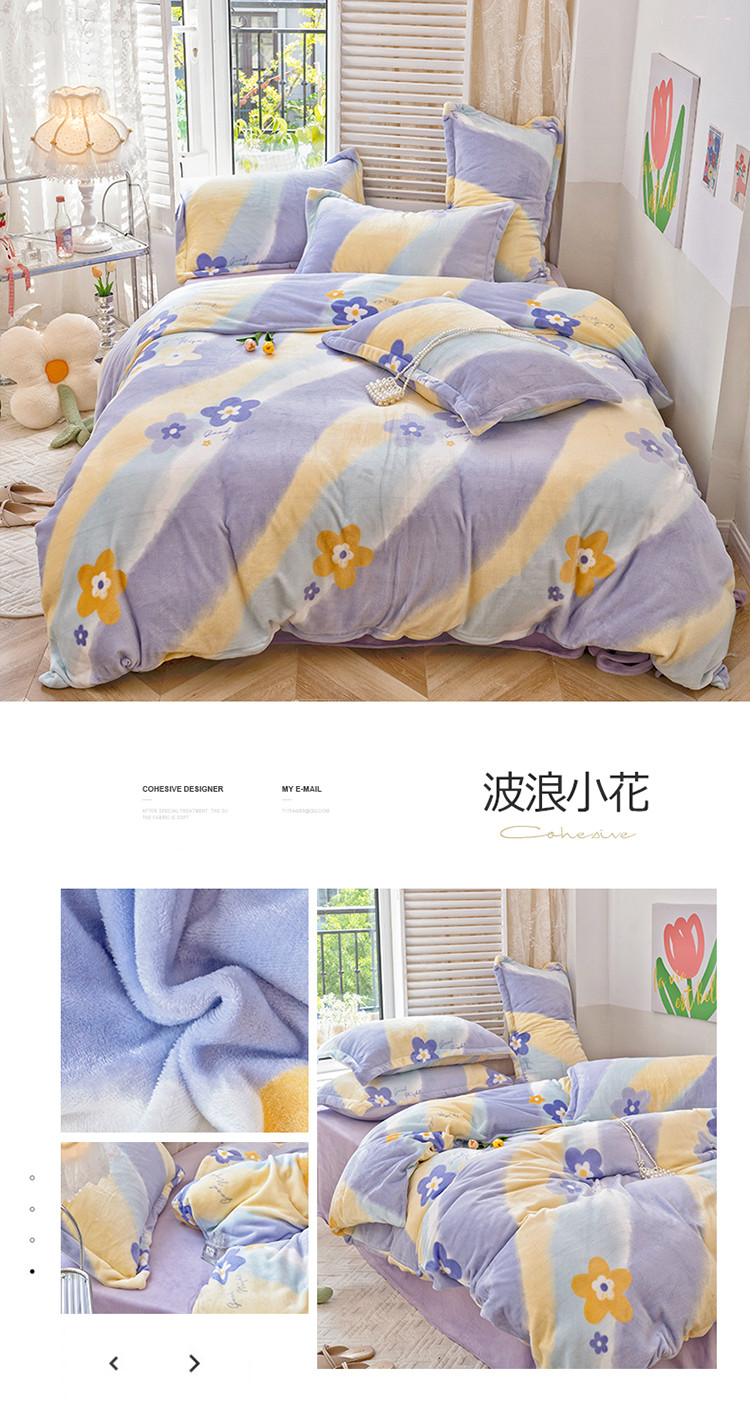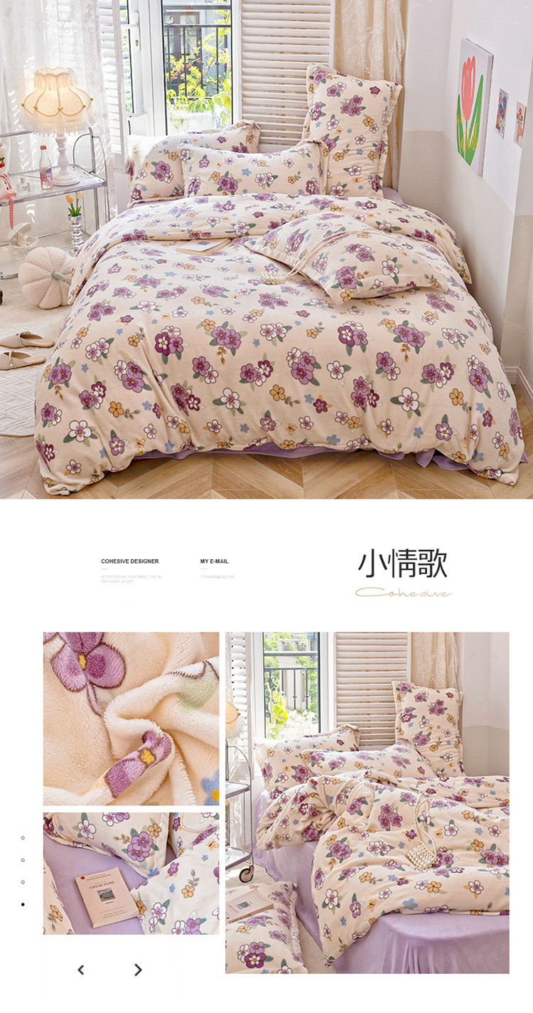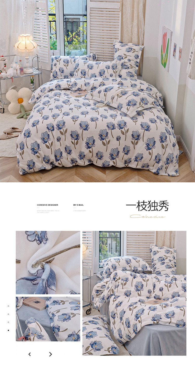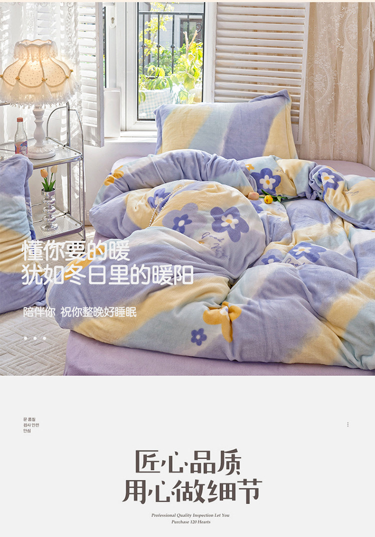 (总)沐棉2022新款抗静电高克重加厚小清新印花牛奶绒四件套