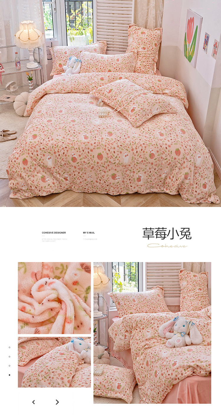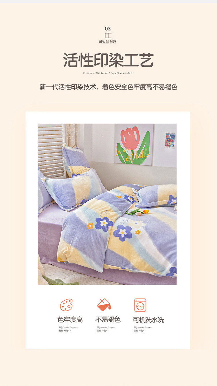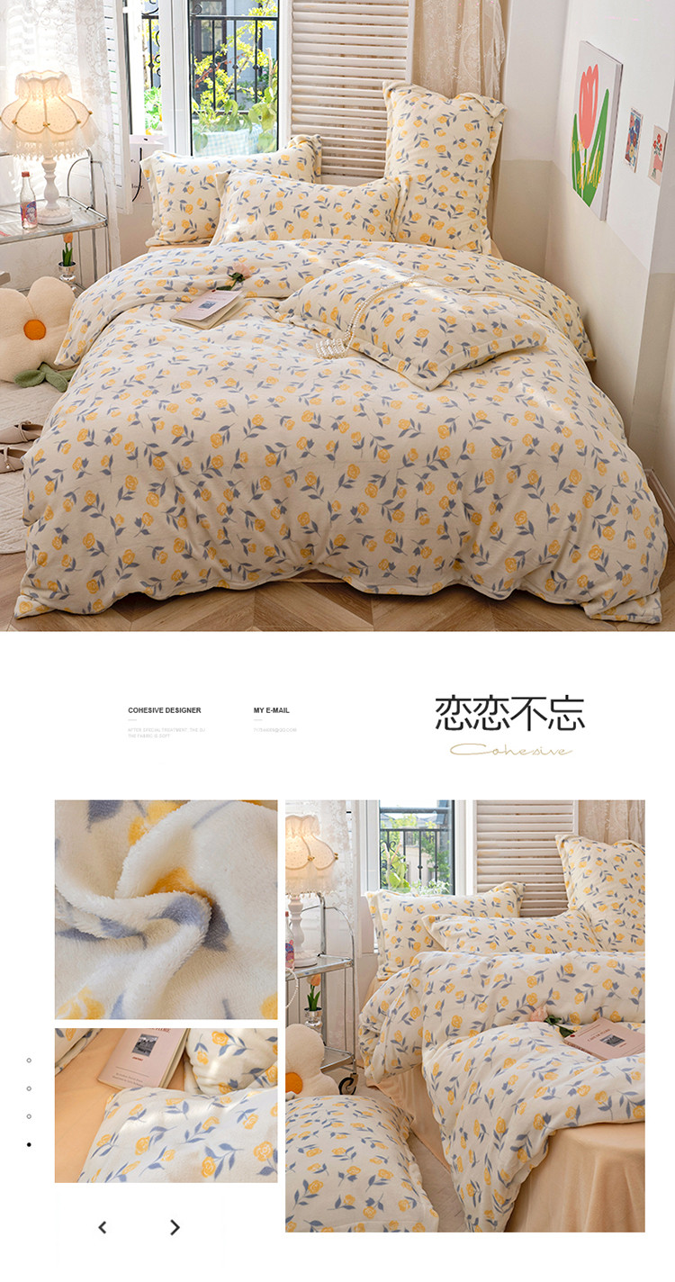 (总)沐棉2022新款抗静电高克重加厚小清新印花牛奶绒四件套