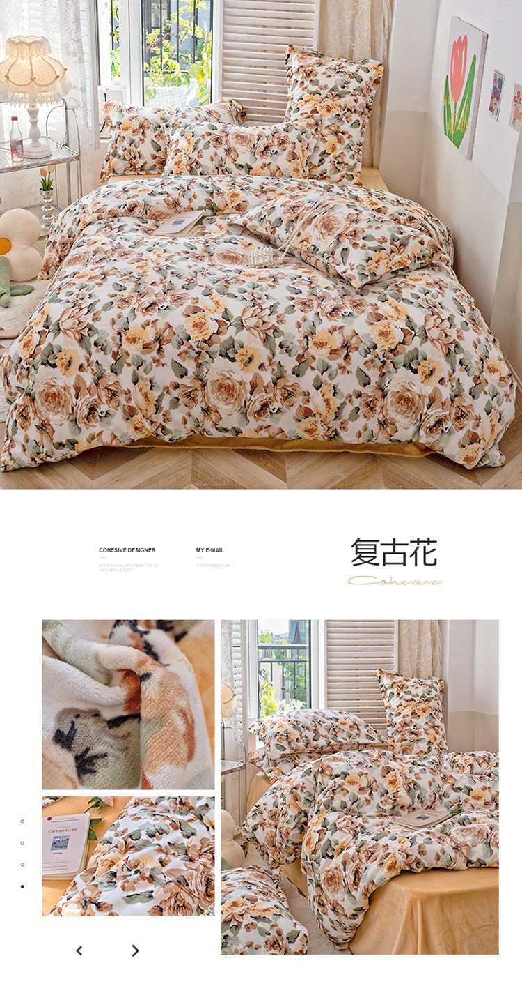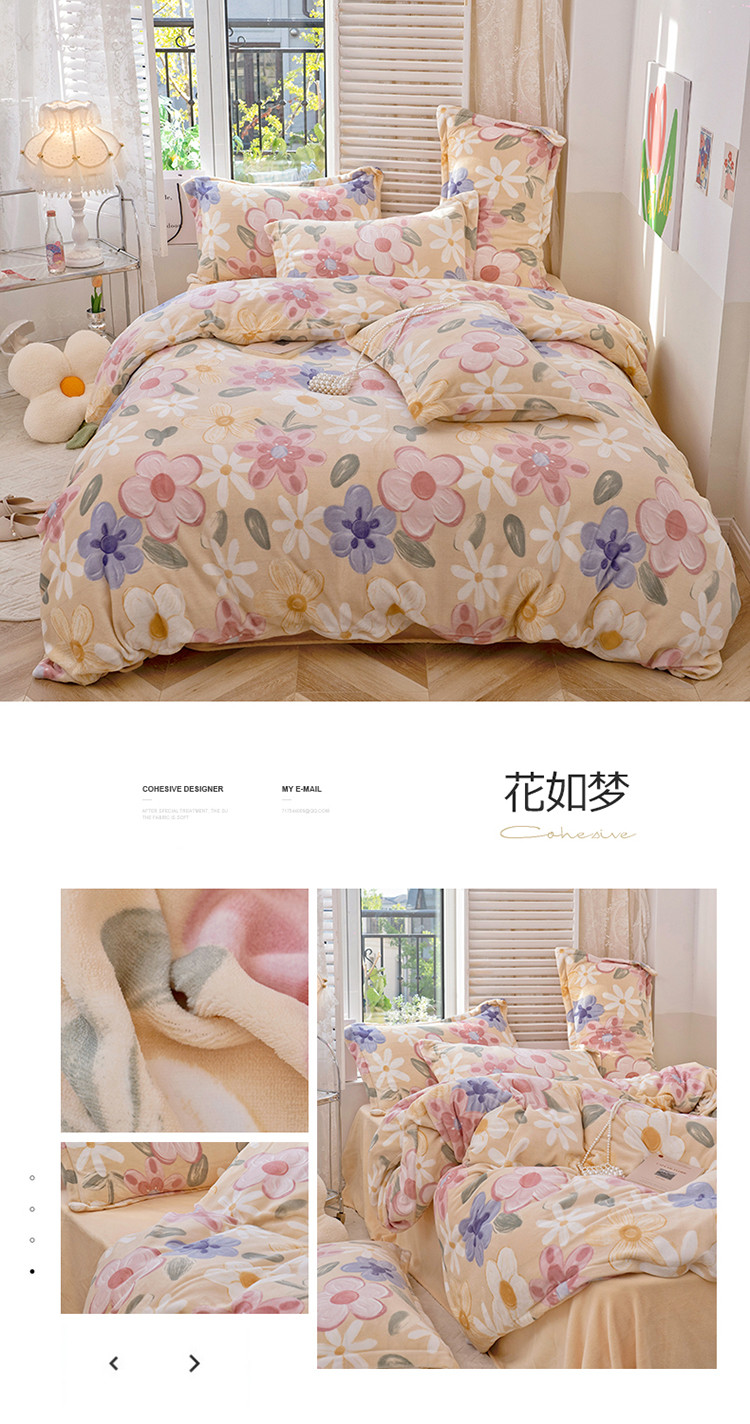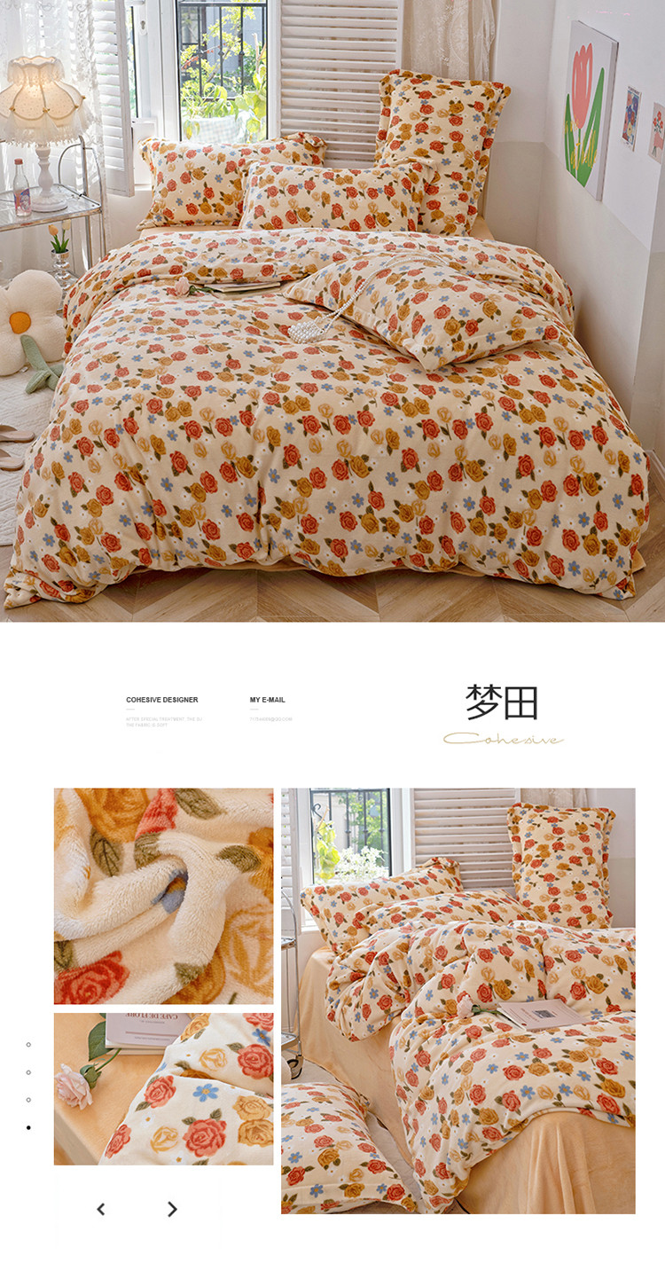 商品名称:(总)沐棉2022新款抗静电高克重加厚小清新印花牛奶绒四件套