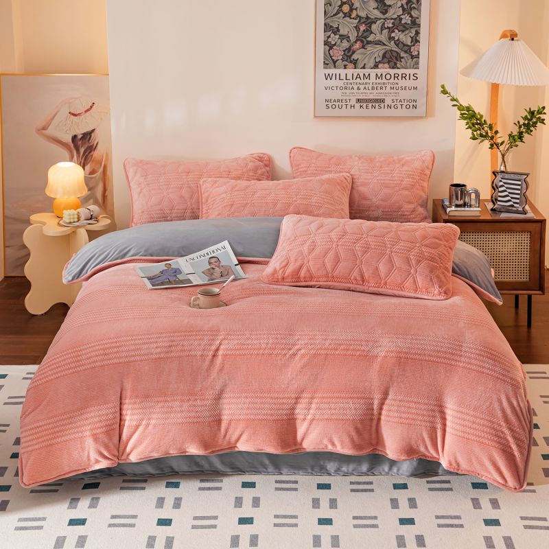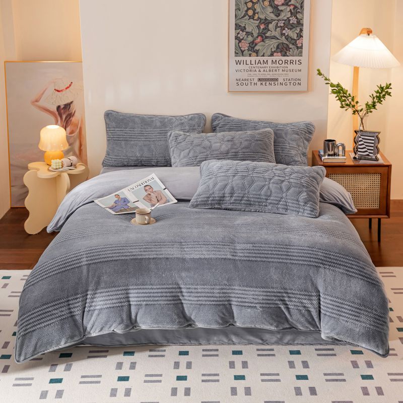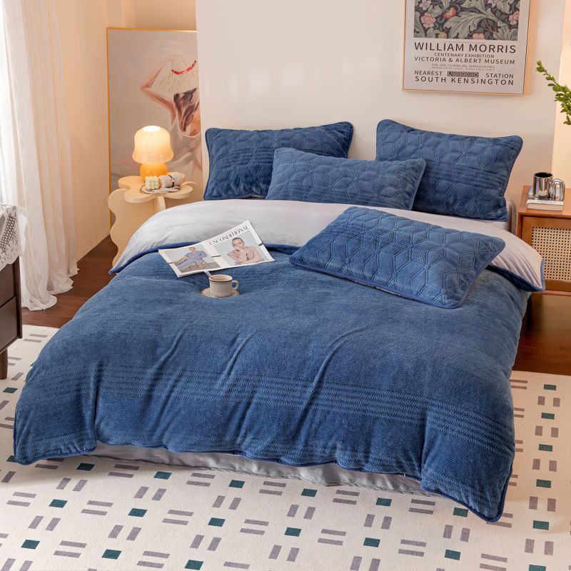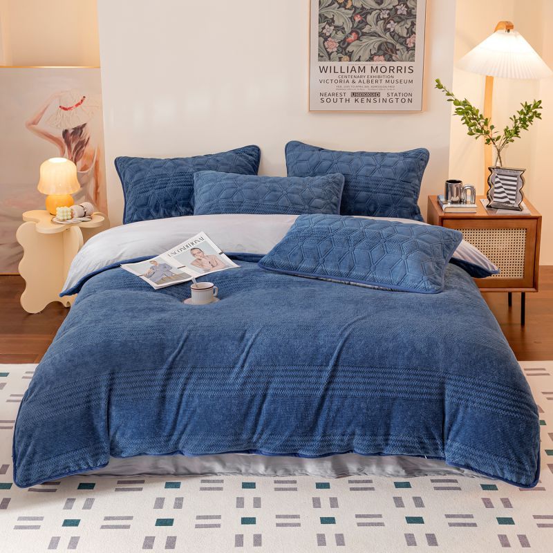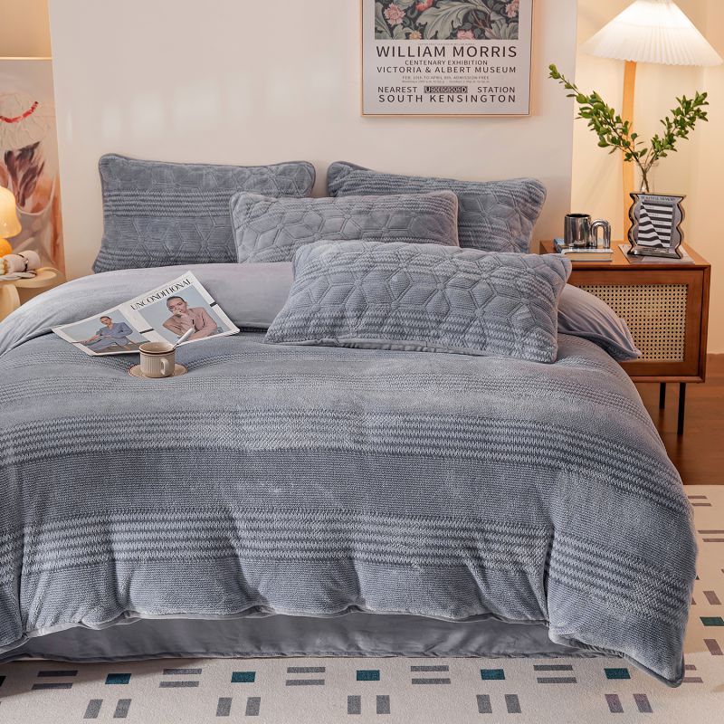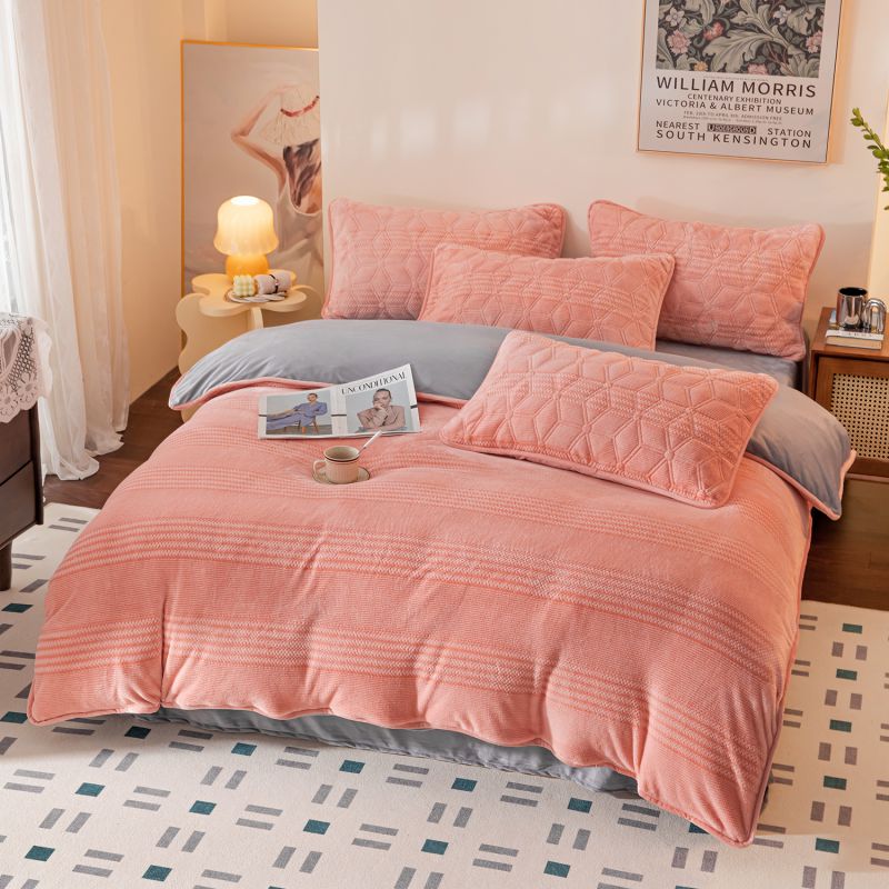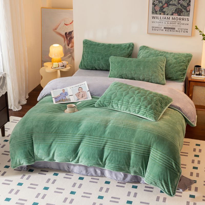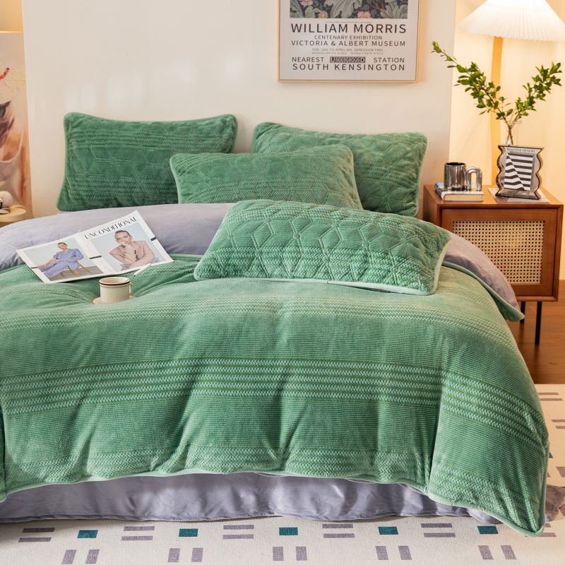 (总)凡客 2022新款牛奶绒雕花绒夹棉床笠四件套学生宿舍三件套