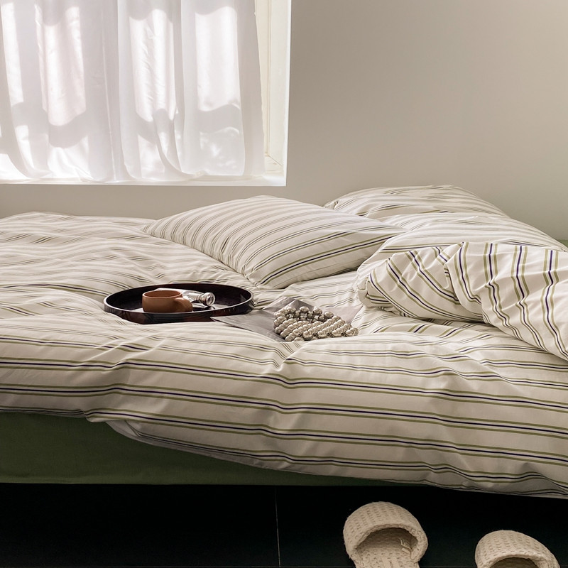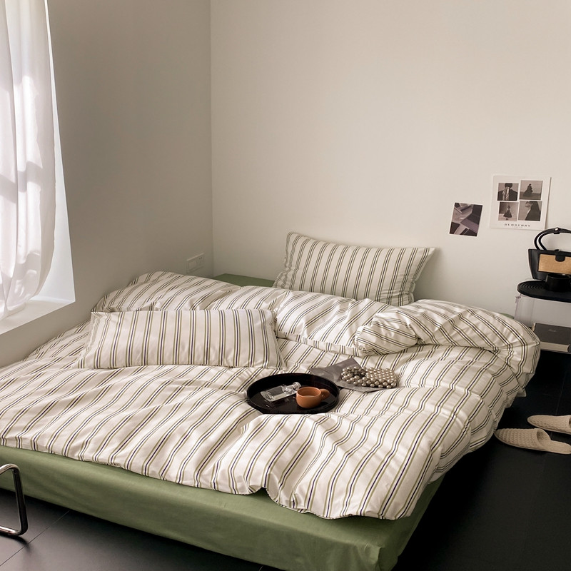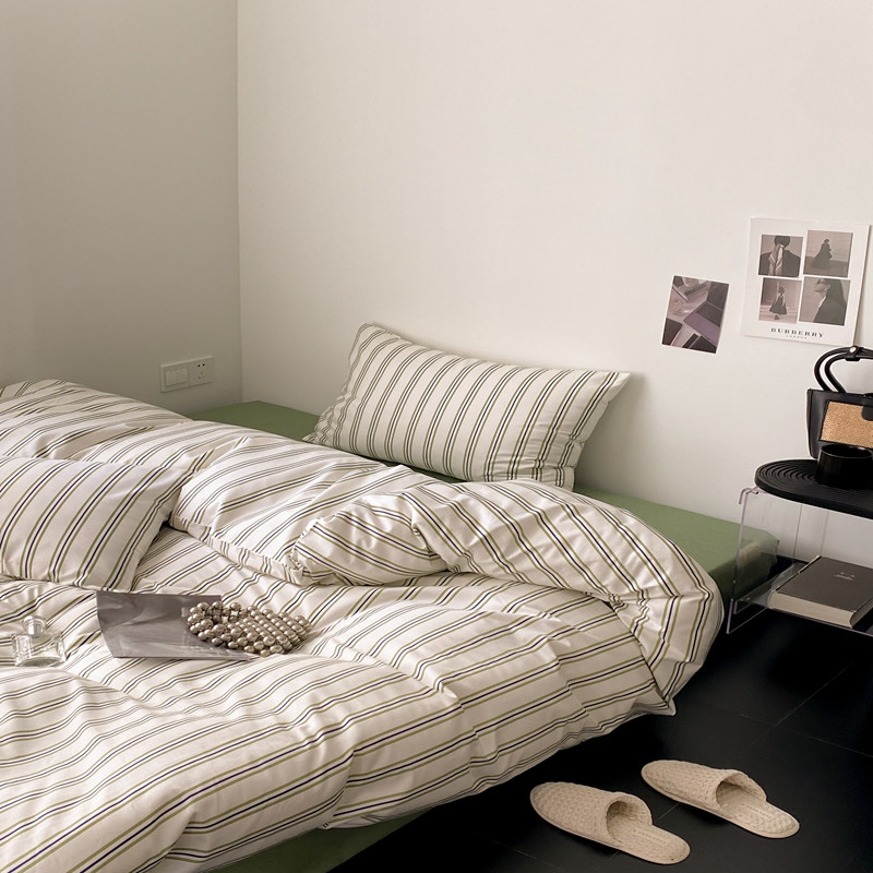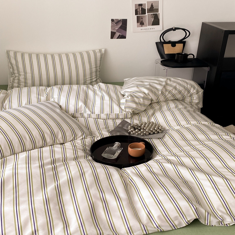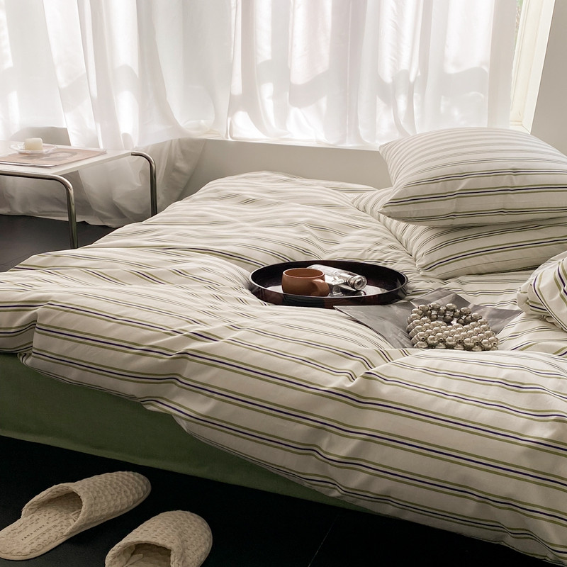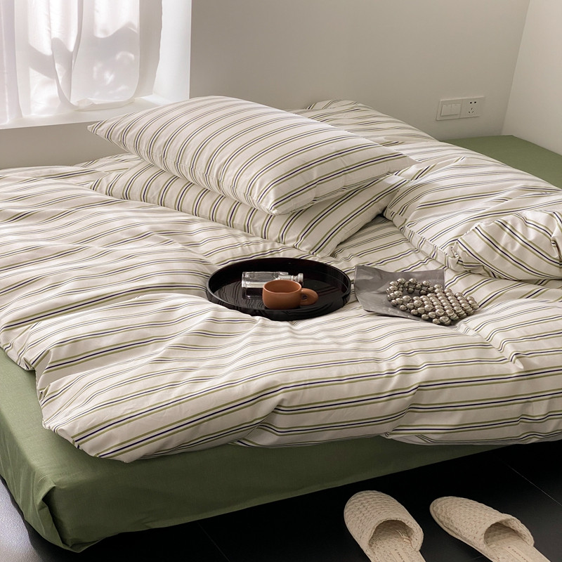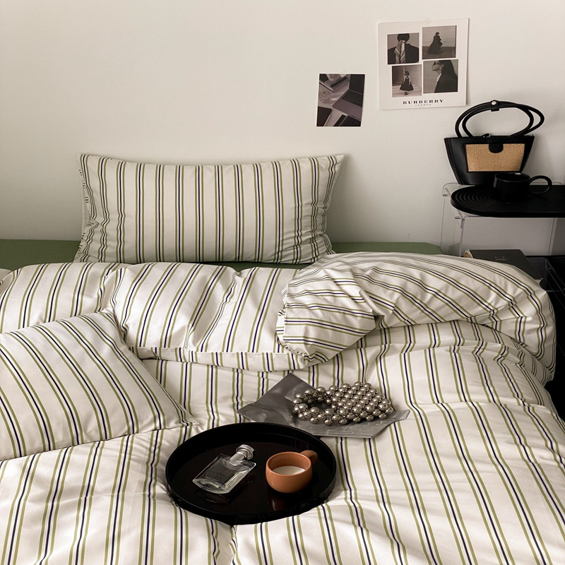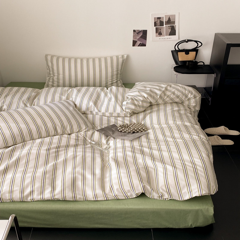 商品名称:昔可 2022新款全棉四件套影棚图1 绿竖条