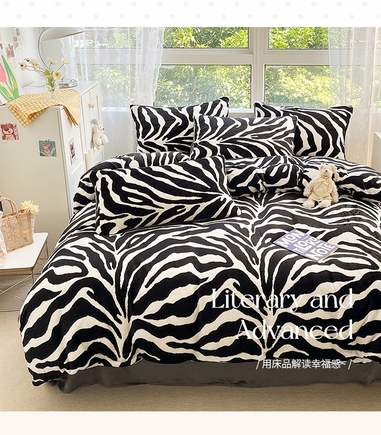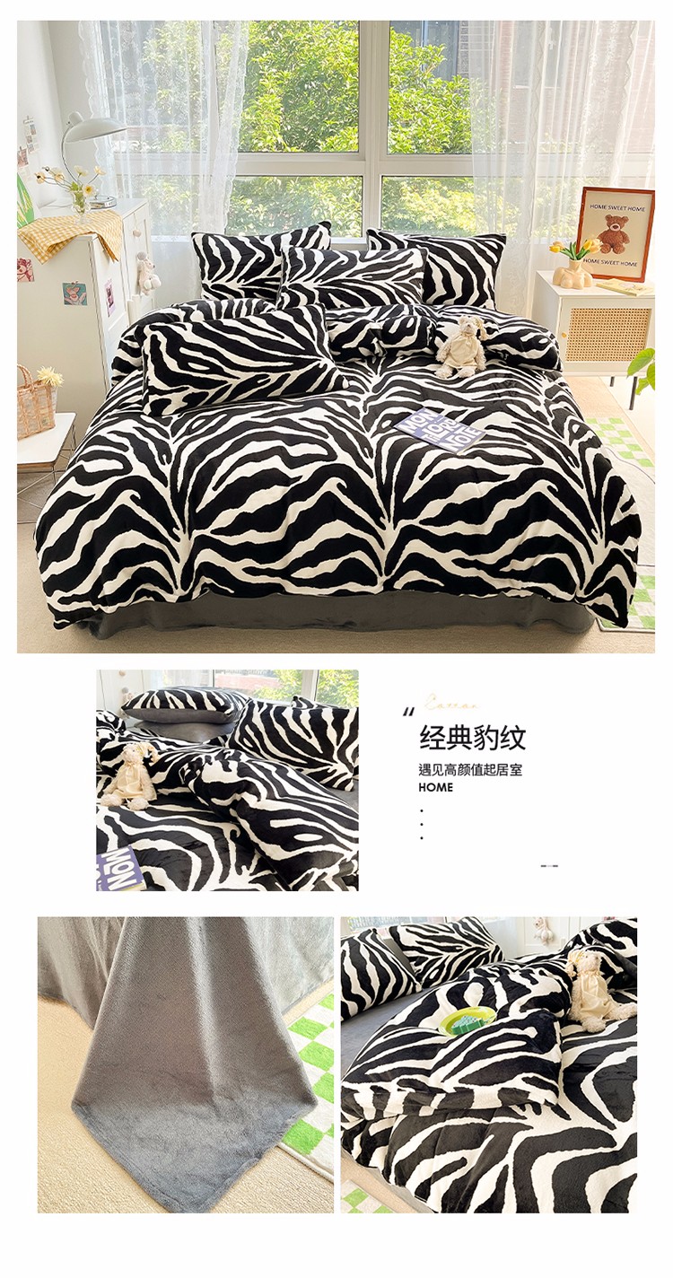 商品名称:雅居纺 2022新款牛奶绒印花四件套 经典豹纹