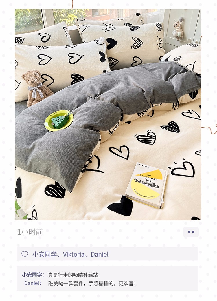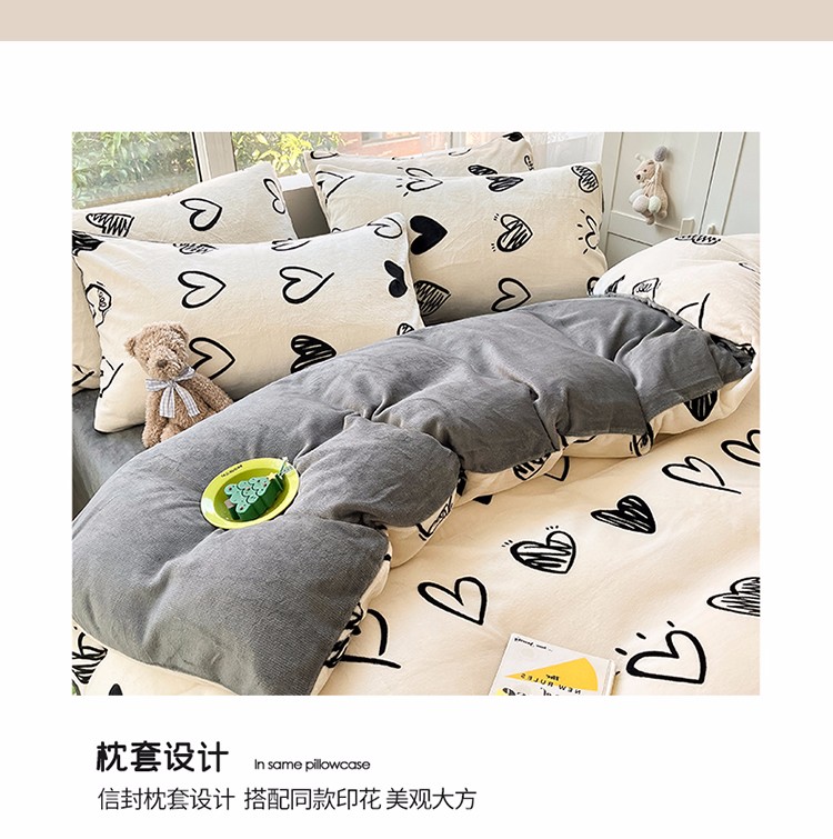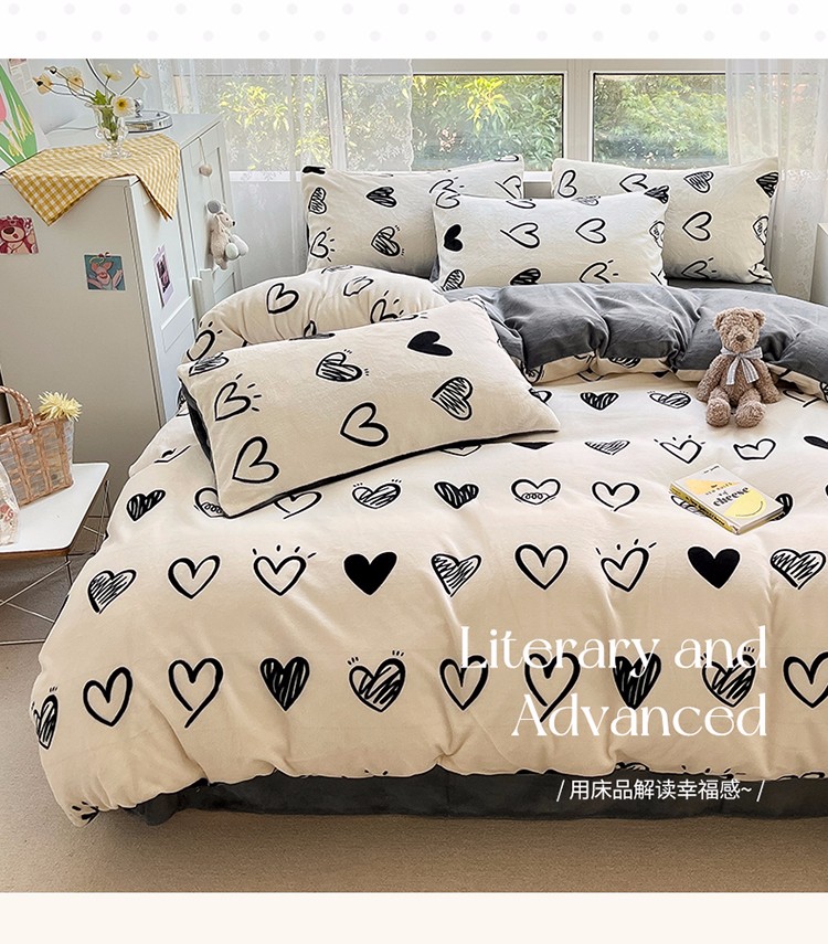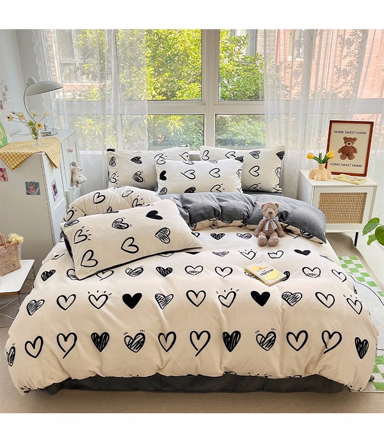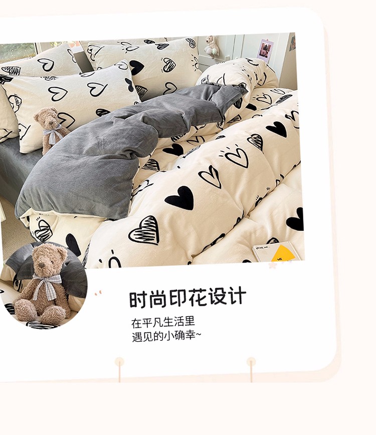雅居纺 2022新款牛奶绒印花四件套 时尚爱心