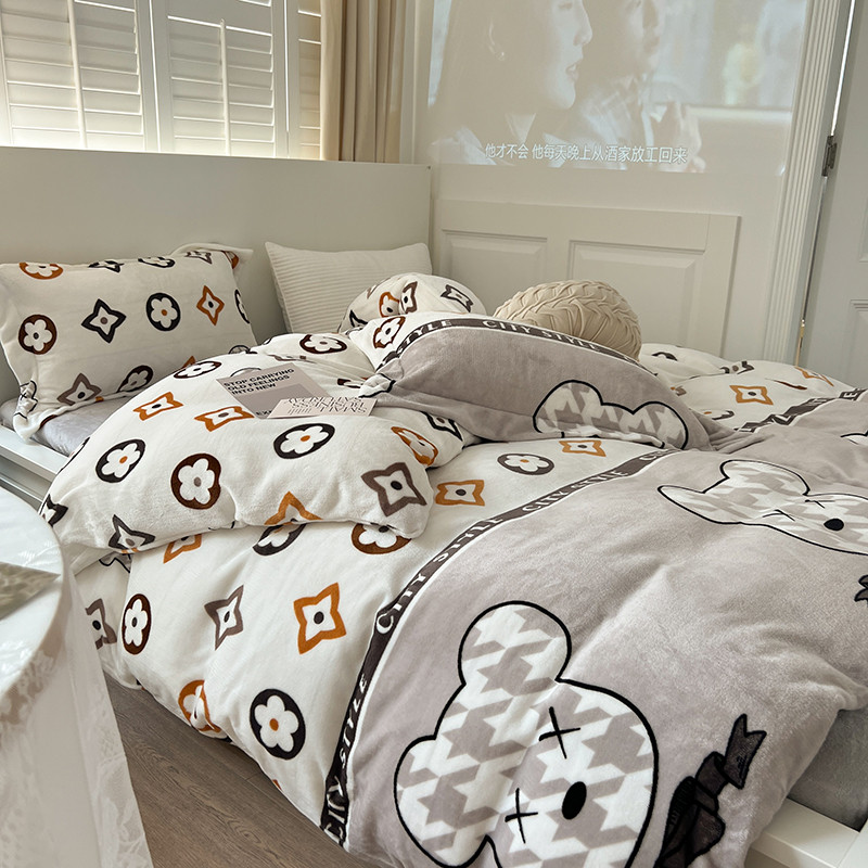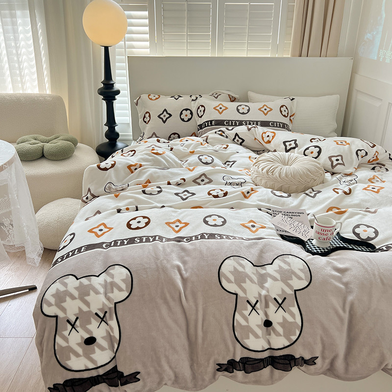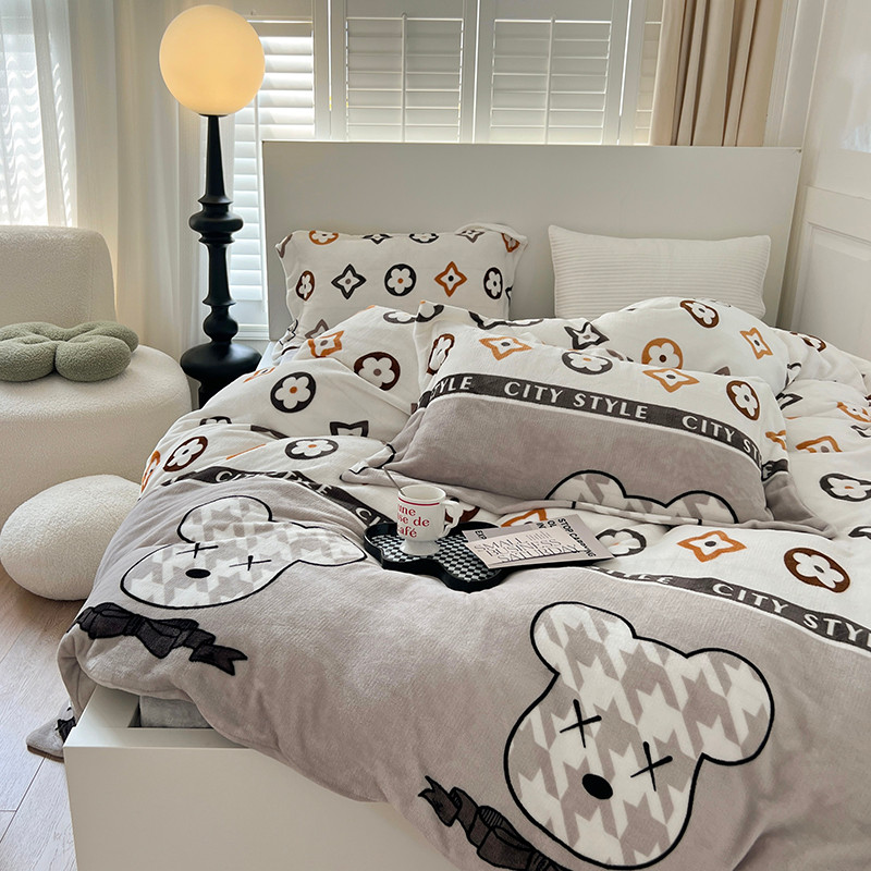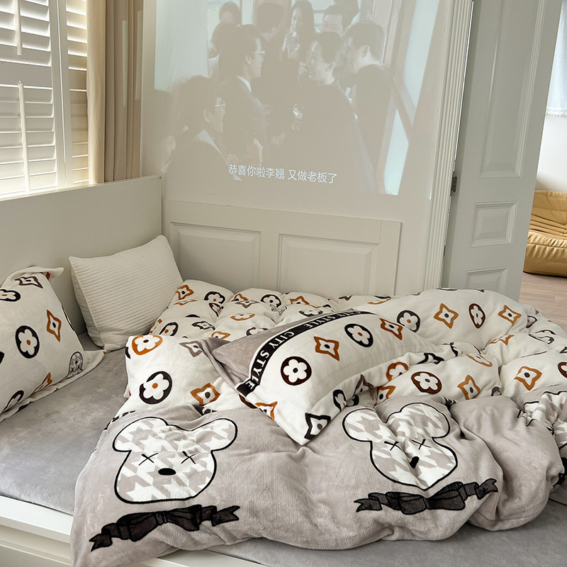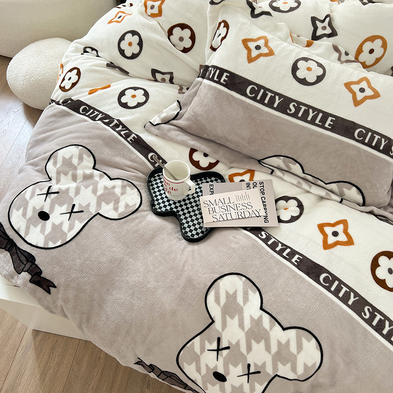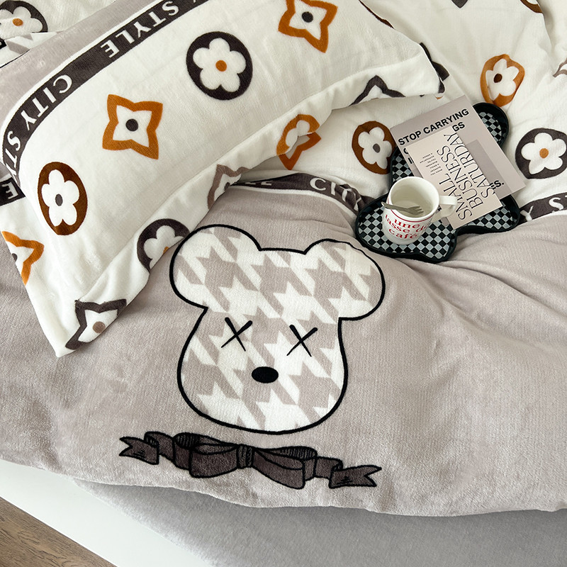顾里 2022新款ins少女保暖牛奶绒套件 潮熊