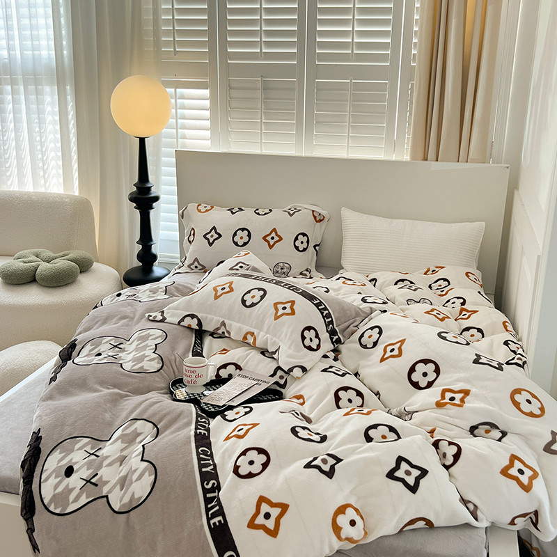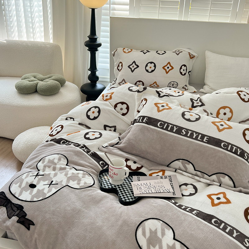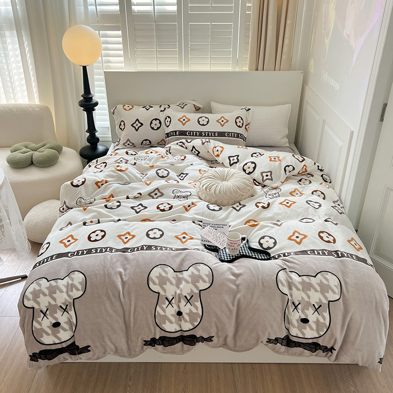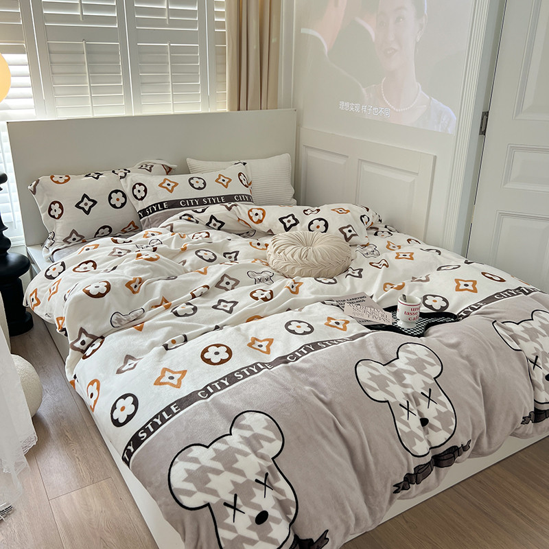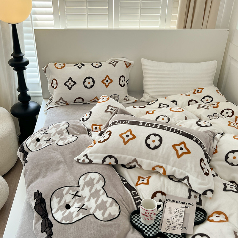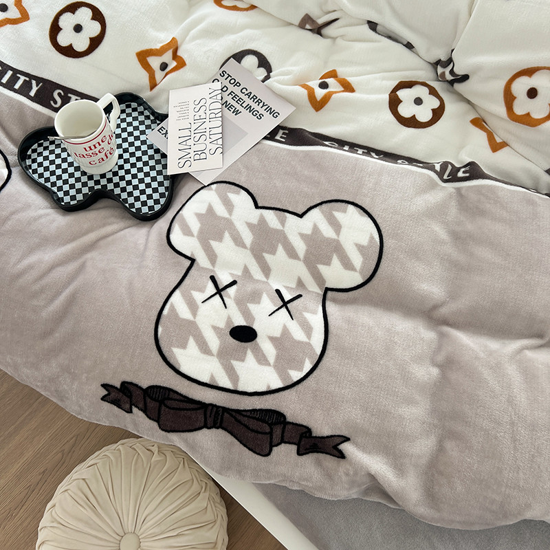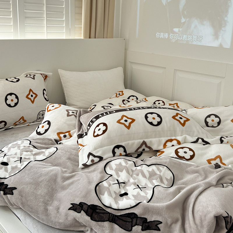 顾里 2022新款ins少女保暖牛奶绒套件 潮熊